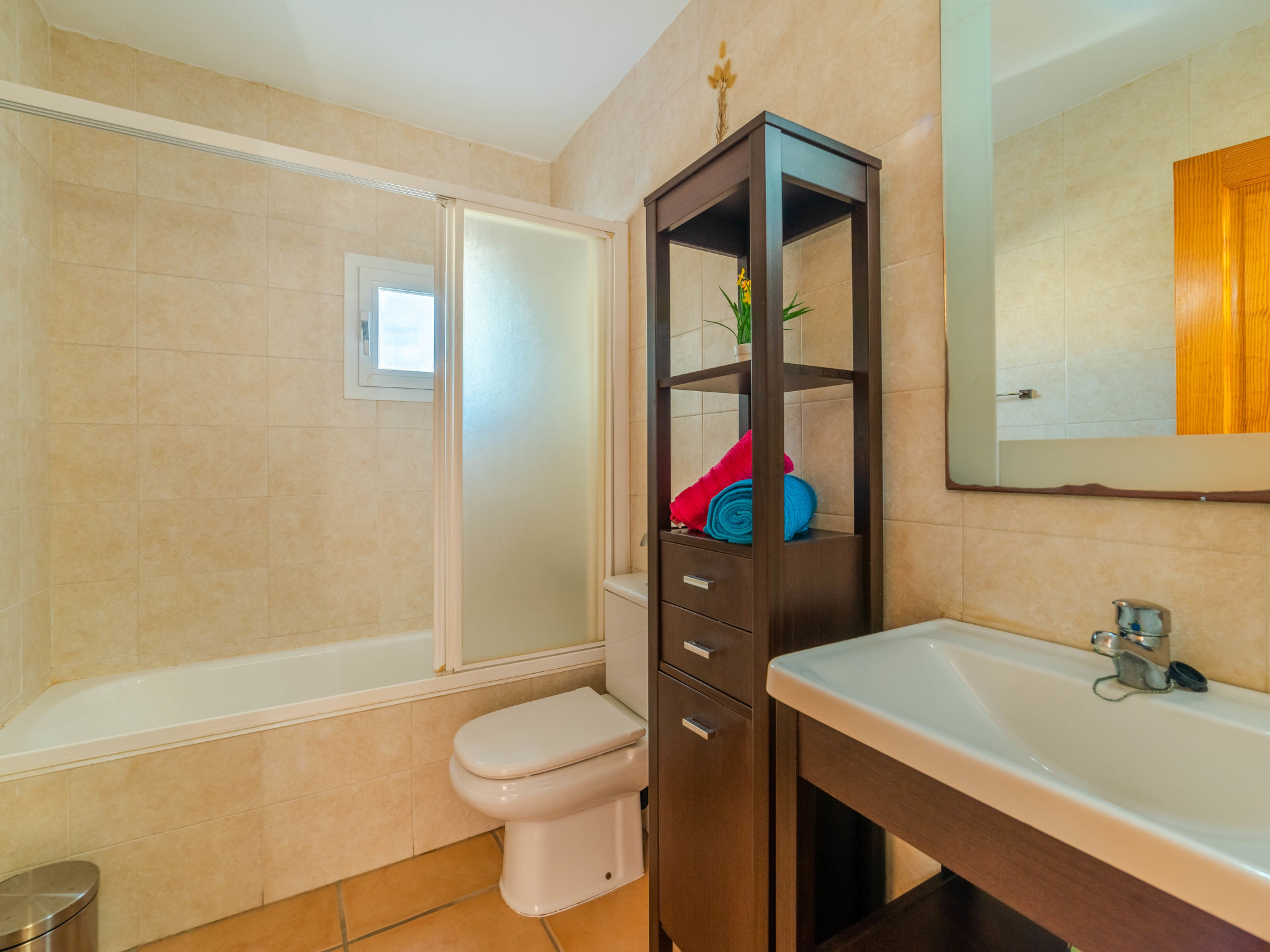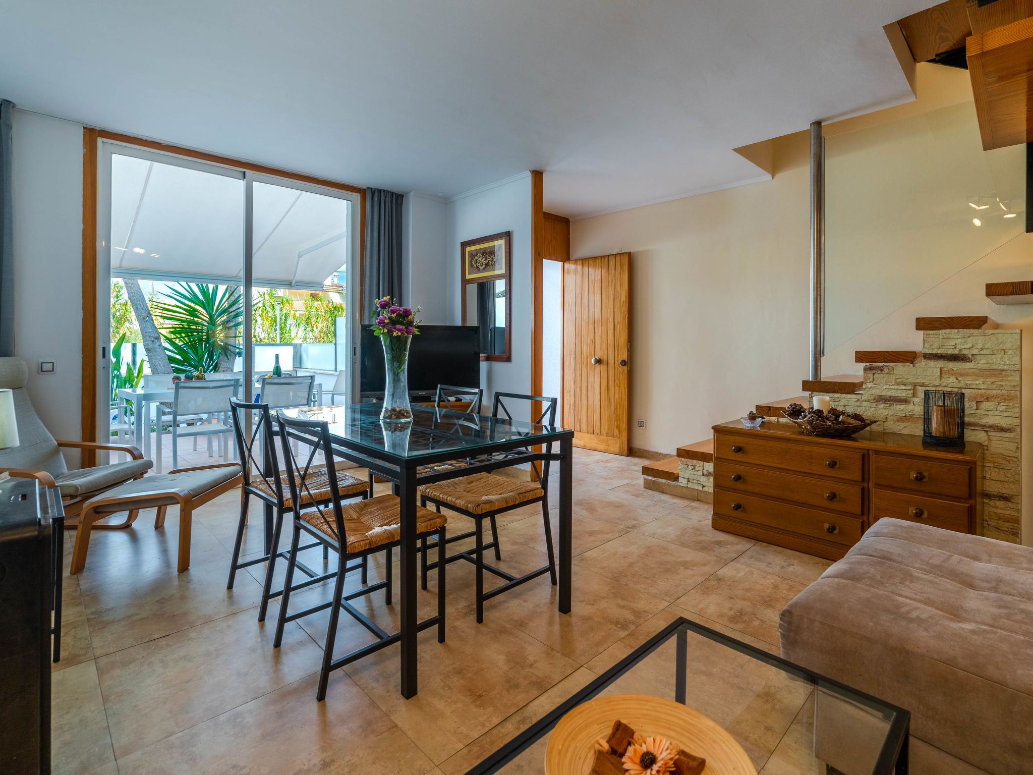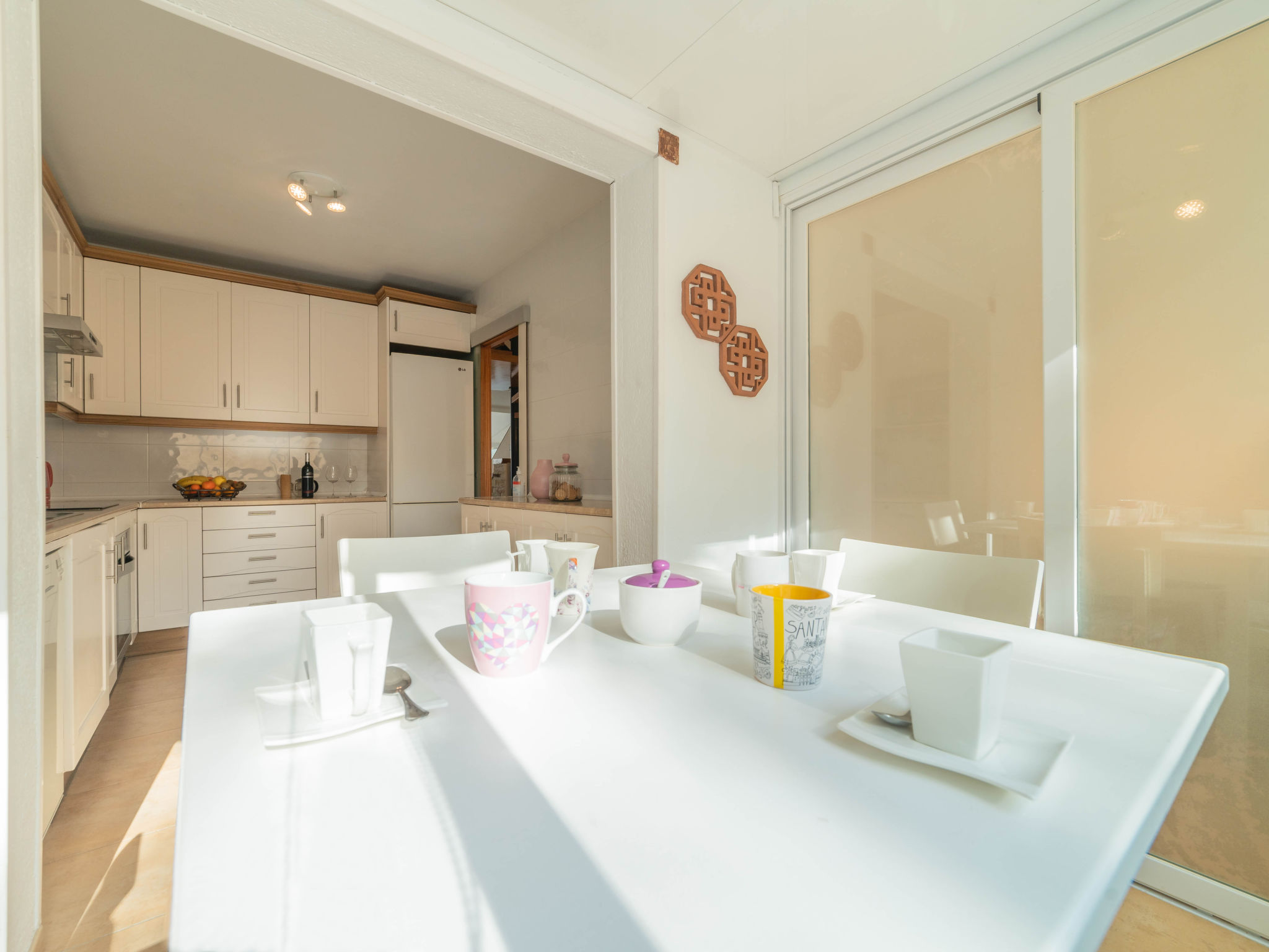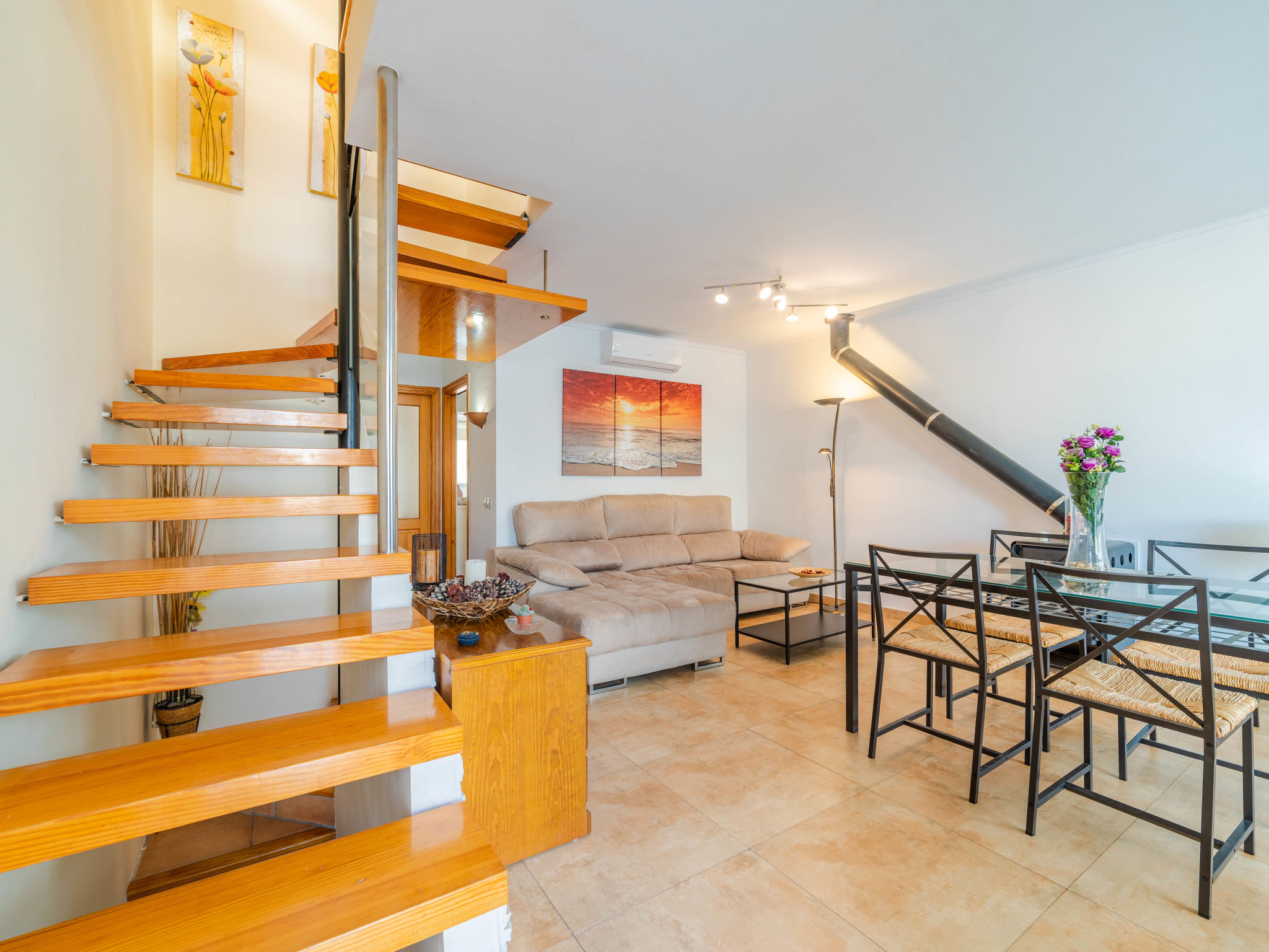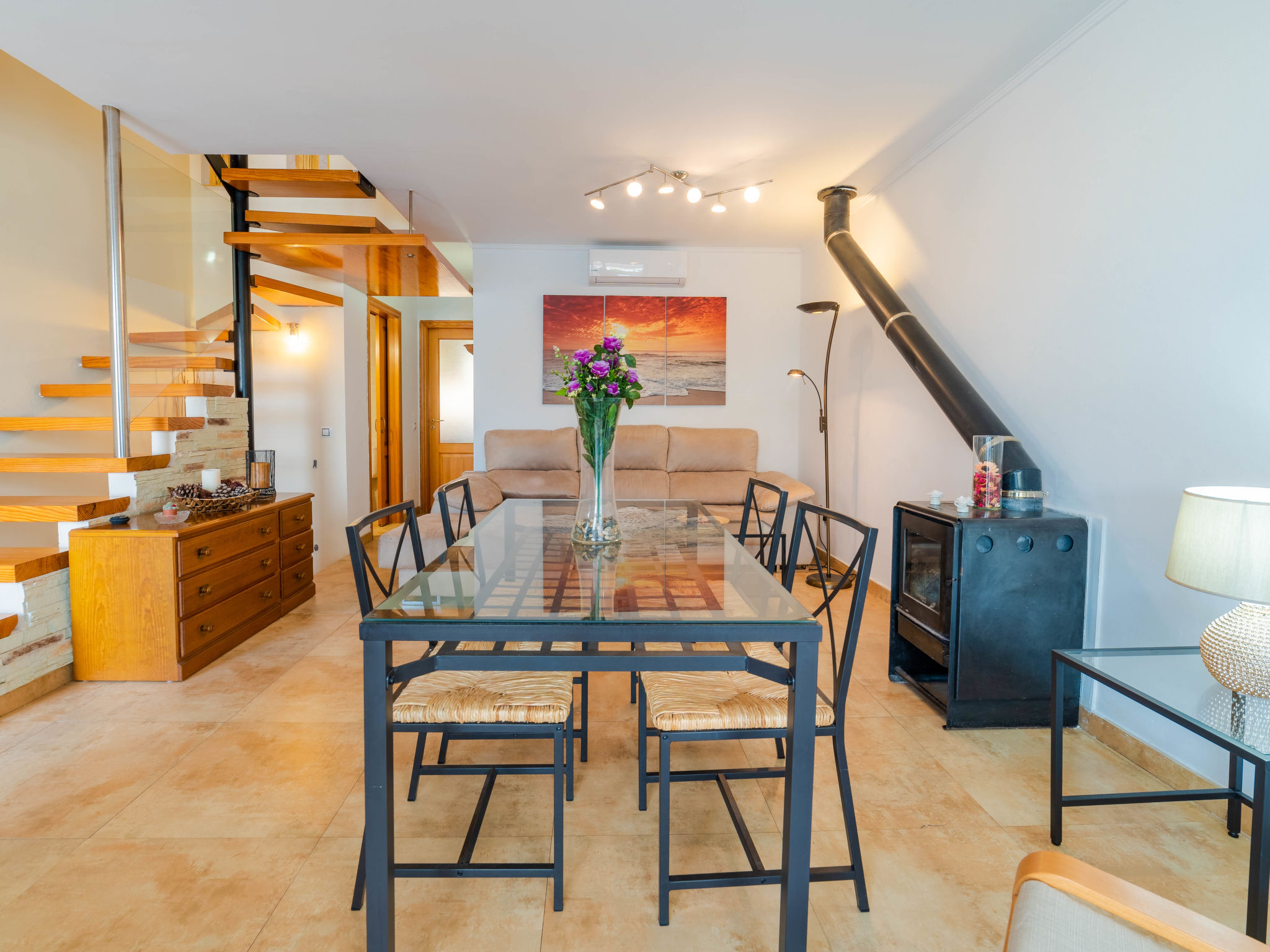 "Golf", 4-Zimmer-Reihenhaus 150 m2 auf 3 Stockwerken. Objekt geeignet für 6 Erwachsene. Sehr zweckmässig und komfortabel eingerichtet: Wohn-/Esszimmer mit Panoramafenster mit offenem Kamin, Esstisch, Sat-TV, Digital-TV, Flachbildschirm, Klimaanlage und Warmluftheizung. Ausgang zum Gartensitzplatz. Küche (Geschirrspüler, 3 Glaskeramikherd Platten, Mikrowelle, Tiefkühler, elektrische Kaffeemaschine) mit Esstisch. Sep. WC. Obergeschoss: 1 grosses Doppelzimmer mit Panoramafenster mit 1 Doppelbett (150 cm, Länge 200 cm), Dusche/WC und Holzofen. 1 grosses Doppelzimmer mit Panoramafenster mit 2 Betten (90 cm). Zwischenstock mit Klimaanlage und Warmluftheizung. Bad/WC. 2. Obergeschoss: 1 Doppelzimmer mit Panoramafenster mit 1 franz. Bett (150 cm, Länge 200 cm), Ventilator. Ausgang zum Balkon, zur Terrasse. 2 grosse Terrassen, Gartensitzplatz, Rasen. Terrassenmöbel, Balkonmöbel, Gartengrill, Liegestühle (2). Sicht auf die Ortschaft und den Wald. Zur Verfügung: Waschmaschine, Bügeleisen, Kinderhochstuhl, Babybett, Haartrockner. Internet (Wireless LAN, gratis). Geeignet für Familien. ETVL12580