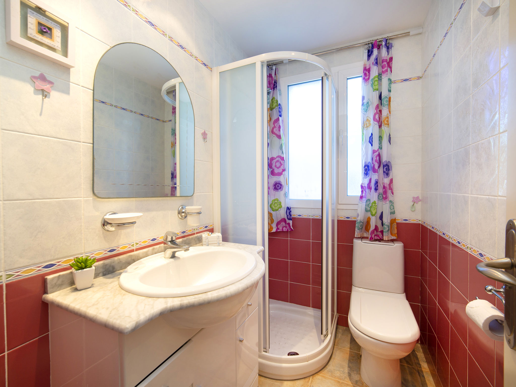 "Rocamar", 4-Zimmer-Wohnung 128 m2 im 1. Stock. Geräumig und hell, schön und gemütlich eingerichtet: Wohn-/Esszimmer 18 m2 mit Digital-TV, Klimaanlage und Warmluftheizung. Ausgang zur Terrasse. 1 Zimmer mit 1 franz. Bett (1 x 160 cm, Länge 190 cm), Klimaanlage und Warmluftheizung. Ausgang zur Terrasse. 1 Zimmer mit 2 Betten (90 cm, Länge 190 cm), Klimaanlage und Warmluftheizung. Ausgang zur Terrasse. 1 Zimmer mit 1 franz. Bett (1 x 180 cm, Länge 200 cm), Klimaanlage und Warmluftheizung. Ausgang zur Terrasse. Küche (Backofen, 4 Glaskeramikherd Platten, Mikrowelle, Tiefkühler, elektrische Kaffeemaschine). Ausgang zum Balkon. Bad/Bidet/WC, Dusche/WC. Grosse Terrasse. Terrassenmöbel. Sehr schöne Sicht auf das Meer und die Stadt. Zur Verfügung: Waschmaschine, Safe, Bügeleisen, Kinderhochstuhl, Babybett bis 2 Jahre, Haartrockner. Internet (Wireless LAN, gratis). Garage. Geeignet für Familien. AT-481466-A