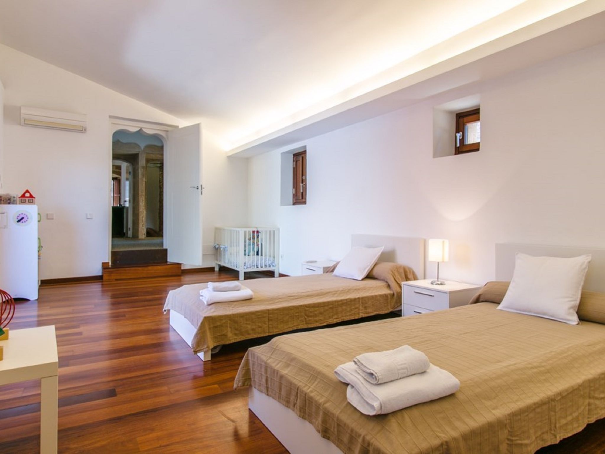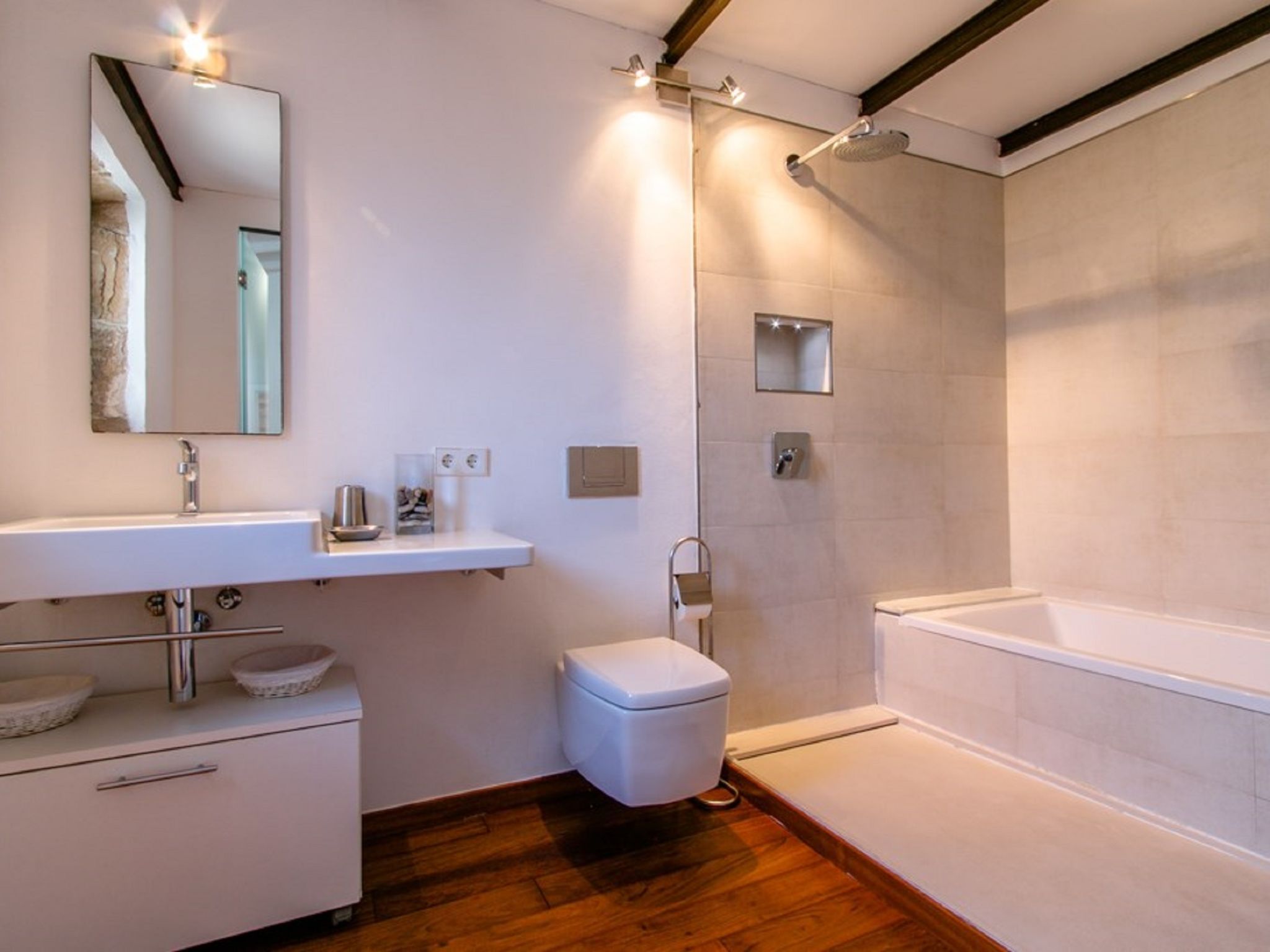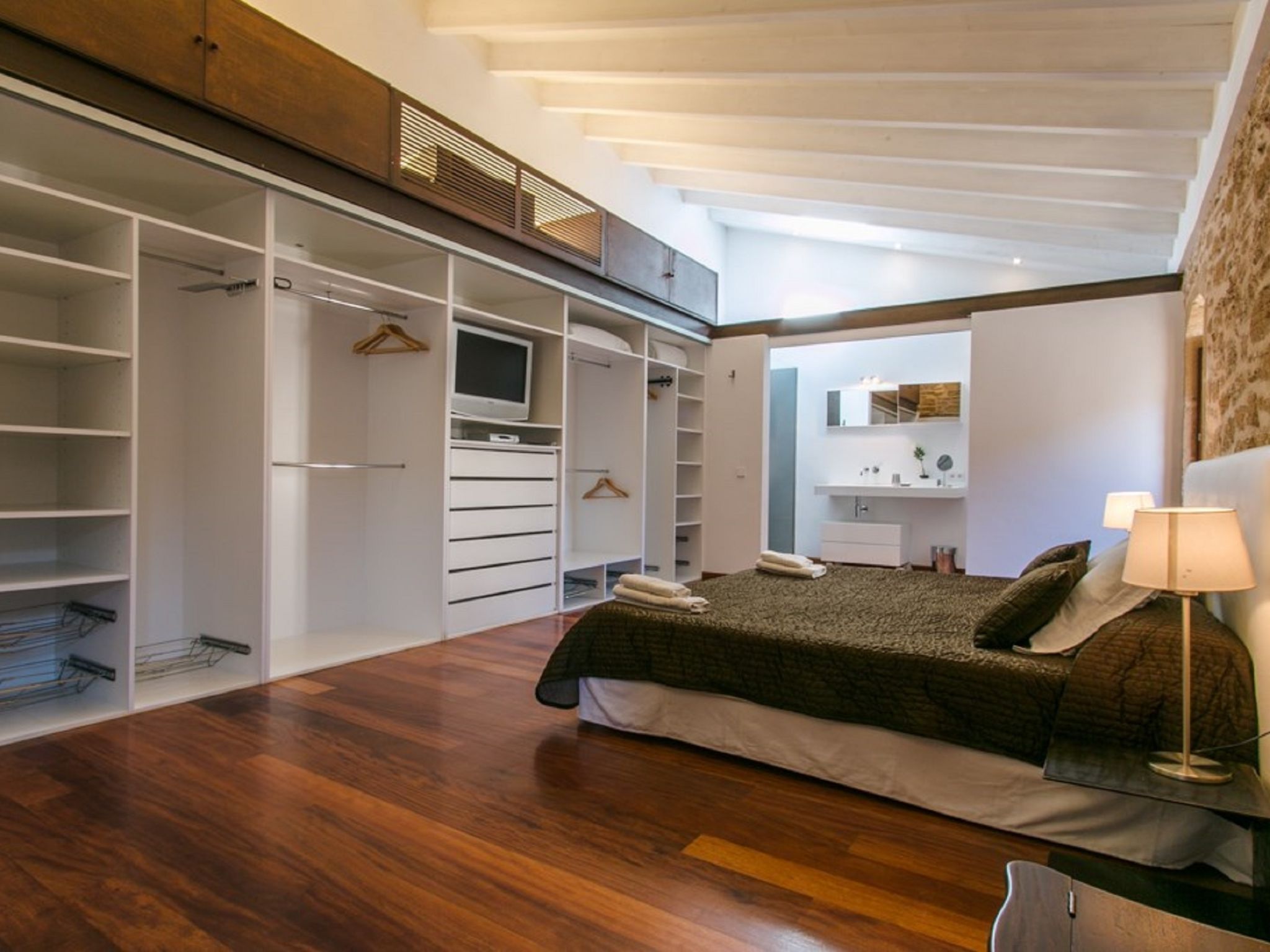 "Sa Muralla", 5-Zimmer-Haus 200 m2 auf 2 Stockwerken. Objekt geeignet für 6 Erwachsene. Komfortabel und schön eingerichtet: grosser Eingang mit Panoramafenster mit Klimaanlage und Warmluftheizung. Ausgang zum Gartensitzplatz, zum Schwimmbad. Grosser Salon mit Internationale TV-Sender, Flachbildschirm, Radio, CD, Stereoanlage, DVD, Klimaanlage und Warmluftheizung. Ausgang zum Gartensitzplatz, zum Schwimmbad. Offenes grosses Esszimmer mit offenem Kamin, TV, Internationale TV-Sender, Klimaanlage und Warmluftheizung. Ausgang zum Gartensitzplatz, zum Schwimmbad. Grosse Küche (4 Kochplatten, Backofen, Geschirrspüler, Mikrowelle, Tiefkühler, elektrische Kaffeemaschine) mit Klimaanlage und Warmluftheizung. Ausgang zum Gartensitzplatz, zum Schwimmbad. Bad/WC. Obergeschoss: 1 grosses Doppelzimmer mit Panoramafenster mit 1 Doppelbett (200 cm, Länge 200 cm), Dusche/WC, Klimaanlage und Warmluftheizung. 1 grosses Doppelzimmer mit 1 Doppelbett (180 cm, Länge 200 cm), 1 Schlafmöglichkeit (150 cm, Länge 190 cm), Bad/Dusche/WC, Klimaanlage und Warmluftheizung. 1 grosses Doppelzimmer mit 2 Betten (90 cm, Länge 200 cm), Klimaanlage und Warmluftheizung. Natursteinböden. Gartensitzplatz. Terrassenmöbel, Gartengrill, Liegestühle (4), Sitzplatz. Sicht auf das Schwimmbad, den Garten und die Ortschaft. Zur Verfügung: Waschmaschine, Wäschetrockner, Bügeleisen, Kinderhochstuhl, Babybett bis 2 Jahre, Haartrockner. Internet (Wireless LAN, gratis). Geeignet für Familien. ET2494