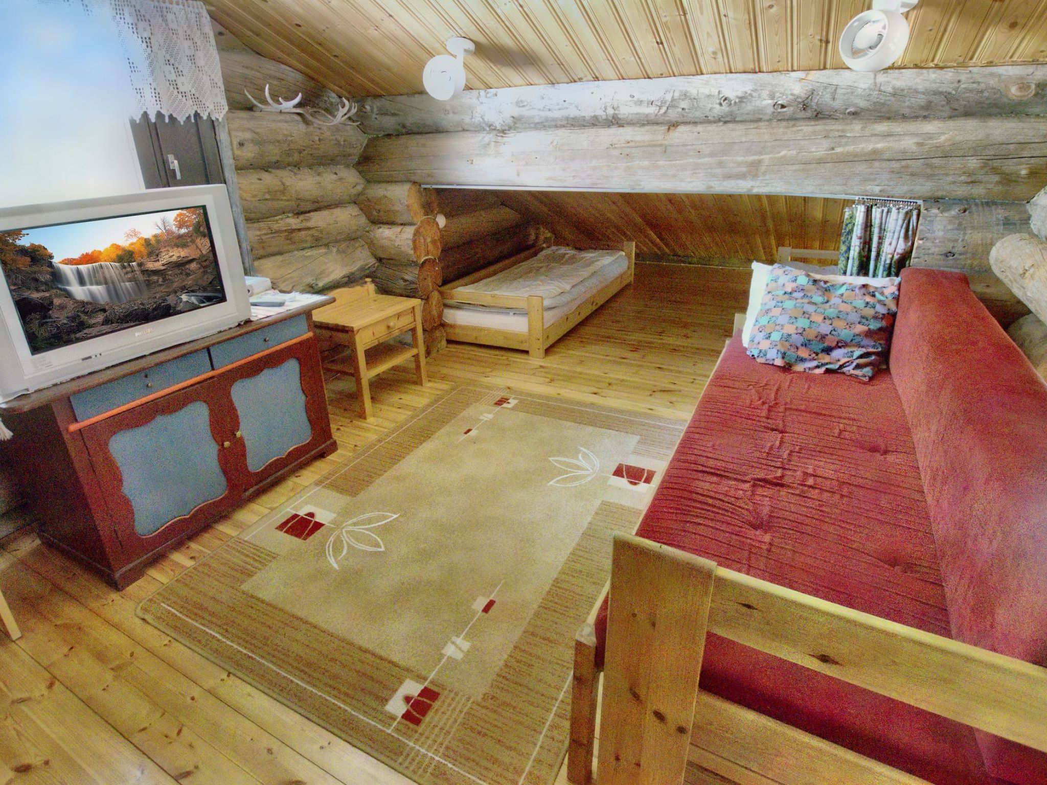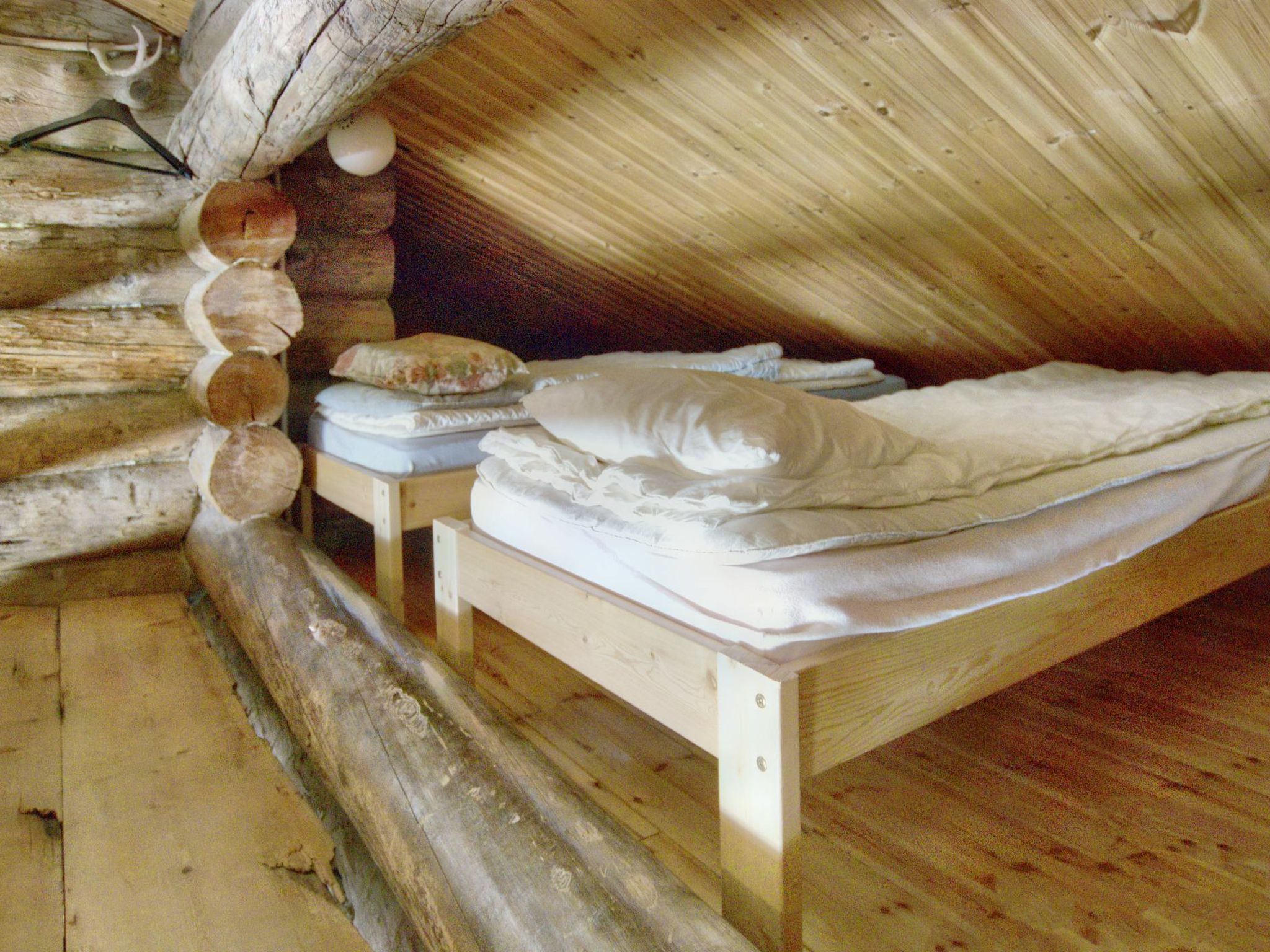 Ein separates Block-Ferienhaus, 175 km nördlich von Rovaniemi. 10 km, Richtung Kolari, von Ylläsjärvi. Baujahr 1990. Küche, Wohnzimmer, zwei Schlafzimmer mit je 1 Doppelbett, Dachboden (55 m2) mit 3 Nischen, mit 2-3 Matratzen. Auf dem Dachboden ist auch Bettsofa, elektrische Sauna, Waschraum, Terrasse, Toilette. Die Preise beinhalten Endreinigung, in den Wochen 52, 1 und 7-18. Bettwäsche auf Bestellung erhältlich. Die Buchungen beginnen um 16:00 Uhr und enden um 11:00 Uhr (auch bei Wochenendbuchungen).