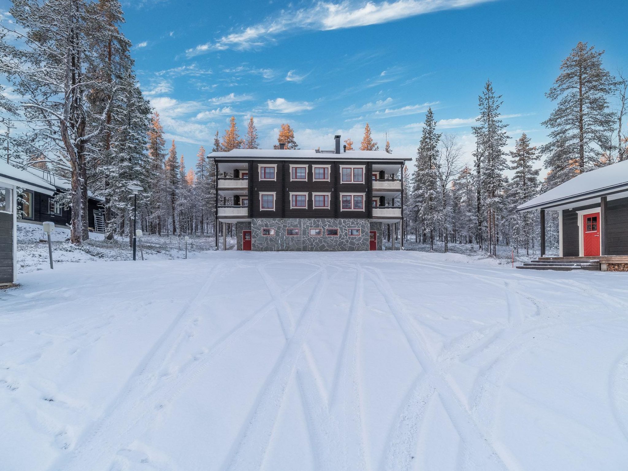 Das Zentrum "Weisser Traum" ist ein hochwertiges Trainingszentrum, umgeben von wunderschöner lappländischen Natur. Es liegt in der Nähe des Sport Resorts Ylläs. Diese kleinere Seite des Doppelhauses erstreckt sich über drei Etagen. Zweiter Stock verfügt über gut ausgestattete Küche mit Kamin. Im Obergeschoss Schlafzimmer mit 160 cm breitem Doppelbett und kleinem Schlafzimmer (Schiebetür) mit 120 cm breitem Bett und Schlafsofa im Flur. Im Erdgeschoss ist Sauna für 4 Personen, 2 Duschen, Waschmaschine, Haartrockner und Wäschetrockenschrank. Die Küche hat Sitzgelegenheiten für 7 Personen, Kühlschrank mit Gefrierfach, Geschirrspüler, Mikrowelle, Herd und Backofen. Hochwertiges Tafelgeschirr für 8 Personen. Tandent CD/Radio-Spieler, 2x TV und BlueRay-Spieler. Zwei geräumige, malerische Balkone. Separater Ski-Wachsraum. Zentrum "Weisser Traum" befindet sich in ruhiger Umgebung, in der Region Iso-Ylläs, im Dorf Ylläsjärvi. Diese 66 m² grosse Ferienwohnung verfügt über Sauna, gut ausgestattete Küche und Wohnzimmer mit Kamin. Keine Haustiere erlaubt. Die Entfernung vom Doppelhaus "Weisser Traum" zum nächsten Nachbarn beträgt 500 m (01/2012).