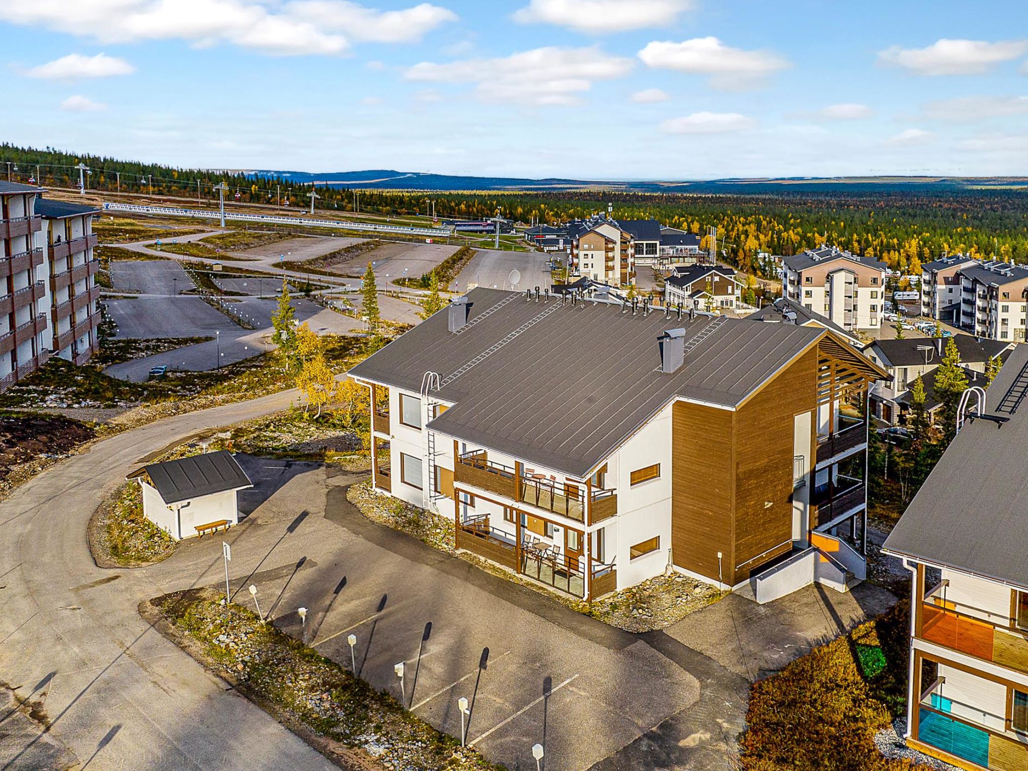 40 km nördlich von Kolari, See Ylläsjärvi 4 km, Badestrand 5.5 km. Ferienwohnung in einem Aparthotel, Baujahr 2008. Wohnküche, ein Schlafzimmer mit zwei getrennten Betten, eine Schlafnische mit einem Etagenbett, elektrische Sauna, Waschraum/Toilette. Der Preis beinhaltet, während der Skisaison, 2 Skipässe. Die Ferienwohnung befindet sich in der obersten Etage des Aparthotels (Nord, Ost). Die Villa Ylläs ist ein hochwertiges Aparthotel, im Dorf Ylläsjärvi, an der Seite des Wasserfalls und in de Nähe des Sportresorts Ylläs gelegen. Pisten, Loipen, Wanderwege, Restaurants und Kurangebote sind zu Fuss erreichbar. Skiraum im Erdgeschoss der Villa Ylläs. Keine Haustiere erlaubt.