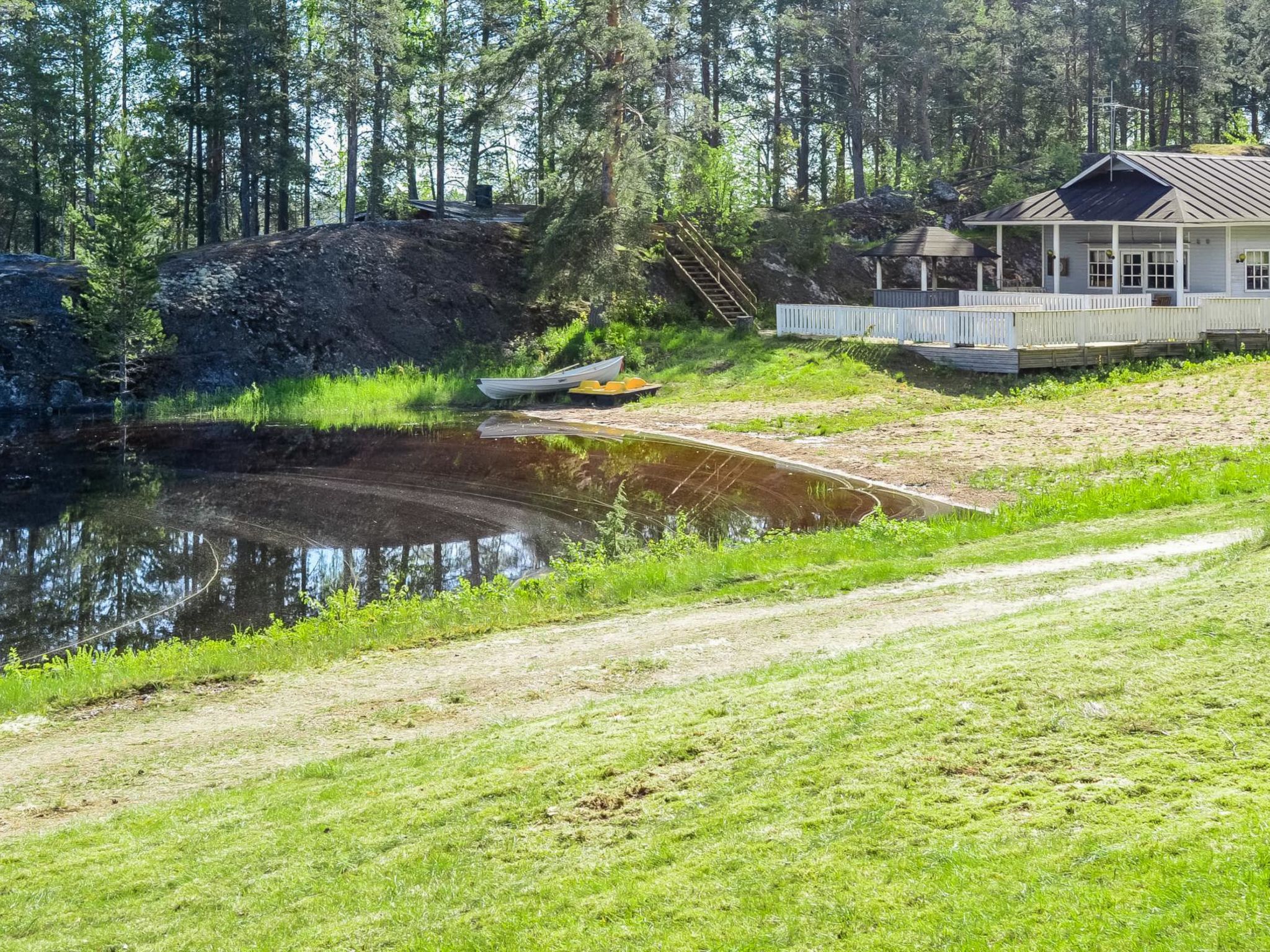 Maximal 2 Haustiere/Hunde erlaubt. Hochwertiges und gut ausgestattetes Ferienhaus, am Pielinensee in Juuka. 85 km nördlich von Joensuu, Pielinen 10 m (871.2 km²), flacher und kinderfreundlicher Sandstrand, Privatstrand, eigenes Boot, Pier. Ferienhaus, Baujahr 1991, komplett renoviert 2020. Wohnküche mit Schlafsofa, Schlafnische mit Doppelbett, Waschraum, grosse elektrische Sauna, Terrasse. Die Anzahl der Gäste kann mit 2 Kindern überschritten werden. Es gibt faltbare Matratzen für Kinder. 2 überdachte Kochbereiche innerhalb von 50 m. Volleyballfeld und 2 Disc-Golfkörbe am Strand. Tennisplatz 200 m. Den Gästen stehen Angel- und Eisfischerausrüstung, Eisbohrmaschine und drei Paar Schneeschuhe zur Verfügung. Gästehafen 100 m, eigener Platz für das eigene Boot der Gäste. Es gibt auch Bootsrampe für grössere Boote im Gästehafen. Gutes Gelände zum Sammeln von Beeren und Pilzen in der Nähe. Es gibt einen 2 km langen Outdoor-Pfad (im Winter keine Wartung), der zur Tanzhalle und zum Aussichtspunkt führt. Nachbar 200 m, ehemaliges Empfangsgebäude des Campingsplatzes 50 m. Juuka 7 km, Koli 35 km, Nurmes 50 km. Haustiergebühr beträgt EURO 20. Wenn Sie mehr als ein Haustier dabei haben, vereinbaren Sie dies bitte direkt mit dem Eigentümer. Die Reservierung beginnt um 16 und endet um 12:00 Uhr (auch bei Wochenendbuchungen).