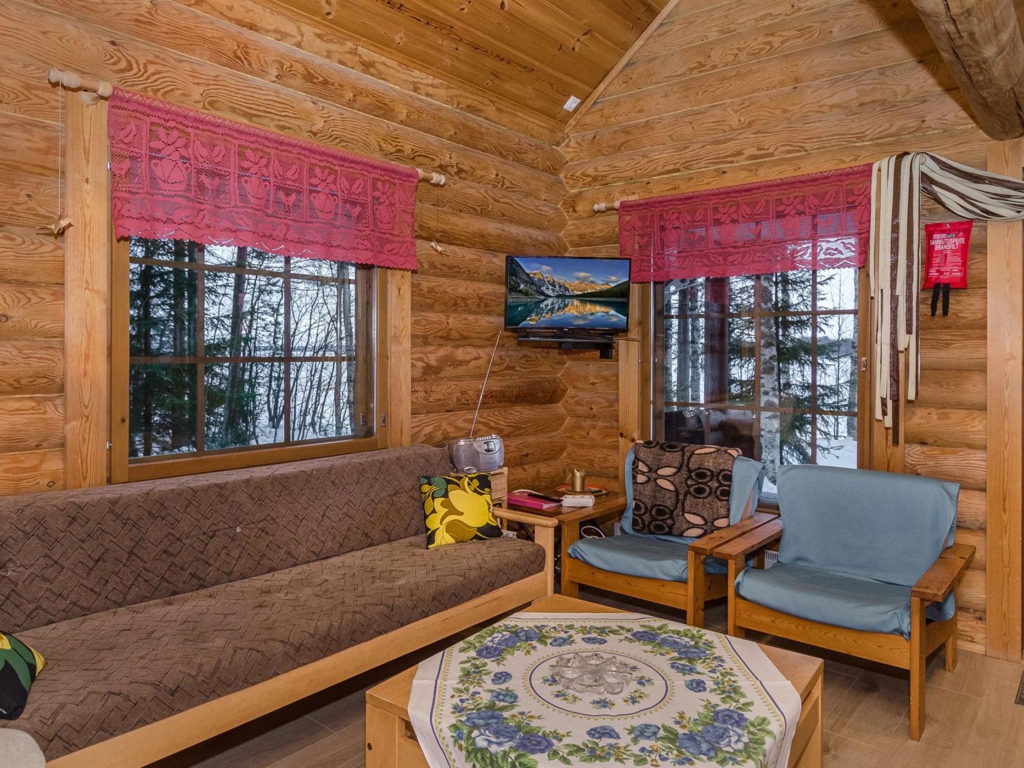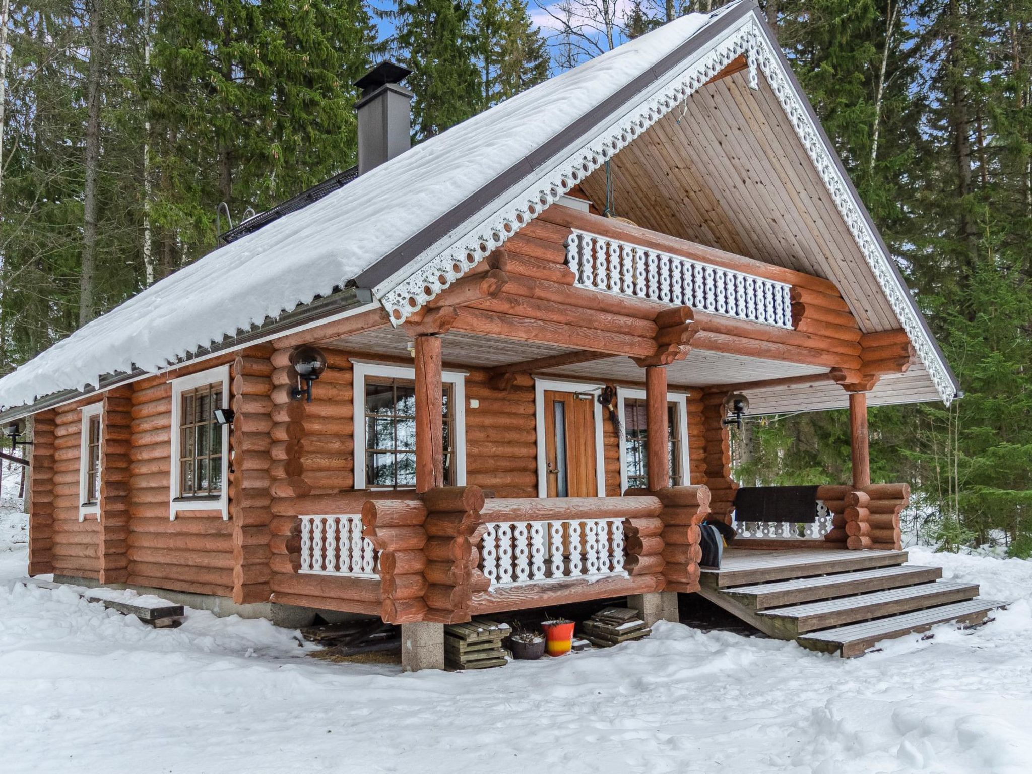 118 km nördlich von Joensuu, 20 km westlich von Lieksa. See Pielinen 30 m (871.2 km2), Westufer mit Sandboden, eigenes Ufer, eigenes Ruderboot. Blockhaus, Baujahr 1996, Wohnzimmer mit Schlafcouch, Küche, Schlafzimmer mit Doppelbett, Schlafgalerie (16 m2) mit 3 Matratzen, Terrasse, Balkon, separate holzbeheizte Sauna. Gemütliches Blockferienhaus für eine kleine Familie, in einem guten Angel- und Bootsgebiet. Trinkwasser wird zum Ferienhaus geliefert und die Kunden können mehr aus dem Wasserhahn in der Hauswand des Eigentümers erhalten. Das Wasser aus dem Bohrbrunnen des Hauses ist manganhaltig. Die Buchungen beginnen um 16:00 Uhr und enden um 12:00 Uhr (auch bei Wochenendbuchungen). Die Endreinigungskosten werden zum Preis hinzugechnet. In der Zeit vom 27.12. bis 12.1. werden die Endreinigungskosten zum Preis hinzugefügt.