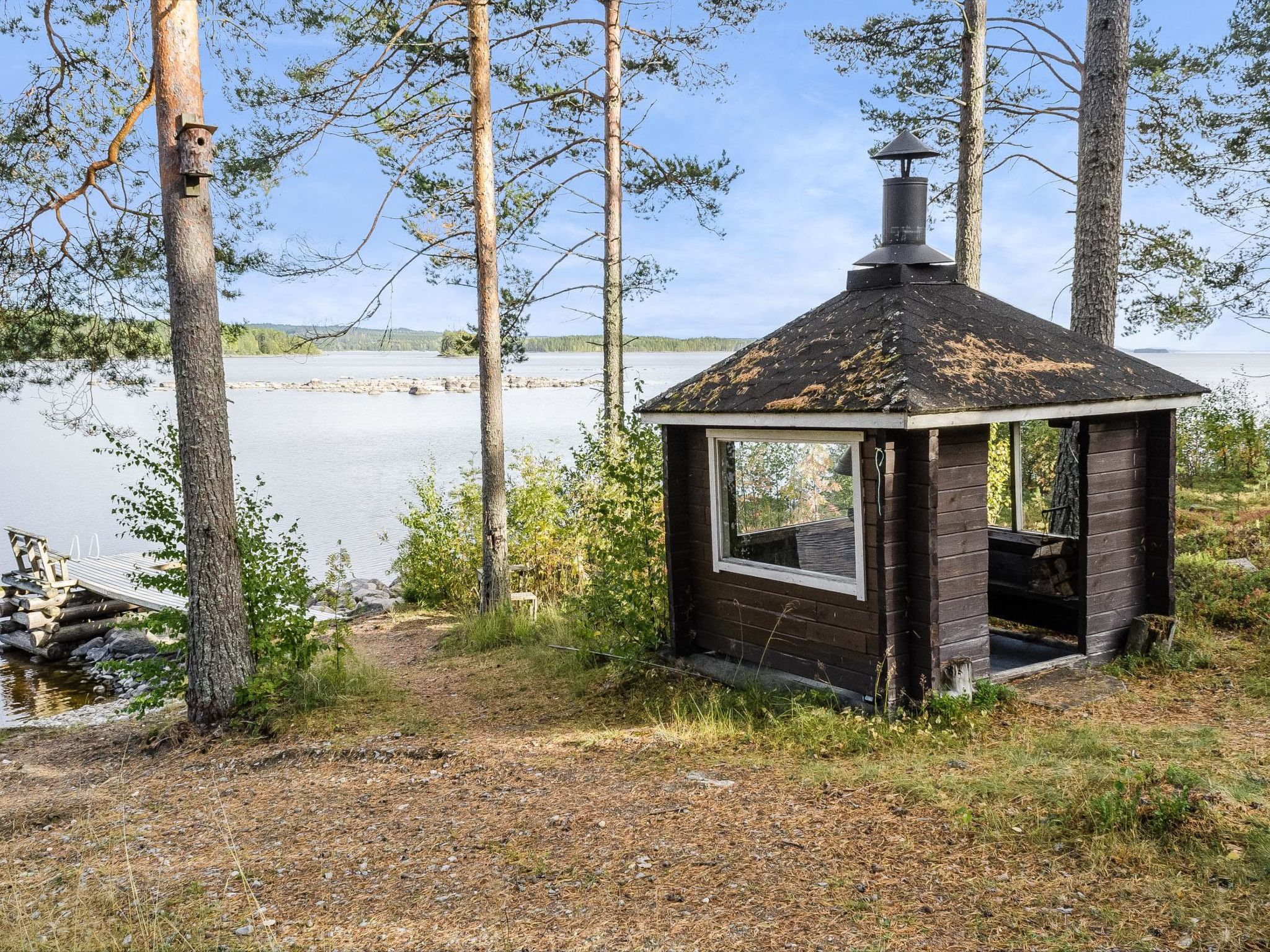 12 km südlich von Nurmes. See Pielinen 12 m (Länge 100 km, Breite 20 km), flaches und tiefes Wasser, Sandboden. Eigenes Boot. Holzhaus, Baujahr 1992, Wohnküche mit 2 Betten, Küche, 2 Schlafzimmer mit je 2 Betten, Sauna, Waschraum, Empfangshalle, 2x offene Veranda. Beleuchtete Loipe im Winter, Fitnessstrecke im Sommer. Jagdmöglichkeit. Gute Angelmöglichkeiten. Aussenbordmotor, Kanu, Windsurfer zu mieten. Motorschlittensafaris und Motorschlittenstrecke in der Nähe. Möglichkeit zum Reiten, 9 km.
