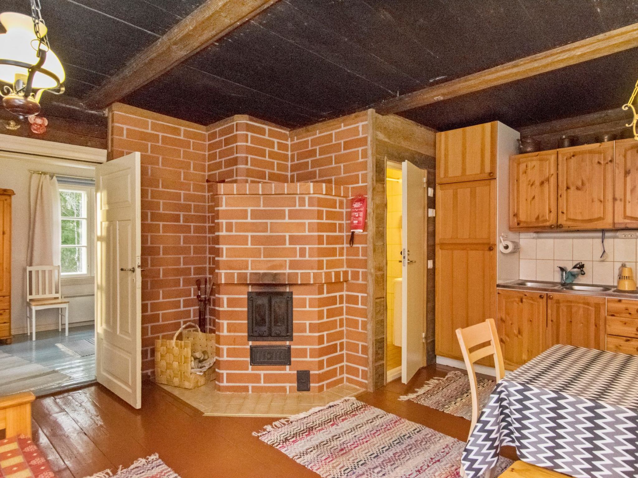40 km östlich von Lahti, Fluss Kymijoki 700 m, sanft vertiefender Badestrand mit hartem Boden am Bootsplatz, Ruderboot. Holzhaus, Baujahr 1890, renoviert 2000, Wohnküche (19 m²) mit ausziehbarem Bett für zwei Personen, Schlafzimmer (13 m²) mit zwei Betten, WC und Dusche im Waschraum, Flur. Sauna im Hof mit Ankleideraum und Holzofen. Die Entfernung zum Bootsplatz/Badestrand ist 700 m. Am Strand gibt es Ruderboot und Fasssauna auf dem Ponton. Holzunterstand, Haustiergebühr EURO 20. Santerin Torppa ist ein kleines Miethaus, mitten im Wald, ideal für ein Paar oder kleine Familie. Der gleiche Eigentümer hat weitere Miethäuser 15096, 15097, 15098 und 15099, in einer Entfernung von einigen hundert Metern. Wenn die Schneebedingungen es erlauben, bereitet der Eigentümer eine Skipiste in ca. 100 Metern Entfernung vor, die Länge der Piste beträgt 1-2 km. Elektrischer und kraftstoffbetriebener Aussenbordmotor, Fahrräder und Angelausrüstung können direkt beim Eigentümer angefragt werden. Tankstelle/Rastplatz Kausalan Matkakeidas 3.7 km, Kausala 8 km, litti Golf 13 km, Kouvola 29 km, Skigebiet Mielakka 32 km, Lahti 40 km, Valkmusa Nationalpark 61 km, Lappeenranta 115 km, Vaalimaa Grenzübergang 124 km, Helsinki 139 km.
