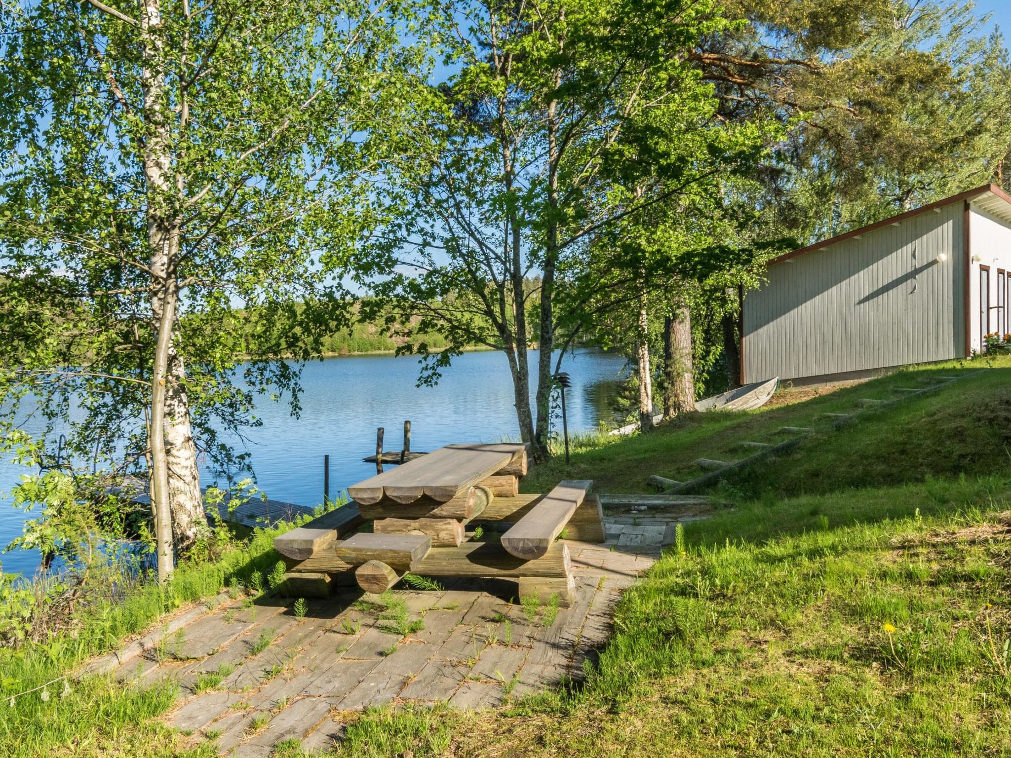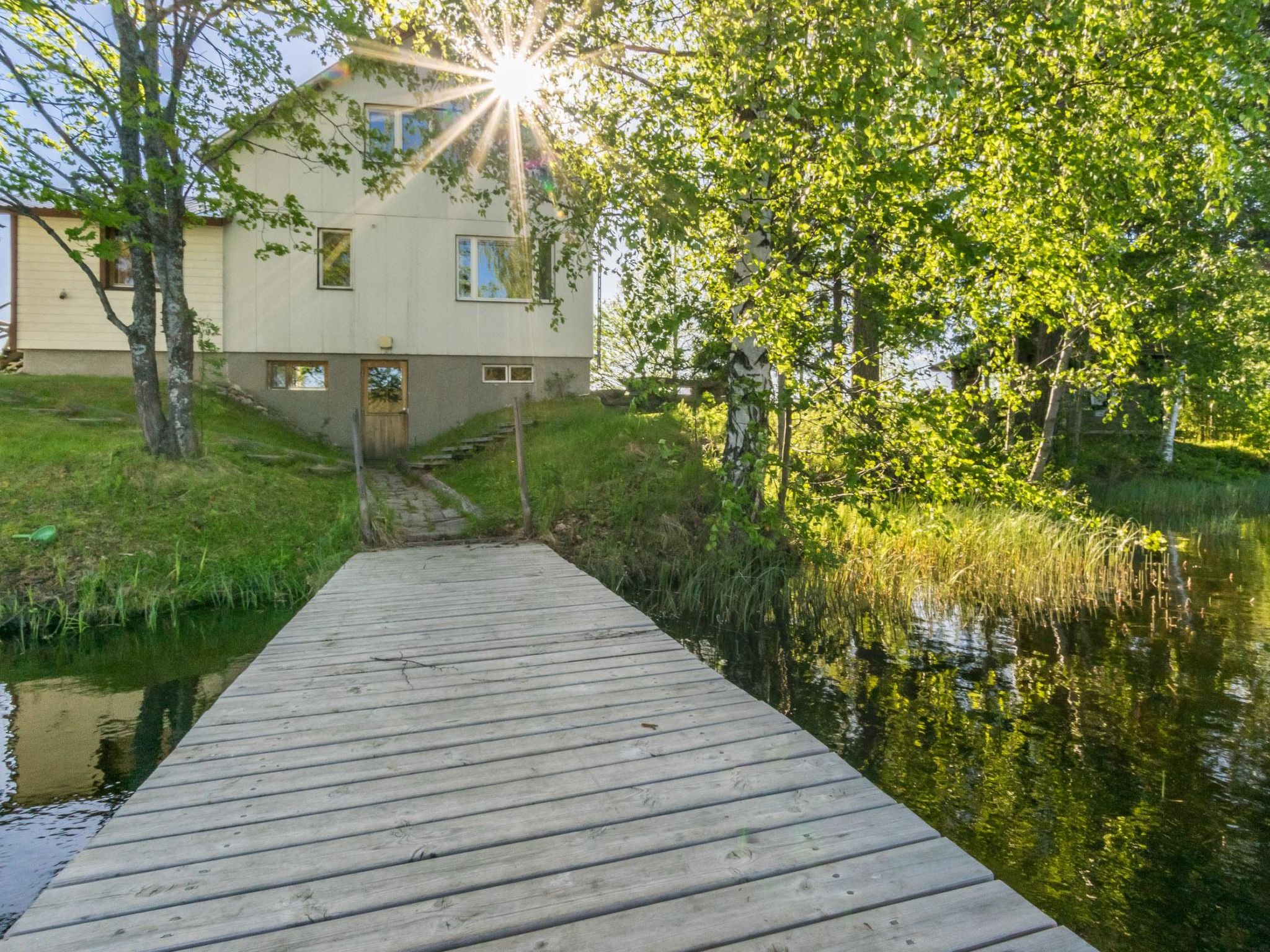 65 km südlich von Savonlinna, See Tarvaslampi 10 m (Länge 2 km, Breite 500 m), tiefer und fester Sandboden, eigenes Boot und Anlegestelle. Dreistöckiges Holzhaus, Baujahr 1952, renoviert 2003, im mittleren Stock Wohnküche, Schlafzimmer mit 2 Betten, Schlafzimmer mit Doppelbett, Toilette und Dusche. Im Obergeschoss Nische mit 2 Zustellbetten, im Obergeschoss Schlafzimmer mit 2 Betten. Im Untergeschoss Waschraum, Ankleideraum, Sauna und Flur. Luftwärmepumpe. Freistehendes Haus zur Feriennutzung umgebaut. Das sonnige Grundstück hat Rasen und ist offen. Im Sommer (5.6.-3.9.) renoviertes Nebengebäude mit Schlafzimmer (12 m2), Holzschuppen und Parkplatz. Elektr. Heizung und Licht, Kleiderschrank, Nachttische und zwei Einzelbetten im Schlafzimmer. Für das Boot ist nur ein elektrischer Aussenbordmotor zulässig. Zustellbett für ein Kind, gegen Aufpreis von EURO 10/Woche. Siikalahti Vogelsee 14 km, Skulpturenpark 19 km, Reitmöglichkeiten 20 km, Steine von Mykkii 20 km, Punkaharju 22 km, Retretti und Lusto 30 km, Savonlinna 57 km, Imatra 76 km, Helsinki 330 km. 4G WLAN-Internetverbindung.
