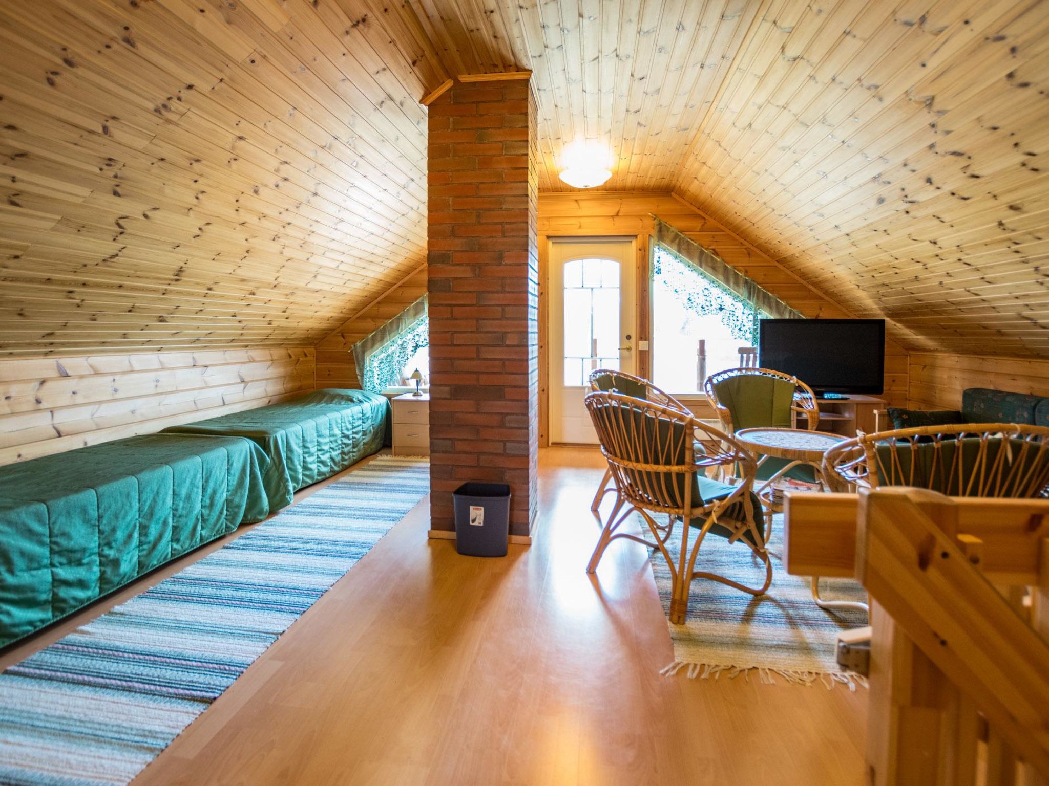 80 km nordöstlich von Tampere, See Jämijärvi 20 m (Länge 15 km, Breite 1 km), flacher und sandiger Lehmboden, eigenes Boot. Block-Berghütte, Baujahr 2003, Küche, Wohnzimmer, Schlafzimmer mit 2 Betten, im Obergeschoss Schlafzimmer mit 2+2 Betten, Lobby mit 4 Betten, Waschraum, Sauna (Elektroherd), 2x offene Veranda. Hofgebäude 35 m², mit Holzofensauna, Ankleidezimmer, Wohnzimmer, Sauna mit elektr. Licht und kaltem Wasser. Wärmebehandeltes Blockhaus mit allem Komfort. Ebener Hof, Hang am Ufer. Der Badestrand ist geschliffen und für Kinder geeignet. Zum Beispiel Zander, Hecht, Brasse und Quappe sind im See zu finden. Jämijärven JÄMI Skianlage nur 8 km! Schneemobilstrecke in der Nähe, Reitmöglichkeit 6 km.