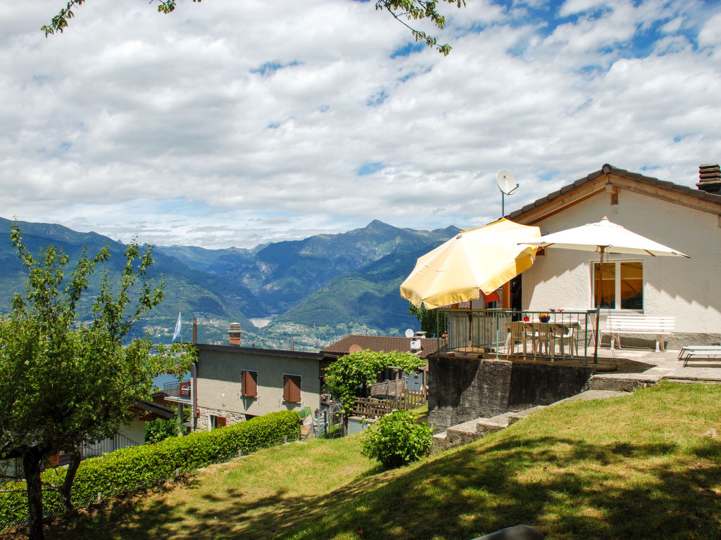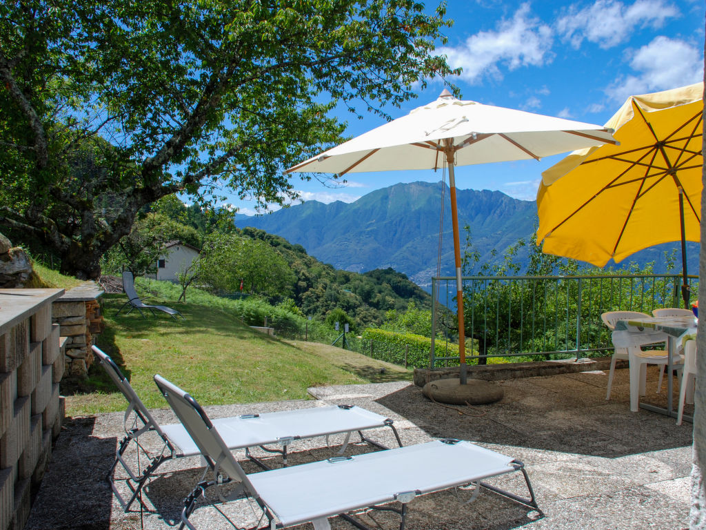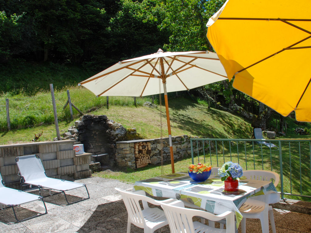 "Baita Monti di Piazzogna", 3-Zimmer-Haus 55 m2. Objekt geeignet für 2 Erwachsene + 2 Kinder. Zweckmässig und gemütlich eingerichtet: offenes grosses Wohn-/Esszimmer mit offenem Kamin und Schwedenofen (nur Deko), Esstisch und Sat-TV (Flachbildschirm). Ausgang zum Garten, zur Terrasse. 1 kleines Doppelzimmer mit 1 Doppelbett (160 cm, Länge 200 cm). 1 Zimmer mit 1 x 2 Etagenbetten (90 cm, Länge 200 cm). Offene Küche (Backofen, 4 Glaskeramikherd Platten, Toaster, Wasserkocher, elektrische Kaffeemaschine, Kapseln für die Kaffeemaschine (Dolce Gusto) extra, Racletteofen, Fondue Set (Käse)). Dusche/WC. E-Heizung. Grosser Gartensitzplatz teilweise überdacht. Terrassenmöbel, Gartengrill, Liegestühle (3), Sitzplatz. Herrliche Panoramasicht auf den See, die Berge und die Landschaft. Zur Verfügung: Haartrockner. Internet (Wireless LAN). Geeignet für Familien. Maximal 1 Haustier/Hund erlaubt. Fantastische Aussicht auf die Staumauer, Locarno/Ascona und die herrliche Landschaft, den Lago Maggiore mit den Brissago Inseln. Babyaustattung, kann selber mitgebracht werden.