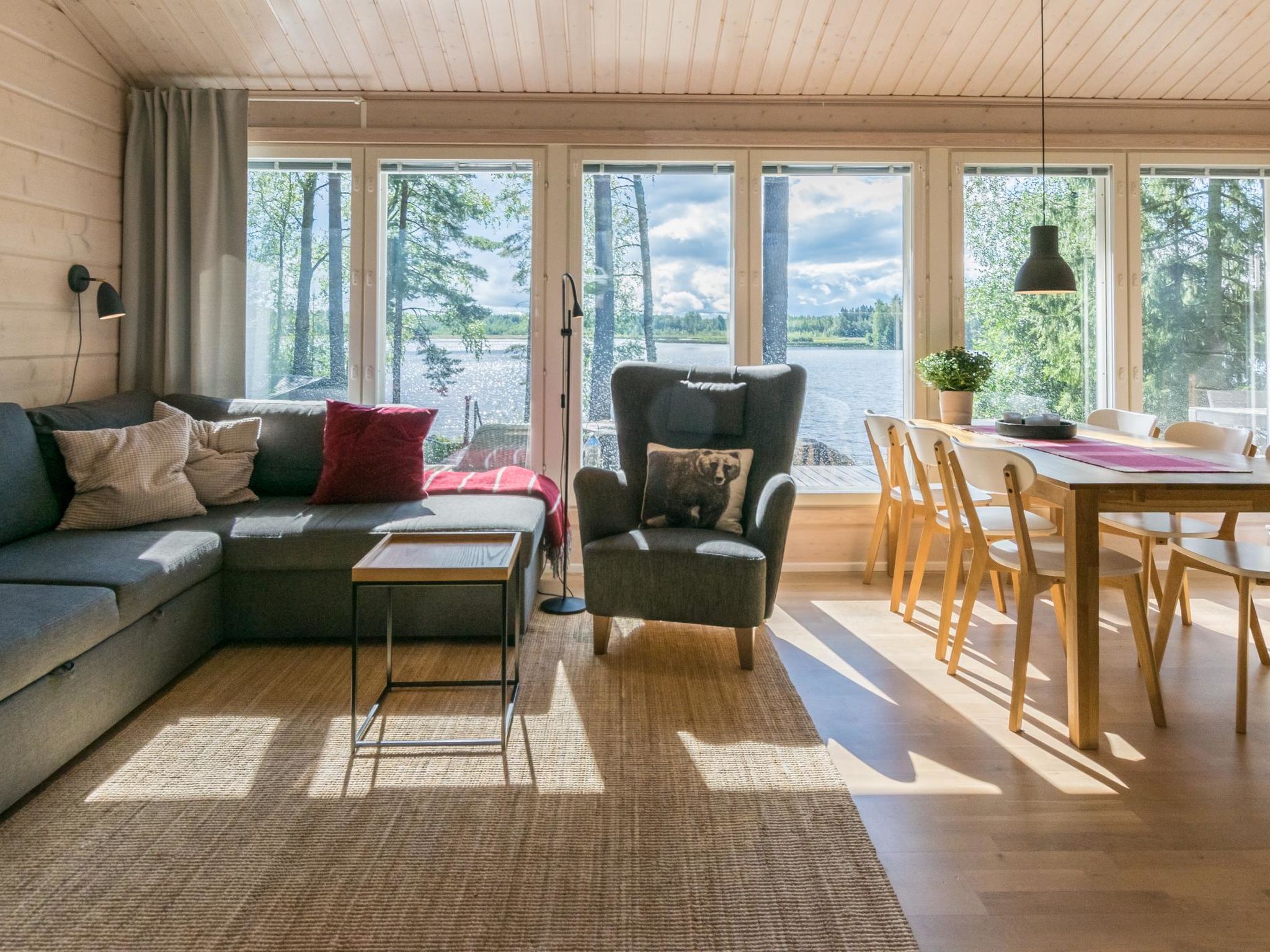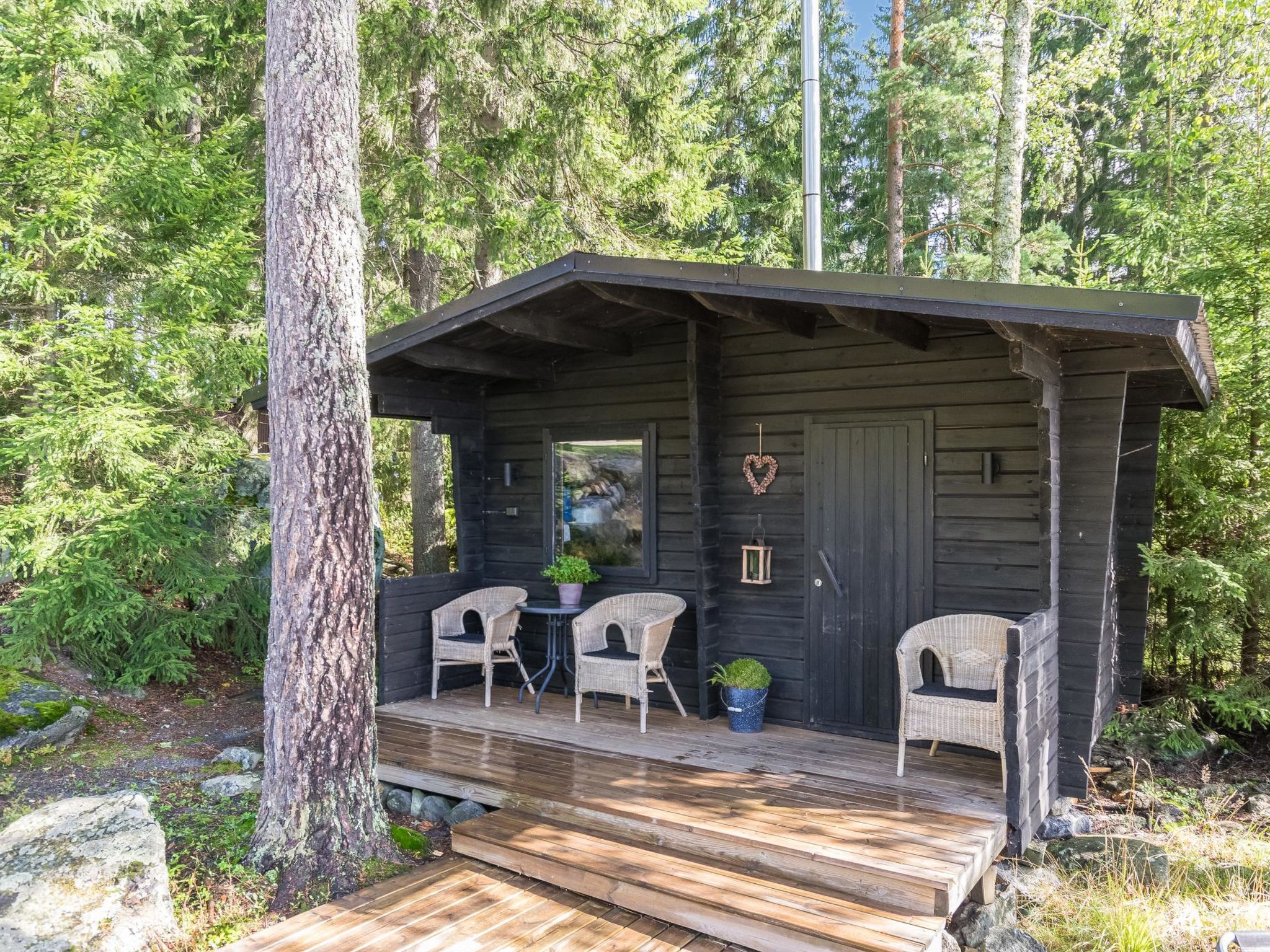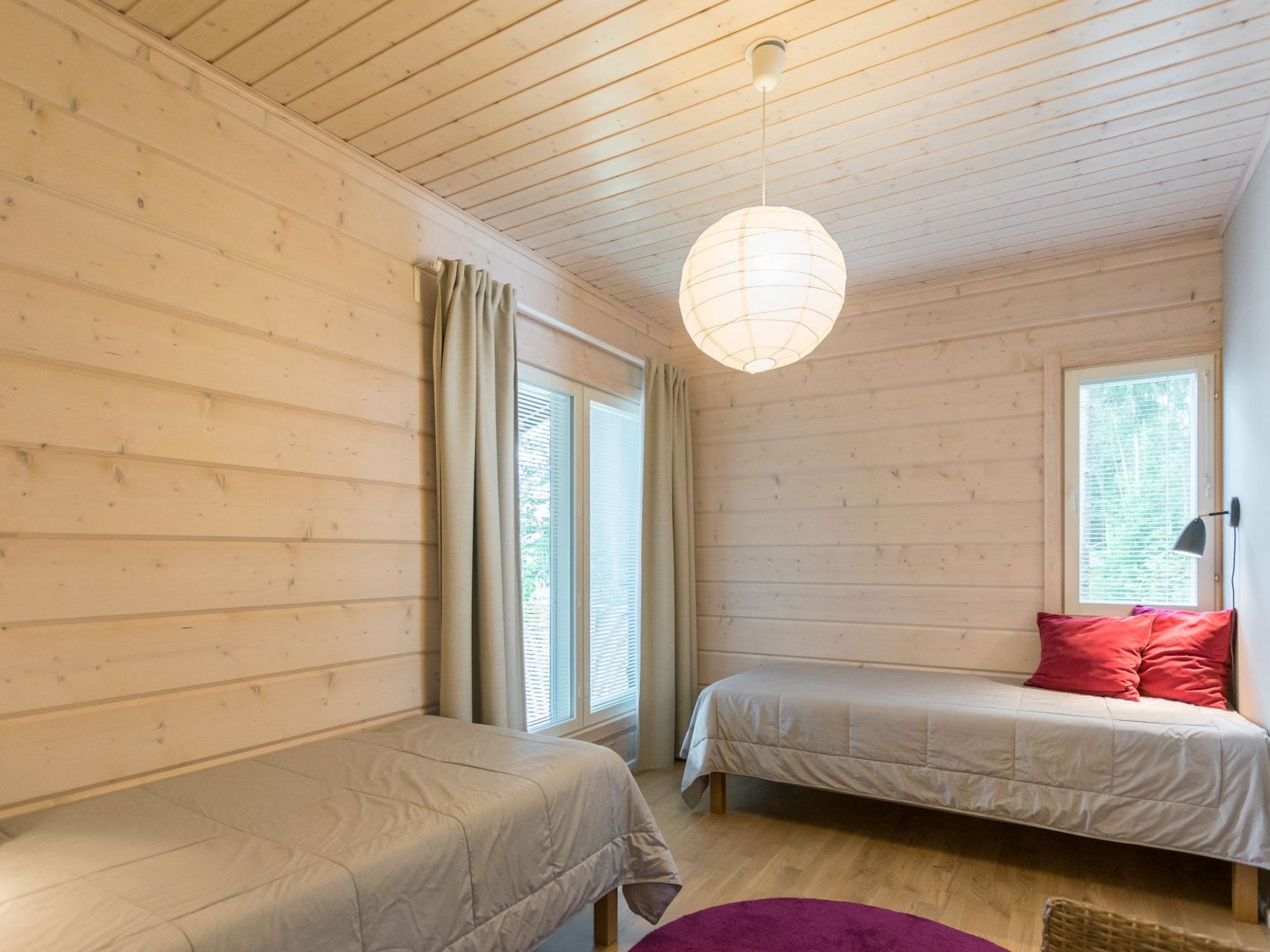 80 km westlich von Tampere, See Karhijärvi (Länge 12 km, Breite 4 km), flach abfallender Sandboden und tiefer dann Schlamm, feste Anlegestelle, Ruderboot. Holzvilla, Baujahr 2016, grosse Wohnküche (Schlafsofa), 2 Schlafzimmer mit je 2 Betten, Schlafzimmer mit 1 Bett und Schlafsofa. Waschraum (2 Duschen), Sauna mit Seeblick (Holzofen), separate Toilette. Umfangreiche, teilweise überdachte, Terrassenflächen. Die Villa verfügt über Fussbodenheizung und mechanische Lüftung. Guter Weg zum Strand. Es gibt auch eine alte Sauna am See (Holzofen, Ankleideraum, kein Strom, kein fliessendes Wasser). Karhijärvi ist ein ziemlich grosser See, in Lavia. Nur für Familien. Der Strand ist für kleine Kinder geeignet. Die Hoffläche ist geräumig und hell, der See öffnet sich nach Süden. Die Nachbarn sind nah, aber die Gäste haben den Frieden. Der See ist reich an Fischen. In der Hochsaison können geräucherte Neunaugen gekauft werden, z.B. am Pori Platz oder im Dorf Nakkila. Tampere (z.B. Särkänniemi Vergnügungspark) 85 k, Pori 45 km, Alt-Rauma (Weltkulturerbe) 90 km.