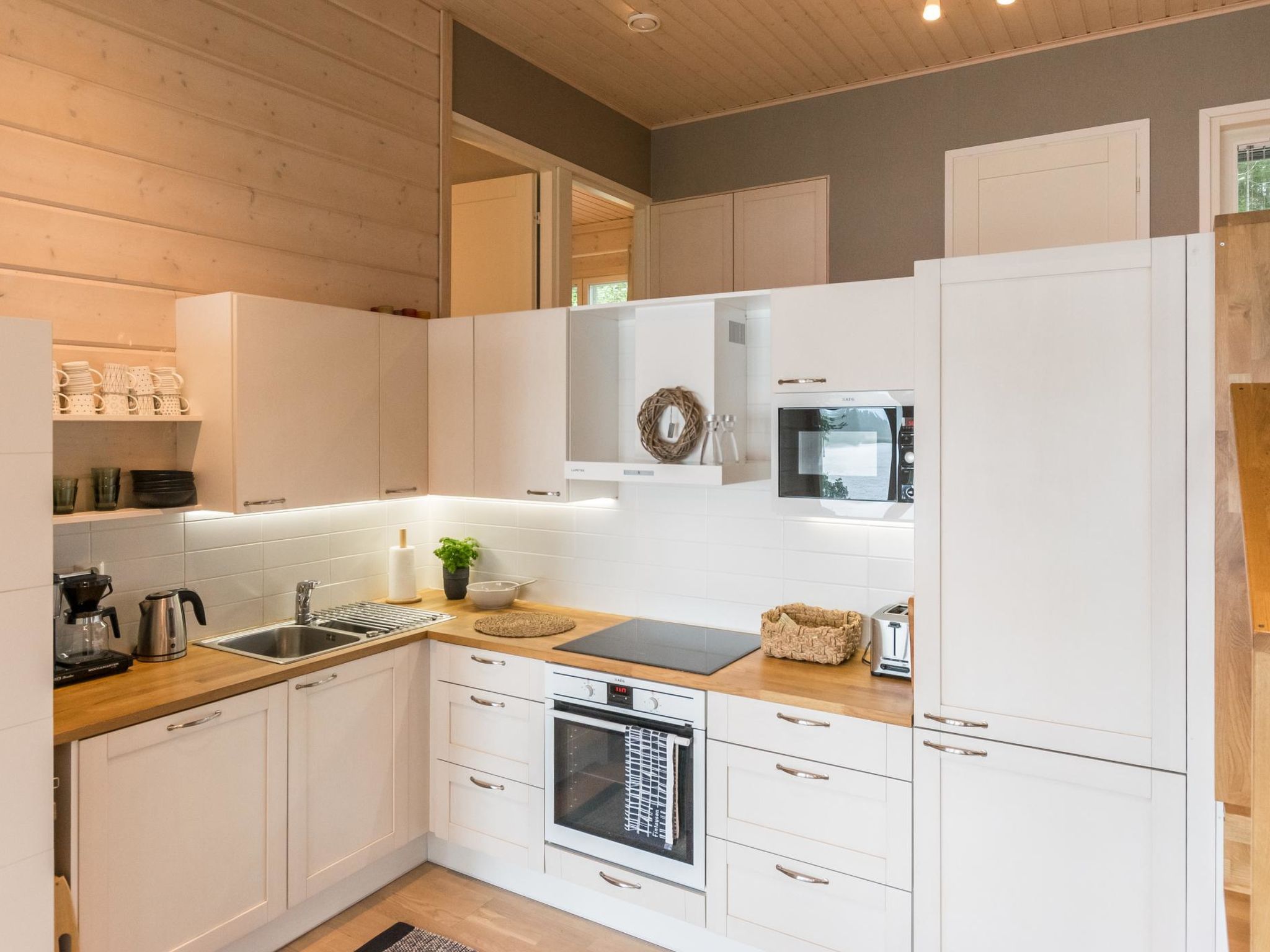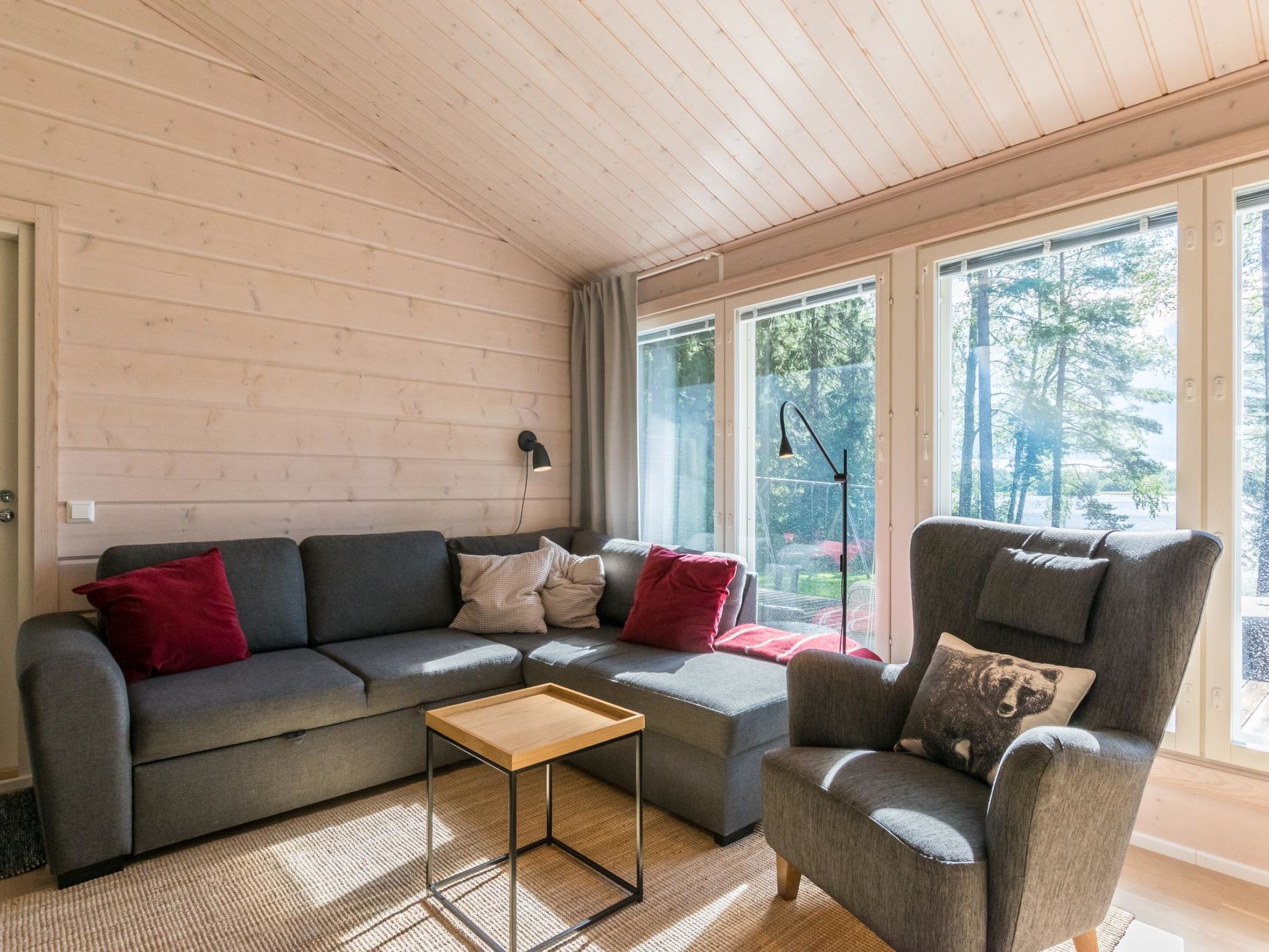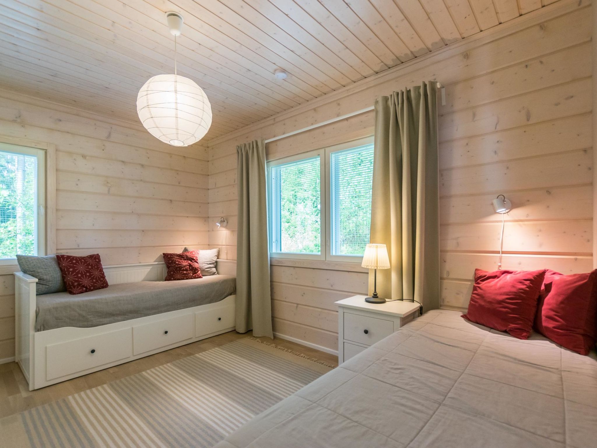 80 km westlich von Tampere, See Karhijärvi (Länge 12 km, Breite 4 km), flach abfallender Sandboden und tiefer dann Schlamm, feste Anlegestelle, Ruderboot. Holzvilla, Baujahr 2016, grosse Wohnküche (Schlafsofa), 2 Schlafzimmer mit je 2 Betten, Schlafzimmer mit 1 Bett und Schlafsofa. Waschraum (2 Duschen), Sauna mit Seeblick (Holzofen), separate Toilette. Umfangreiche, teilweise überdachte, Terrassenflächen. Die Villa verfügt über Fussbodenheizung und mechanische Lüftung. Guter Weg zum Strand. Es gibt auch eine alte Sauna am See (Holzofen, Ankleideraum, kein Strom, kein fliessendes Wasser). Karhijärvi ist ein ziemlich grosser See, in Lavia. Nur für Familien. Der Strand ist für kleine Kinder geeignet. Die Hoffläche ist geräumig und hell, der See öffnet sich nach Süden. Die Nachbarn sind nah, aber die Gäste haben den Frieden. Der See ist reich an Fischen. In der Hochsaison können geräucherte Neunaugen gekauft werden, z.B. am Pori Platz oder im Dorf Nakkila. Tampere (z.B. Särkänniemi Vergnügungspark) 85 k, Pori 45 km, Alt-Rauma (Weltkulturerbe) 90 km.