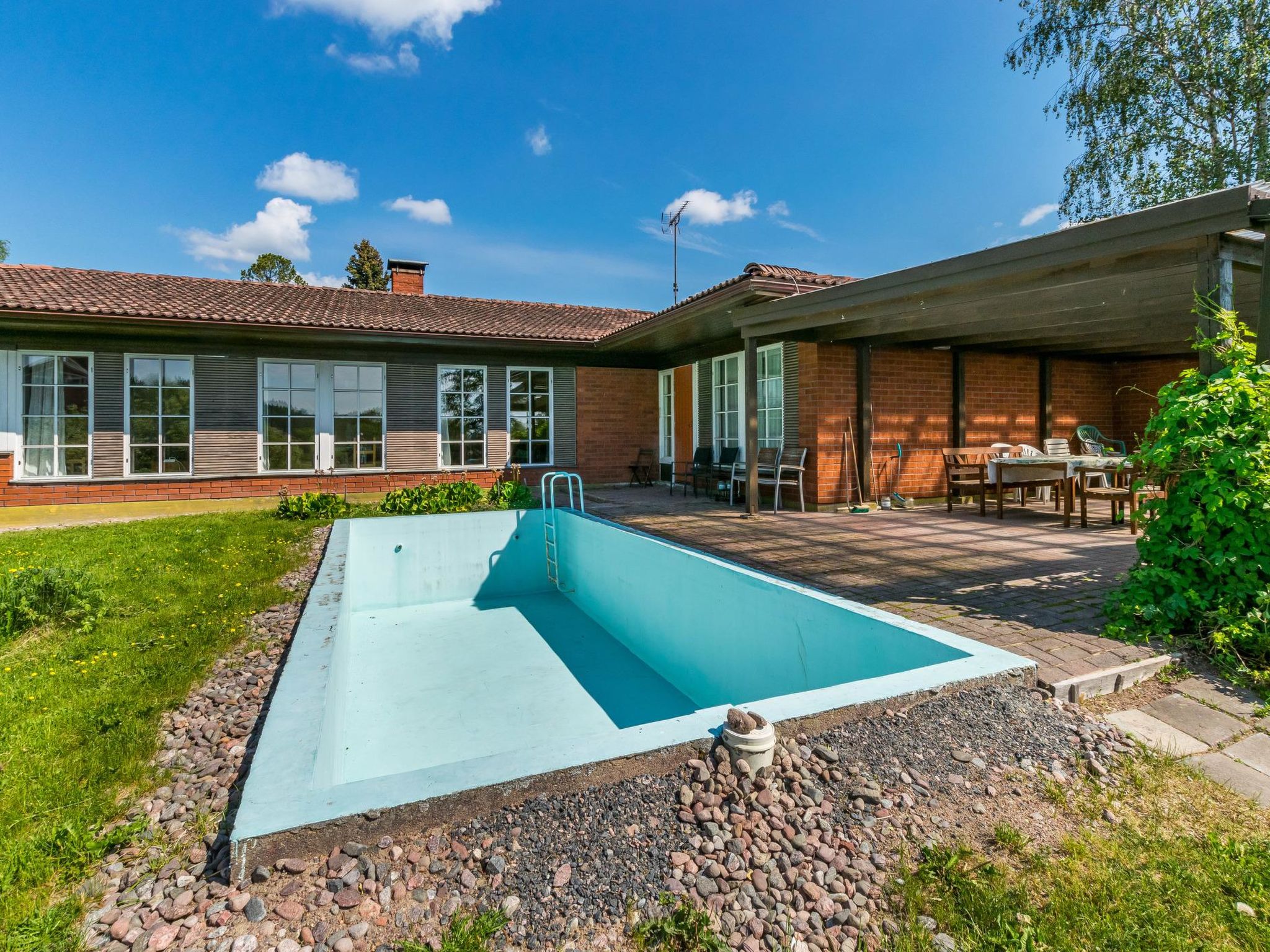 70 km nördlich von Turku, Loimijoki Fluss (Breite 45 m), tiefes Wasser, weicher Lehmboden, eigenes Boot. Backsteinhaus, Baujahr 1968, renoviert 2001, Küche, Wohnzimmer, 5 Schlafzimmer mit je 2 Betten, TV-Raum, Ankleideraum, Waschraum, Sauna mit Elektroherd, grosse Terrasse mit Aussenpool 7 x 2.8 km, 125 cm tief. Ehemaliges Bauernhaus. Breiter Rasen, umgeben von Nebengebäuden des Hofes (nicht im Gebrauch). Nächster Nachbar ist der Eigentümer 80 m entfernt, keine Aussicht. Das Flussufer ist nicht für kleine Kinder geeignet. Reitmöglichkeiten am Kannisto Hof 5 km. Wald- und Natursauflüge nach Vereinbarung. Alastaro-Strecke 15 km.
