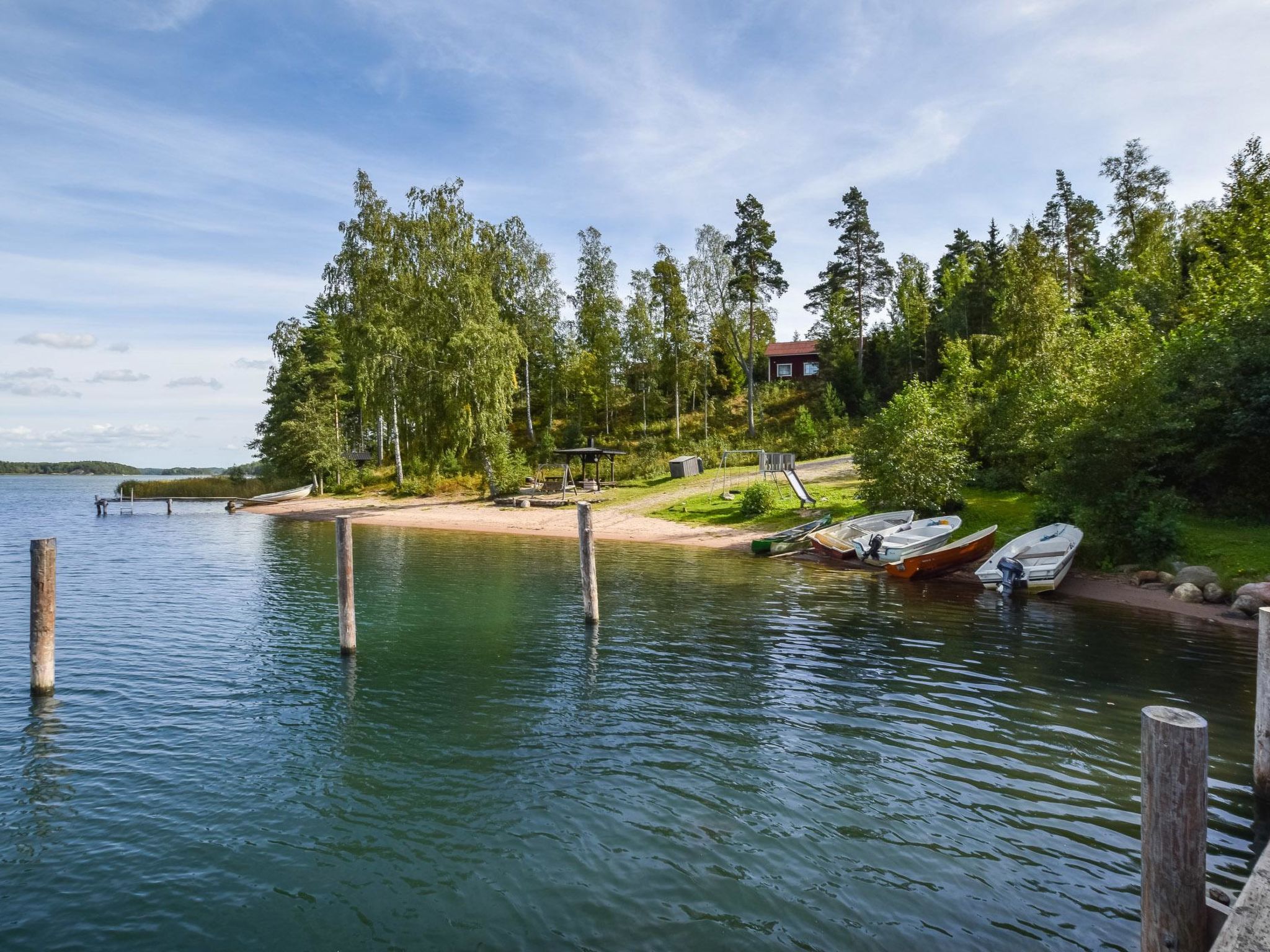 40 km südlich von Turku, Turunmaa Archipelmeer / Airisto 80 m, gemeinsames Ufer mit tiefem Boden, harter Sandboden, eigenes Boot. Holz-Ferienhaus, Baujahr 2006, Wohnküche, 2 Schlafzimmer mit je 2 Betten, Schlafboden mit 2 Betten (steile Treppe zum Dachboden), Waschraum, WC %3D Öko-Toilette, Sauna (Elektroherd), offene Veranda. Das Ferienhaus befindet sich im Dorf mit 6 anderen Ferienhäusern (8031-8037). Die Ferienhäuser teilen sich das Ufer und 2 Stege. Die Grundstücke sind flach und zum Ufer hin steil abfallend. Gute Angelgewässer, der Besitzer vermietet Boot mit Aussenbordmotor (9 PS), auch Aussenbordmotor für Ruderboot. Anfragen zu zusätzlichen Booten sind direkt an den Eigentümer zu richten, dessen Kontaktdaten dem Kunden nach der Buchung mitgeteilt werden. Wenn Sie eigenes Boot besitzen, können Sie es in Stormälö Mariina, ca. 500 m vom Ferienhaus entfernt, ins Wasser stellen (Code vom Eigentümer erforderlich). Parainen 15 km, Airisto 1 km.