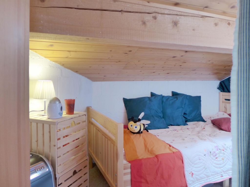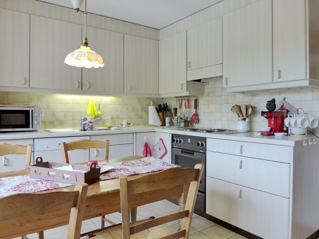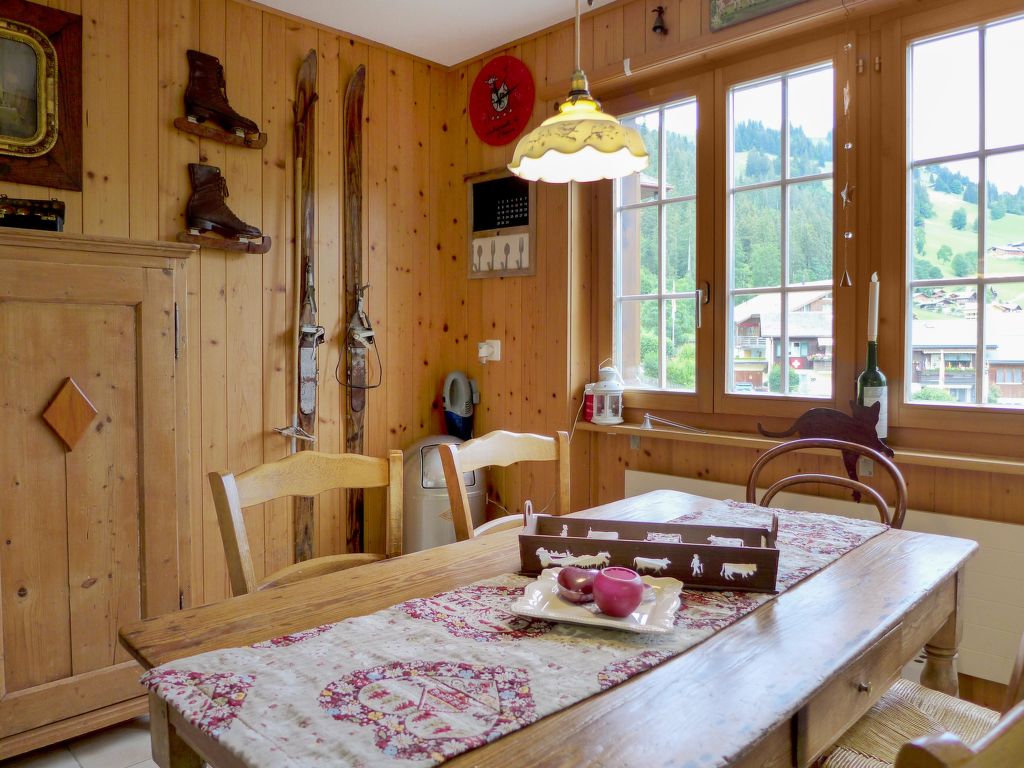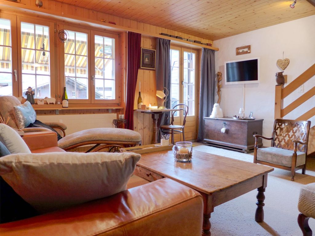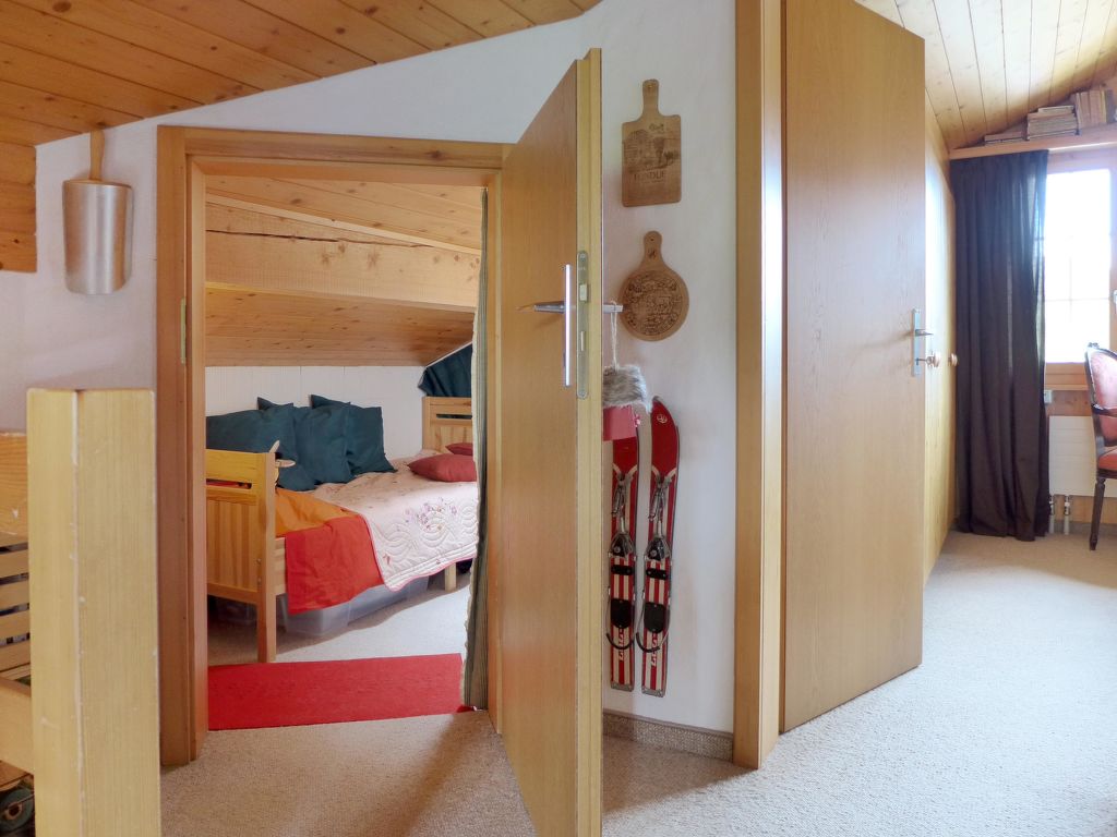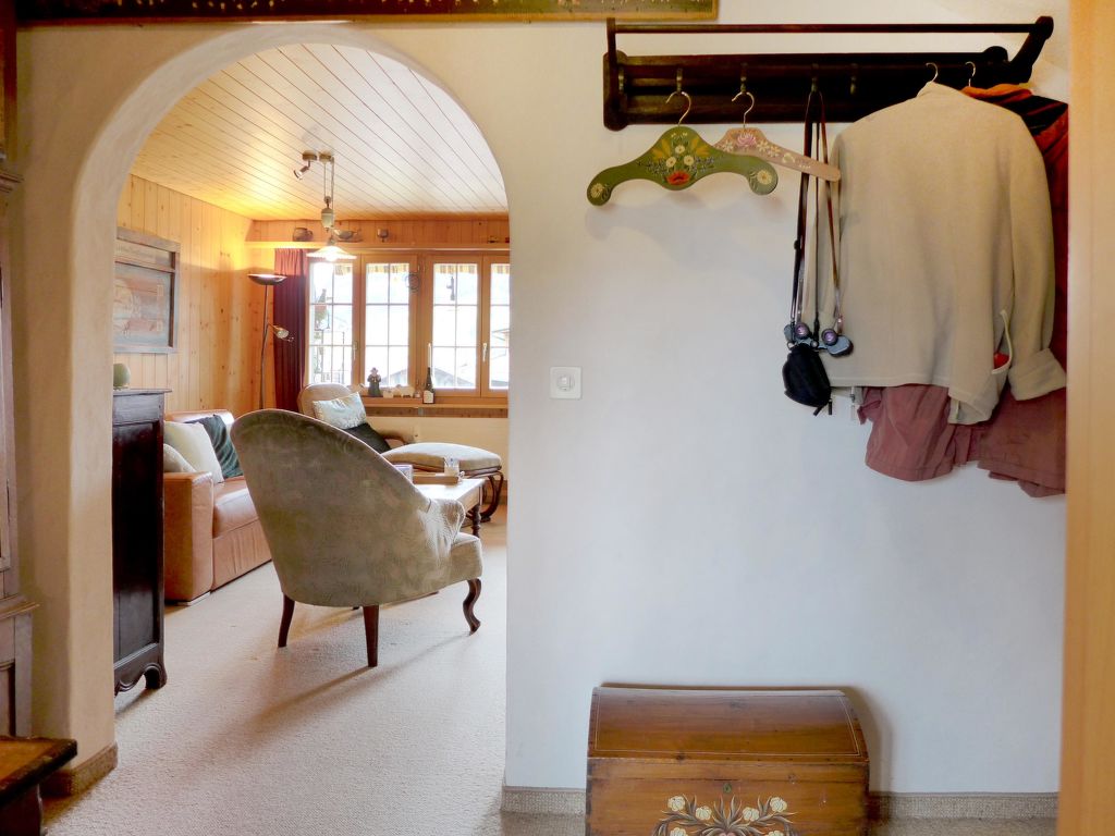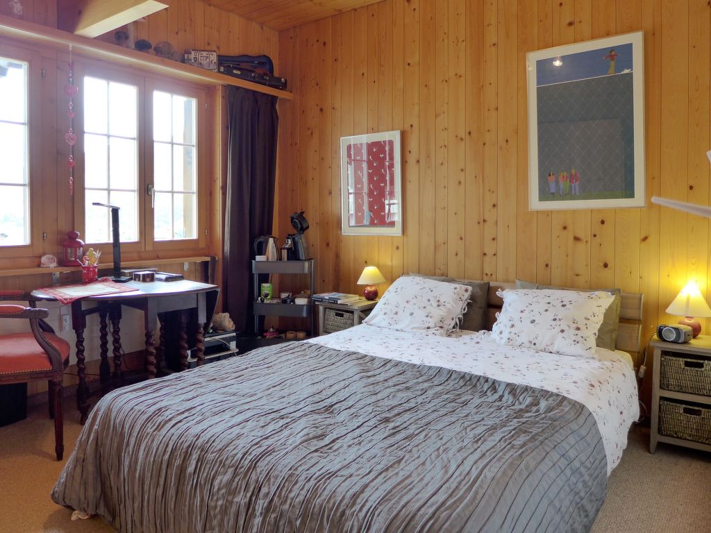 "Gentiane", 4-Zimmer-Maisonette-Wohnung 75 m2, im Obergeschoss. Hell, teilweise abgeschrägt, sehr stilvoll und gemütlich eingerichtet: Wohnzimmer mit 1 Diwanbett und Kabel-TV (Flachbildschirm), CD und Stereoanlage. Ausgang zum Balkon. Wohnküche (3 Kochplatten, Backofen, Geschirrspüler, Toaster, Wasserkocher, Mikrowelle, elektrische Kaffeemaschine, Kapseln für die Kaffeemaschine (Senseo) extra, Racletteofen, Fondue Set (Käse)) mit Esstisch. Dusche/WC. Obergeschoss: (steile Treppe) 1 grosses Zimmer mit 1 Doppelbett (180 cm, Länge 200 cm), Kabel-TV. Ausgang zum Balkon. 1 Zimmer mit 1 Doppelbett (140 cm, Länge 200 cm). 1 abgeschrägtes kleines Zimmer, ohne Schrank mit 1 Bett (90 cm, Länge 200 cm). Bad/Dusche/WC. Teppichboden. 2 Balkone. Balkonmöbel, Gartengrill (mobil), Liegestühle. Herrliche Panoramasicht auf die Berge und die Landschaft. Zur Verfügung: Safe, Haartrockner. Internet (Wireless LAN, gratis). Parkplatz (1 Auto). Bitte beachten: nicht geeignet für Kinder unter 5 Jahren. Nichtraucher-Unterkunft. 1 Haustier/Hund erlaubt.