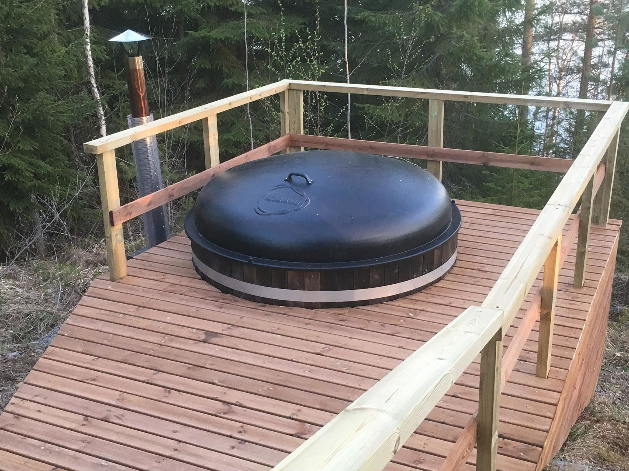 75 km nördlich von Kuopio, See Suur-Juminen 30 m (Breite 1.1 km, Länge 7 km), flacher und hart geschliffener Moränengrund, eigenes Boot. Rundholz-Ferienhaus, Baujahr 1996, Wohnküche, Schlafzimmer mit Doppelbett, im Obergeschoss 1 grosses Zimmer, 2 Betten (90 cm breit), 1 Doppelbett (120 cm), 2 ausziehbare Schlafsofas/Doppelbett, Sauna, Waschraum, Balkon und 2 offene Veranden. In der Wohnküche Nunna-Backofen mit Glastür, Fussbodenheizung im Waschraumbereich. Luftwärmepumpe mit Kühlfunktion. Steiler Hang zum Ufer vom Ferienhaus, Treppe zur Anlegestelle runter, Sauna am Seeufer und Grill-Tipi. Die Ufersauna verfügt über Holzofen, Ankleidezimmer und Veranda. Zum Tipi gehört Gasgrill (Grill befindet sich möglicherweise auch auf der Terrasse), Anlegestelle mit Sitzbank. Whirlpool kann direkt vom Eigentümer gemietet werden. Bootsrutschen 3 km, See mit guten Zander- und Hechtbeständen, Beeren- und Pilzwälder angrenzend. Auf Vattusaari, vor dem Haus, befinden sich Unterstand und Lagerfeuerplatz. Entfernungen: West-Pisten des Tahko Skigebiets 34 km, Tahko Golf und SPA 40 km, Rissala Flughafen 60 km. Wildfarm im Wildtierland (Villieläinmaa), die Wildschweine in Gefangenschaft hält, bietet auch Verpflegungsmöglichkeiten, 5 km. Lebensmittelgeschäft 9 km (nur im Sommer), Supermarkt in Varpaisjärvi 17 km.