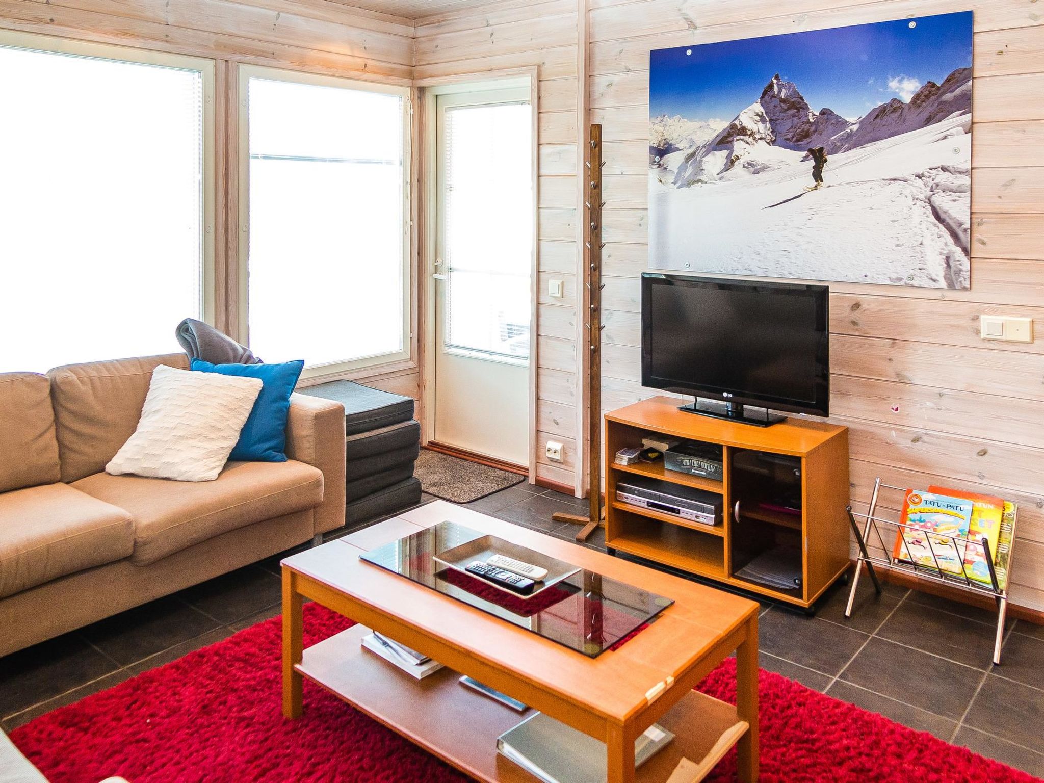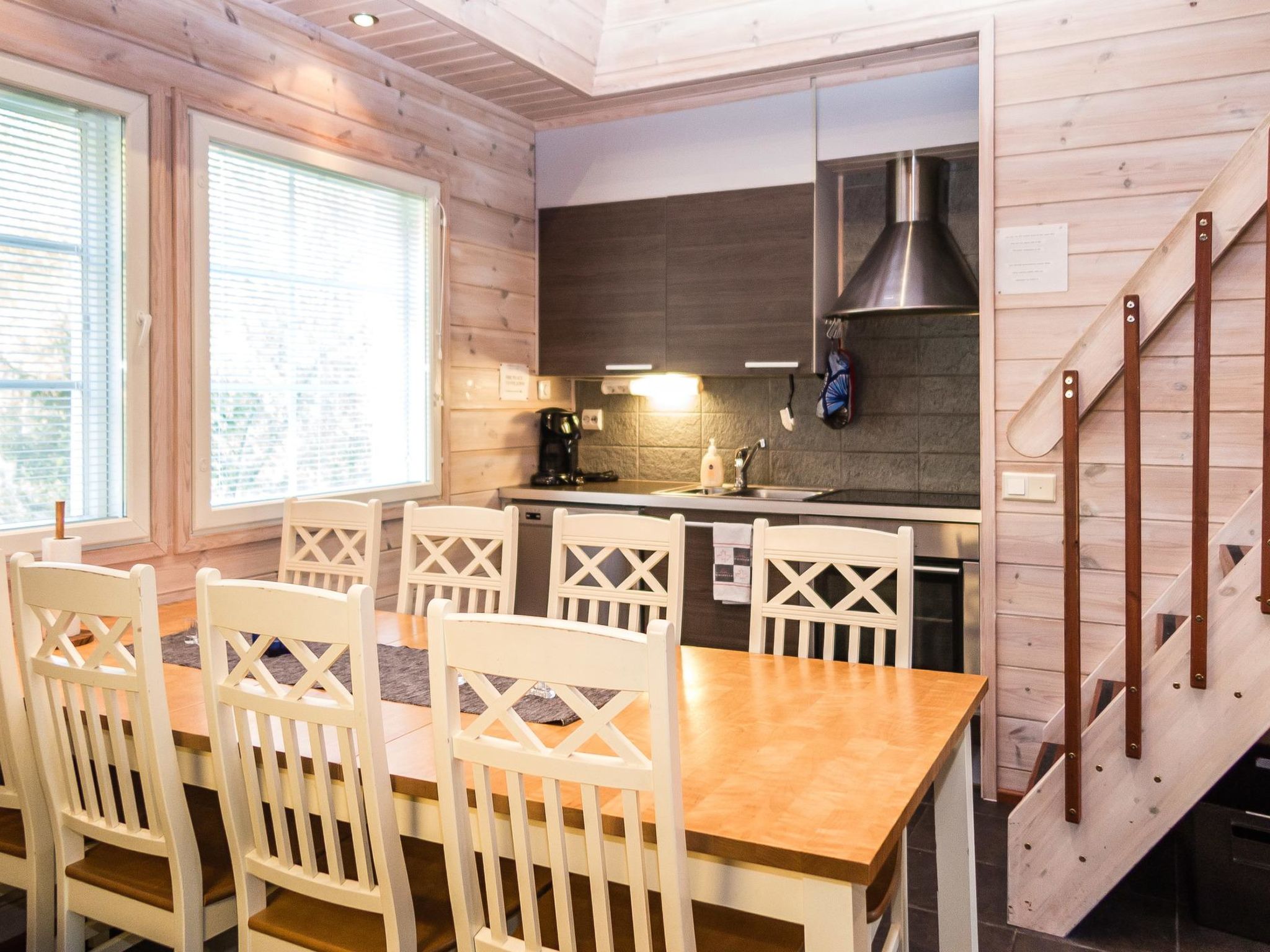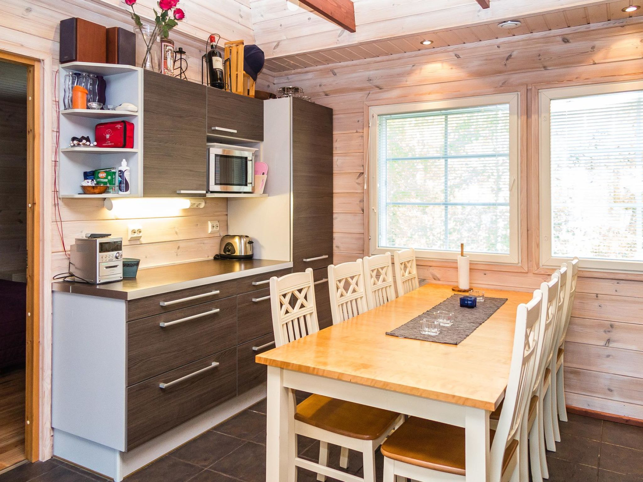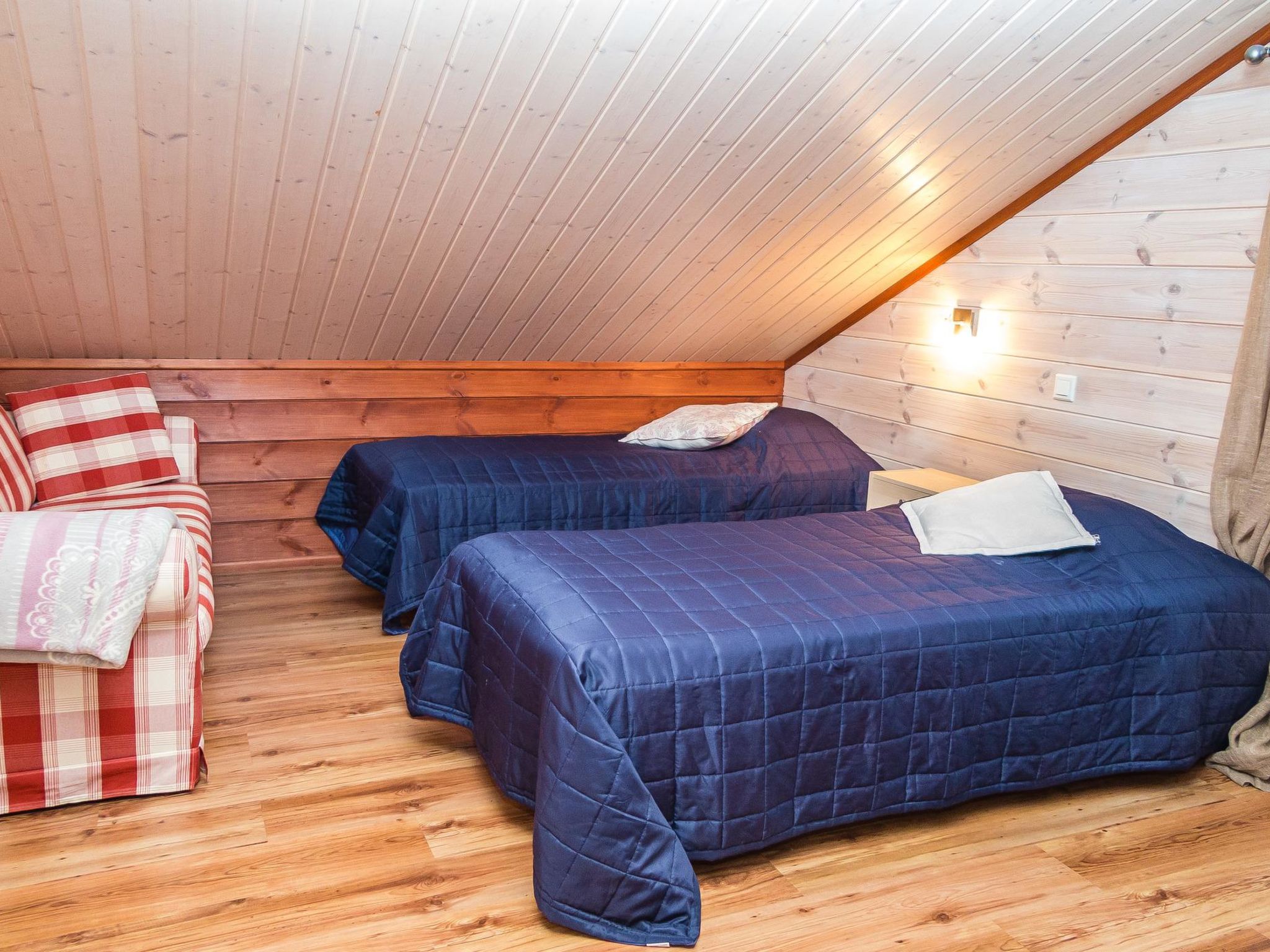 56 km nordöstlich von Kuopio, See Syväri 200 m (Länge 30 km, Breite 10 km), ohne eigenes Ufer, öffentliches Ufer 5 km, kein Boot. In der Nipastahko Gegend, 5 km vom Tahko Zentrum und Pisten entfernt, angenehme und hochwertige Ferienwohnung im Doppelhaus. Die Ferienwohnung wurde 2006 gebaut und Ende 2010 renoviert und neu möbliert. Fläche 95 m² + Dachboden 25 m². Im Erdgeschoss gibt es 2 Schlafzimmer mit je 2 getrennten Betten, Küche, geräumiges Wohnzimmer mit Kamin, geräumige Sauna mit elektrischer Heizung und grosse Terrasse. Im Waschraum WC und weiteres separates WC im Erdgeschoss. Auf dem Dachboden gibt es geräumiges Schlafzimmer mit 4 Einzelbetten, WC, zweitem Fernseher und Sofa. Im Obergeschoss gibt es Kindertor. Das Ferienhaus kann maximal für 8 Personen gemietet werden. Ein anderer Eingang in den Hauswirtschaftsraum. Eine angenehme Wohnung "Alppituulahdus" in einer Doppelhaushälfte , aus hochwertigen Materialien gebaut. Die Ferienwohnung befindet sich in einem ruhigen Ferienhausgebiet. Gutes "Basislager", in der Nähe des Ferienorts Tahko, für Familien mit Kindern oder Paare geeignet. Das Hofgebiet ist naturbelassen und wird im Sommer nicht gepflegt. Das renovierte separate Schlafzimmer im Obergeschoss bietet einen ruhigen Platz für schlafende Kinder, wenn die Eltern weiter zusammen sein wollen. Im Obergeschoss separates WC. 5 km zu den Pisten. See Syväri 0.2 km, Nilsiä 8.5 km, Kuopio 56 km. Die obligatorische Endreinigung wird zu jeder Buchung hinzugefügt. Wir empfehlen, die Bettwäsche (Bettlaken und Handtücher) im Voraus bei uns zu bestellen. Wenn die Kunden diese nicht bestellen, müssen sie unbedingt eigene Bettwäsche mitbringen. Kinderpaket, Babybett, Hochstuhl und Töpfchen. Haustiere sind nicht erlaubt. DVD/VHS-Spieler, Stereoanlage, Grill, Brennholz. Jede Buchung beginnt um 16:00 Uhr und endet um 12:00 Uhr (auch am Wochenende). Matkus Einkaufszentrum 70 km.