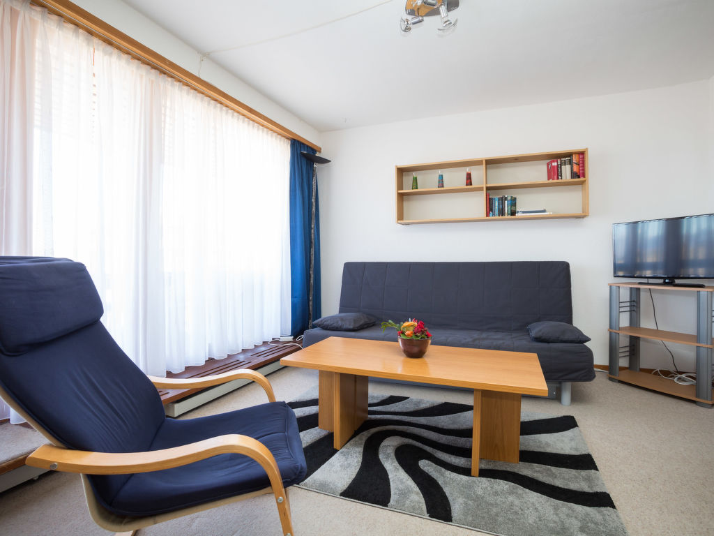 "Combire 405", 1-Zimmer-Studio im 4. Stock. Zweckmässig und komfortabel eingerichtet: Wohn-/Schlafzimmer mit 1 Doppeldiwanbett (140 cm, Länge 200 cm), 1 Wandklappbett (90 cm, Länge 190 cm), TV. Ausgang zum Balkon. Offene Küche (2 Kochplatten, Backofen, Mikrowelle). Bad/WC. Balkon, Westlage. Balkonmöbel. Sicht auf die Skipiste. Zur Verfügung: Internet (Wireless LAN). Bitte beachten: Nichtraucher-Unterkunft.