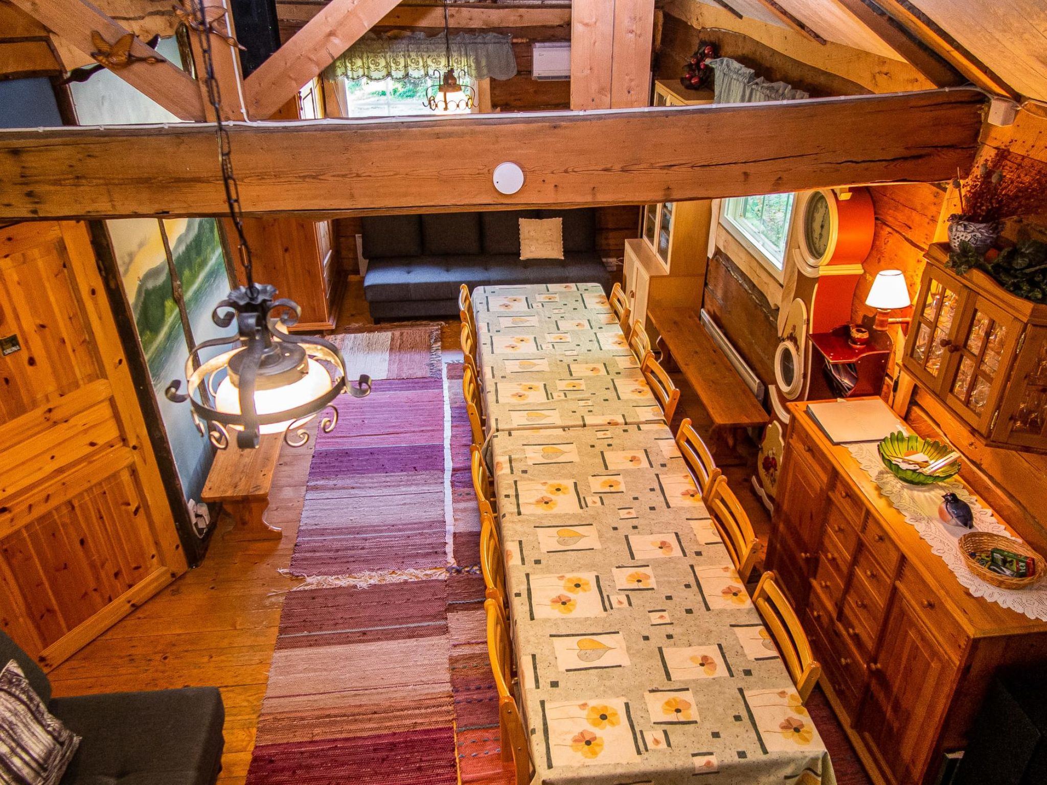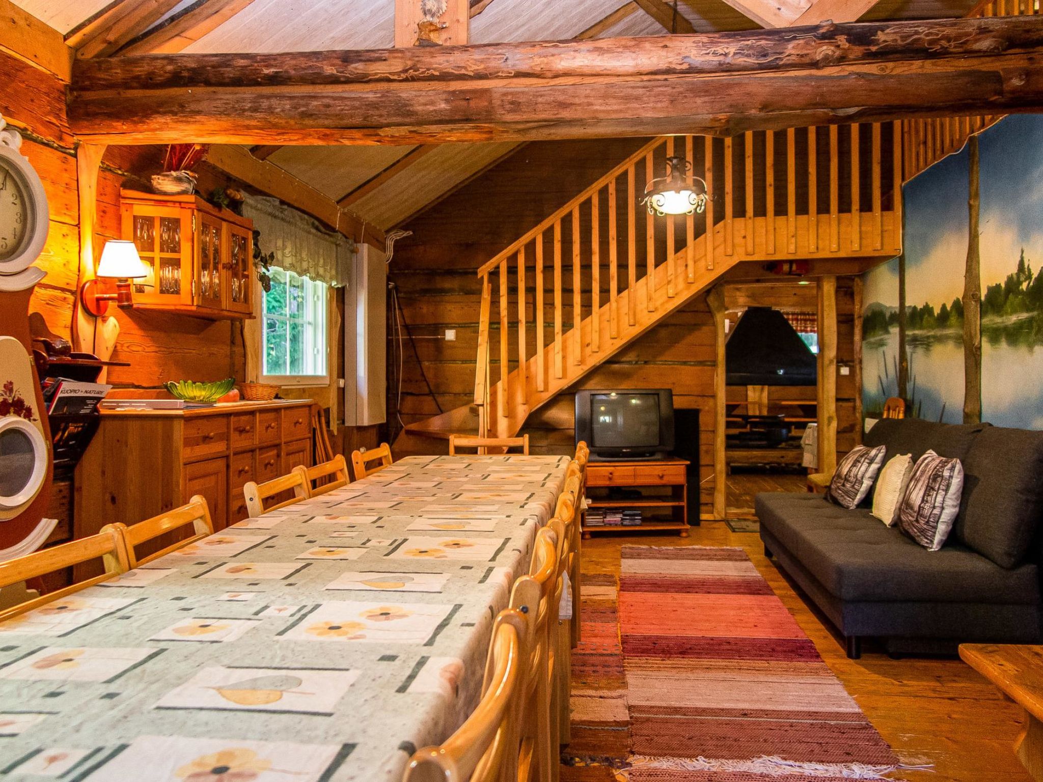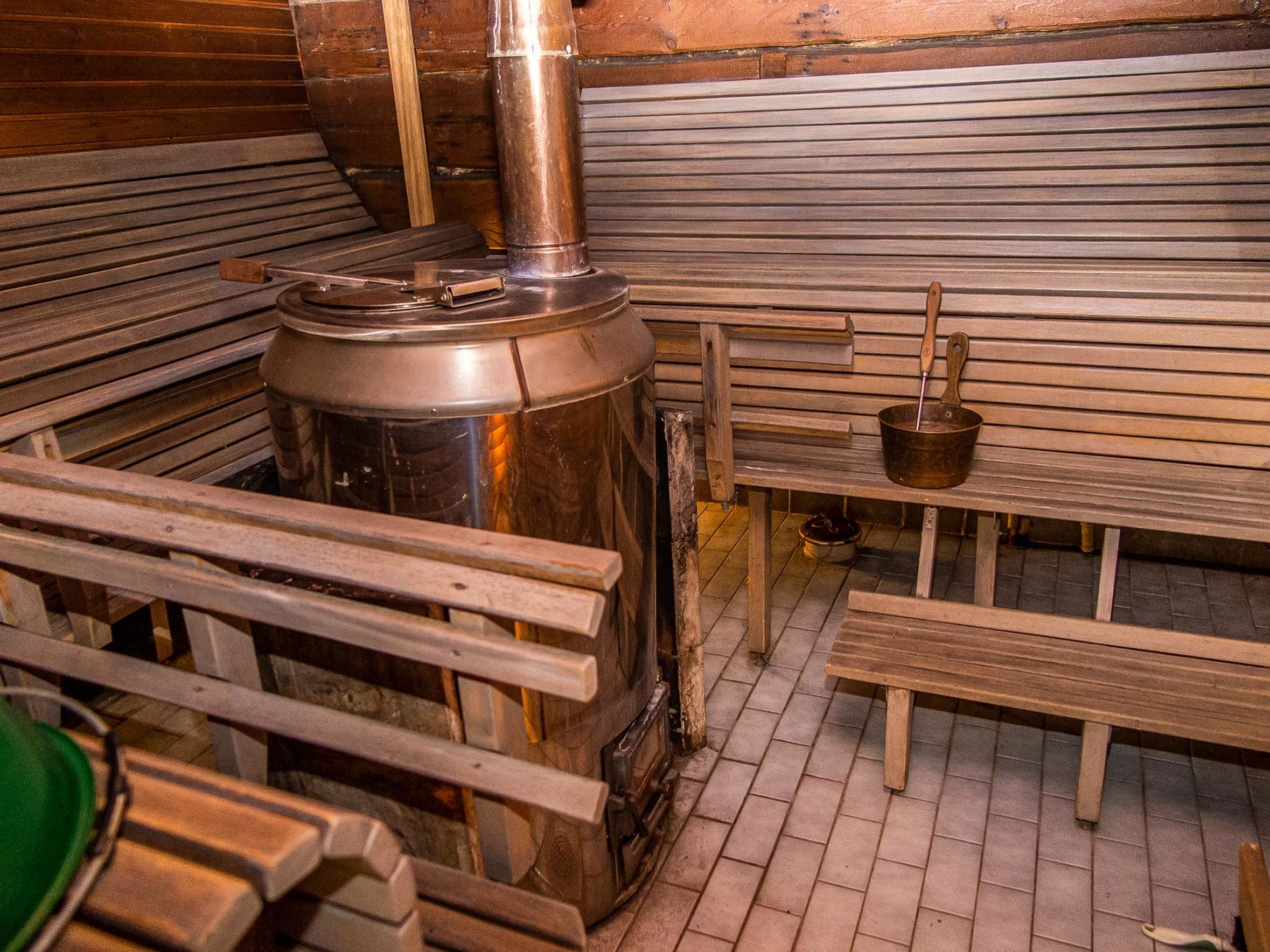 65 km nordöstlich von Kuopio, künstlicher Teich 25 m (Grösse 20 x 30 m), tiefste Stelle des Teiches ist 3 Meter, tiefes Ufer, das Wasser fliesst durch den Teich. Künstlicher Teich und Anlegestelle zur Mitbenutzung mit dem Nachbarhaus 13344. Blockhaus, Baujahr 1997, sehr grosses Wohnzimmer (ca. 60 m²), in der Mitte des Wohnzimmers befindet sich Grillbereich, weiteres Wohnzimmer mit Etagenbett, 2 Schlafsofas %3D 4 Zustellbetten, flache Schlafnische im Obergeschoss (Durchschnittshöhe 1.7 m) mit Doppelbett, niedriger Boden (Durchschnittshöhe 1.3 m) mit Doppelbett. Waschraum mit Toilette und zwei Duschen, auch separate Toilette, Sauna (Holzofen). Terrasse mit Whirlpool für 7 Personen. Der Preis beinhaltet die Nutzung des vorgewärmten Whirlpoos (1x Vorheizen und 1x Füllen mit Wasser, Buchung mindestens 1 Tag vorher). Wasserwechsel und zusätzliche Heizung kosten EURO 100/Verlängerung. Der Preis beinhaltet auch hochwertige Karaoke-Anlage und feste Internetverbindung (8 MB). Im Sommer (vom 1.5. bis 30.9.) Saunahaus am See und Grillhütte zur Mitbenutzung. Ferienhaus Kuusenkatve ist ein gemütliches Blockhaus. Es ist der perfekte Ort für Familienfeier und Hochzeiten. Der Eigentümer vermietet auch einen Partyraum, der sich auf dem Grundstück befindet. Wenn Sie auch das Nachbarhaus (13344) mieten, können dort insgesamt 16 Personen untergebracht werden. Die Hauptpisten des Skigebiets Tahkovuori 15 km, die Westpisten 6 km. Tahko Spa, Piazza, Golf alter Golfplatz 16 km. Gepflegte Loipen direkt vom Ferienhaus (Länge 10 km).