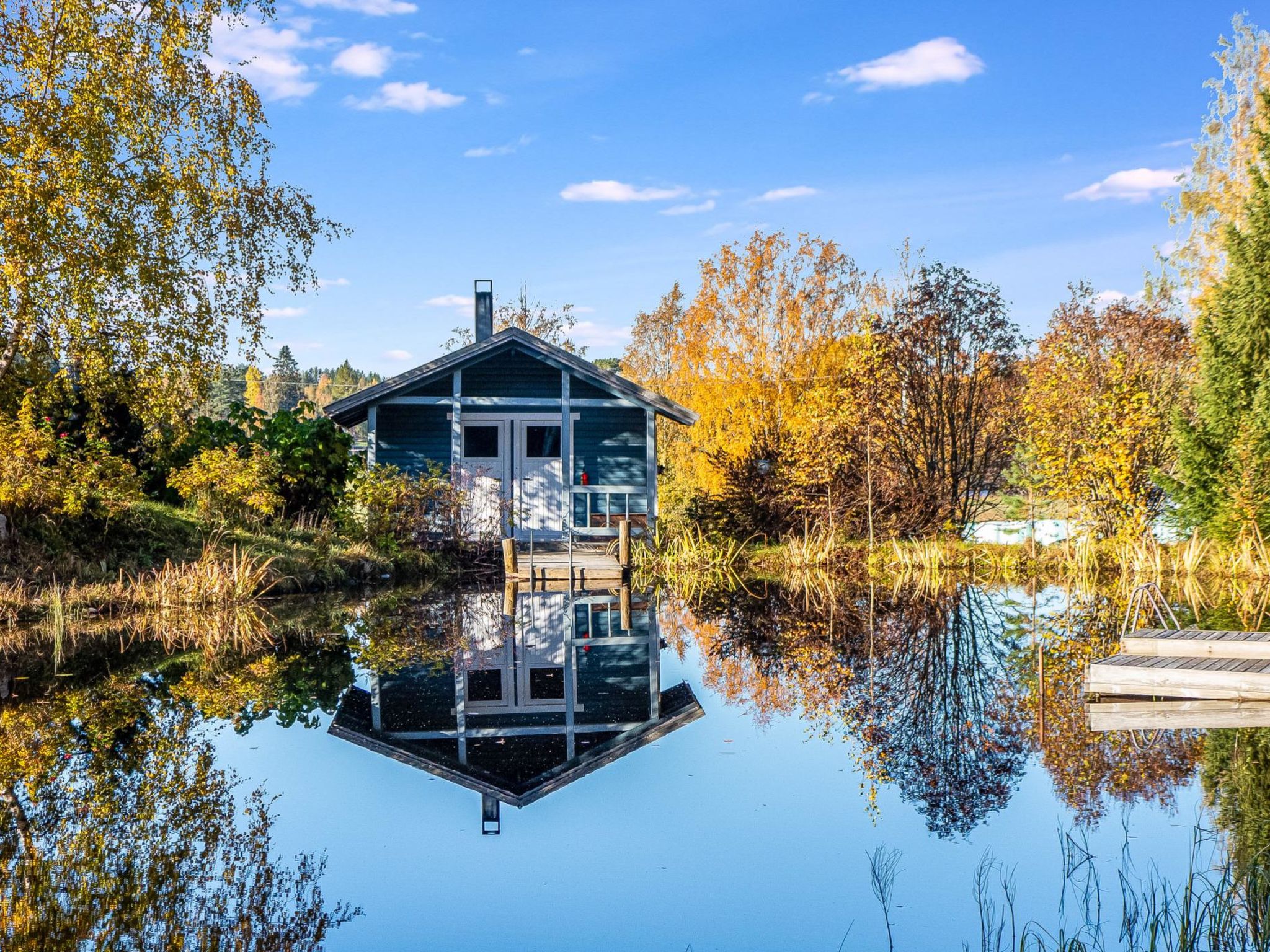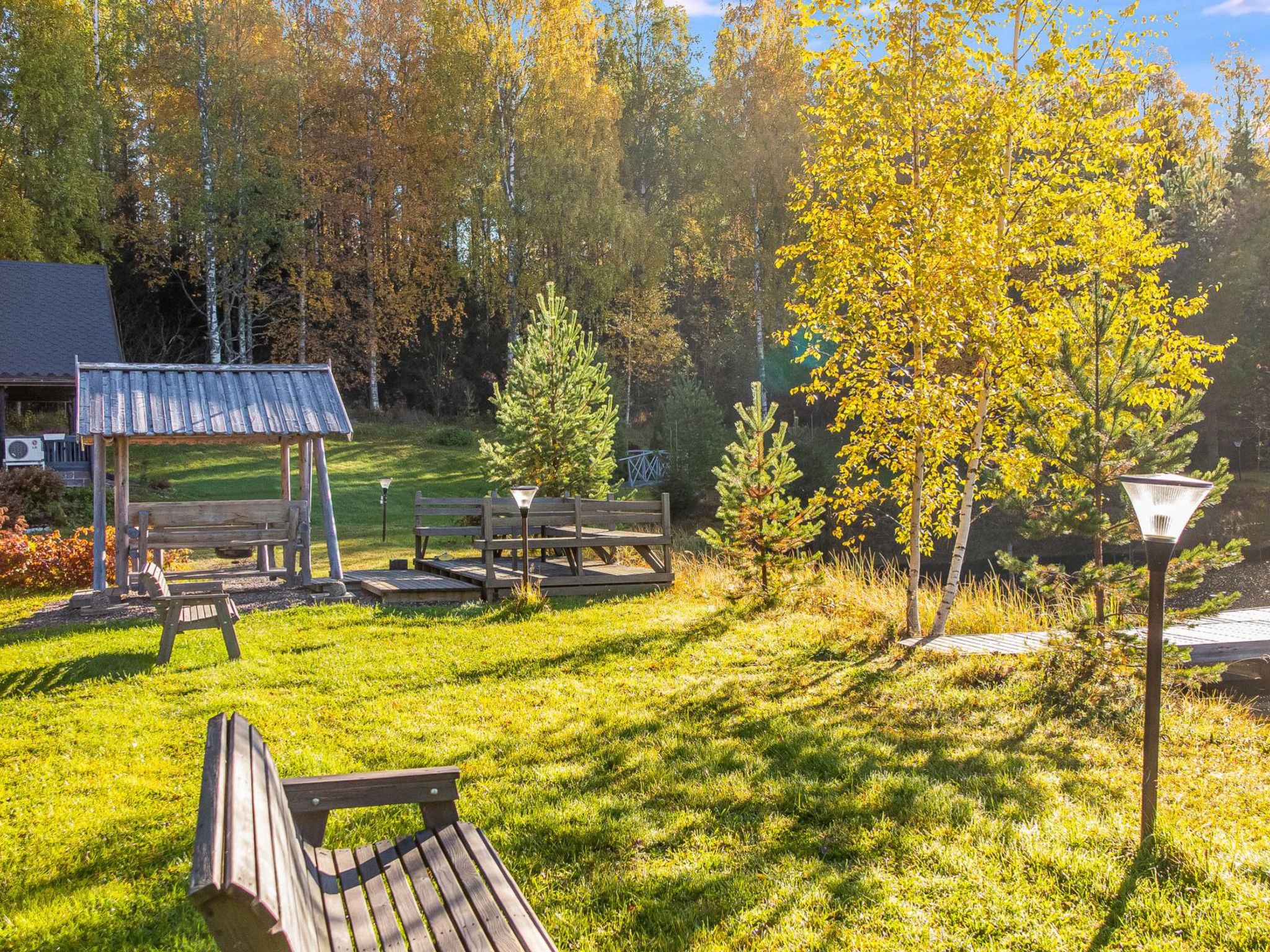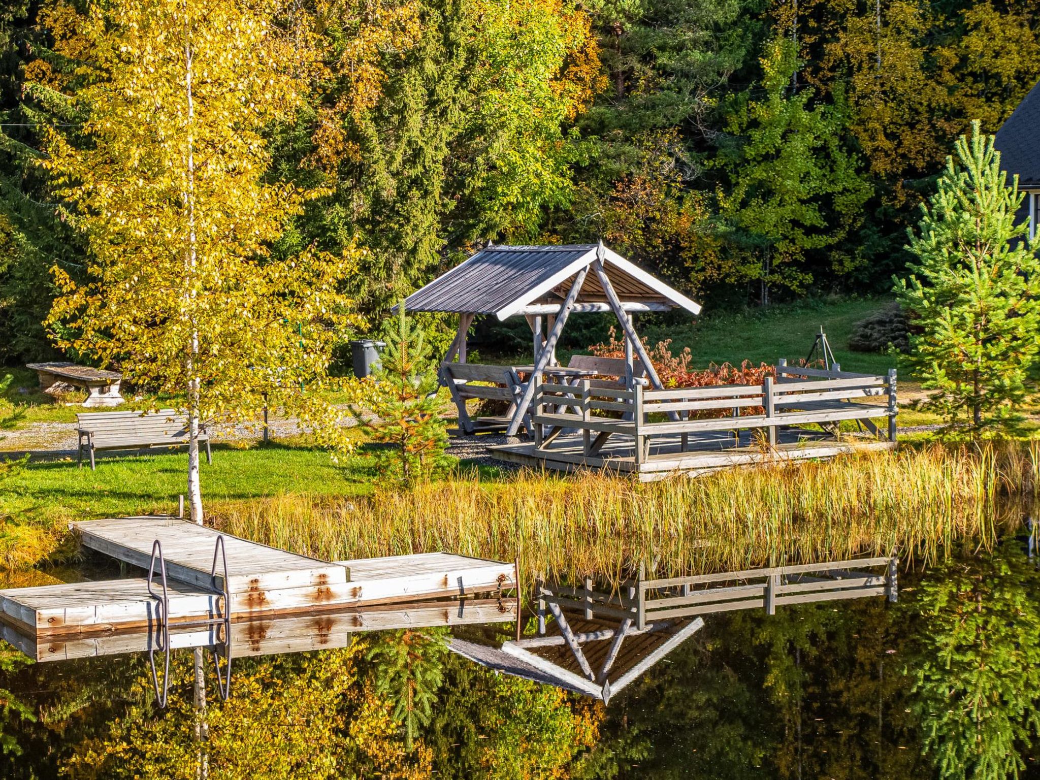 65 km nordöstlich von Kuopio, künstlicher Teich 25 m (Grösse 20 x 30 m), tiefste Stelle des Teiches ist 3 Meter, tiefes Ufer, das Wasser fliesst durch den Teich. Künstlicher Teich und Anlegestelle zur Mitbenutzung mit dem Nachbarhaus 13344. Blockhaus, Baujahr 1997, sehr grosses Wohnzimmer (ca. 60 m²), in der Mitte des Wohnzimmers befindet sich Grillbereich, weiteres Wohnzimmer mit Etagenbett, 2 Schlafsofas %3D 4 Zustellbetten, flache Schlafnische im Obergeschoss (Durchschnittshöhe 1.7 m) mit Doppelbett, niedriger Boden (Durchschnittshöhe 1.3 m) mit Doppelbett. Waschraum mit Toilette und zwei Duschen, auch separate Toilette, Sauna (Holzofen). Terrasse mit Whirlpool für 7 Personen. Der Preis beinhaltet die Nutzung des vorgewärmten Whirlpoos (1x Vorheizen und 1x Füllen mit Wasser, Buchung mindestens 1 Tag vorher). Wasserwechsel und zusätzliche Heizung kosten EURO 100/Verlängerung. Der Preis beinhaltet auch hochwertige Karaoke-Anlage und feste Internetverbindung (8 MB). Im Sommer (vom 1.5. bis 30.9.) Saunahaus am See und Grillhütte zur Mitbenutzung. Ferienhaus Kuusenkatve ist ein gemütliches Blockhaus. Es ist der perfekte Ort für Familienfeier und Hochzeiten. Der Eigentümer vermietet auch einen Partyraum, der sich auf dem Grundstück befindet. Wenn Sie auch das Nachbarhaus (13344) mieten, können dort insgesamt 16 Personen untergebracht werden. Die Hauptpisten des Skigebiets Tahkovuori 15 km, die Westpisten 6 km. Tahko Spa, Piazza, Golf alter Golfplatz 16 km. Gepflegte Loipen direkt vom Ferienhaus (Länge 10 km).