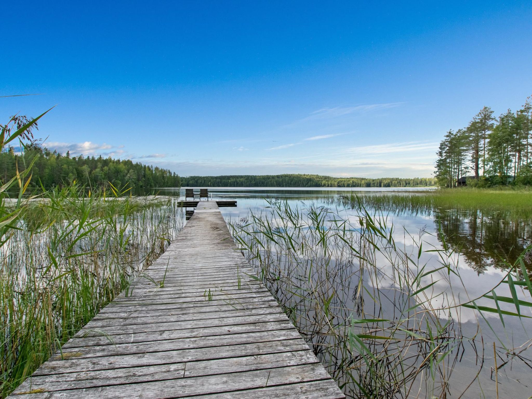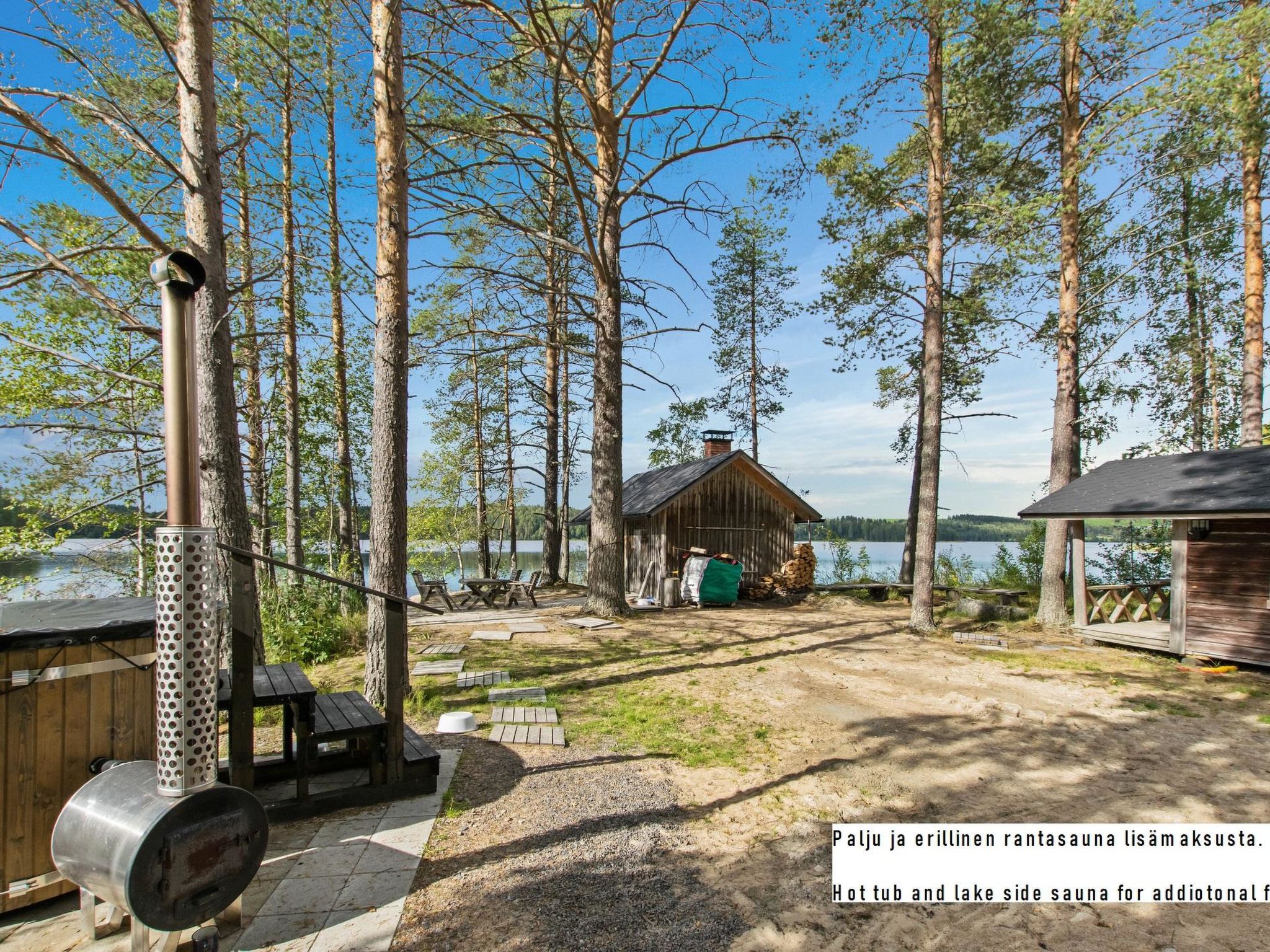 82 km nordwestlich von Jyväskylä, Iso-Löytänäjärvi 20 m (Länge 5 km, Breite 1 km), harter, sandiger, flach abfallender Strand, eigenes Boot. Blockhaus, Baujahr 1997, Wohnzimmer, Küche, Flur, Eingangshalle, Ankleideraum, Badezimmer, Bad, Schlafzimmer mit Doppelbett und überdachte Terrassen auf zwei Seiten. Im Obergeschoss Schlafzimmer mit 1 Doppelbett und 1 Bett, Hochbett und 2 Matratzen und 1 Balkon. Die Villa verfügt über mechanische Lüftung, Zentralstaubsauger, in der Küche auch Holzofen, fliessendes Wasser kommt aus einer Quelle. Der Eigentümer vermietet Sauna am See und vorgewärmten Whirlpool, gegen Aufpreis von Euro 150/eine Verwendung, Entfernung ca. 200 m vom Ferienhaus. Seesauna und Whirlpool können gemietet werden, wenn die Kunden des anderen Ferienhauses diese noch nicht gemietet haben. Die Villa befindet sich am Hang, Treppe vom Hof zum Strand. Im Hof Barbecue und Block-Holzschuppen. Zur Mitbenutzung: Gut ausgestattete Grillhütte und Unterstand, 3 km entfernt, beim markierten Wanderweg / Langlaufloipe. Leicht abfallender Strand, Lagerfeuerplatz und Boot in 1 km Entfernung vom Ferienhaus. Die Gäste von den drei gemieteten Ferienhäusern des Eigentümers können insgesamt 2 SUP-Boards mieten, Preis EURO 10/Stück/Tag. Das Skizentrum Paavorinteet 19 km, Kurhotel Summassaari 22 km, Peurunkagolf 65 km, Pyhä-Häkin Nationalpark 40 km, Julmat lammit Naturgebiet 8 km, Park und Fischerdorf 10 km, Wanhat Wehkeet Auto-Museum 25 km. Verpflegung in der Villa verfügbar.