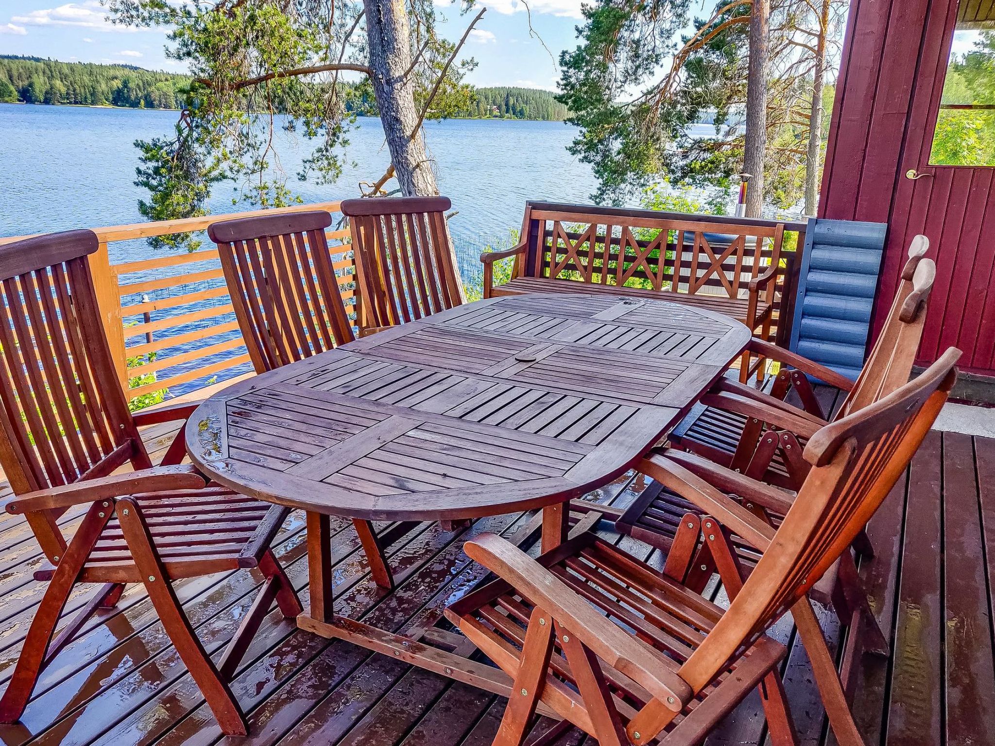 50 km nordwestlich von Jyväskylä, See Lannevesi 10 m, harter und sich sanft vertiefender Sandboden, Anlegestelle, eigenes Boot. Holzferienhaus auf zwei Etagen, Baujahr 1972, teilweise renoviert im Jahr 2017. Wohnzimmer mit Schlafcouch und drei Zustellbetten, Schlafnische mit Doppelbett und Zustellbett für 1 Person. Beachten Sie bitte, dass das Ferienhaus maximal für 6 Personen gebucht werden kann. Küche, Diele, geräumige verglaste Terrasse und Aussenterrasse. Kaminofen im Wohnzimmer. Sauna im Erdgeschoss mit Holzofen. Küche, Toilette und Sauna wurden umgebaut und 2017 wurde neuer Waschraum gebaut. Ukkola Ferienhäuser befinden sich neben den Feldern, wunderschöne Landschaft, Seeufer mit unmittelbarer Nähe, Treppen führen zur Anlegestelle. Whirlpool zu vermieten: 1-3 Tage/€ 100, 4-6 Tage/€ 150, 7 Tage/€ 200. Wenn Sie die Badewanne mieten wollen, informieren Sie den Eigentümer bitte rechtzeitig vor Beginn Ihres Urlaubs. Bezahlung vor Ort in bar. Der Eigentümer heizt die Wanne zum ersten Mal auf und gibt Ihnen weitere Anweisungen. Hinweis! Wenn es - Grad Celsius ist, kann die Aussenwanne nicht benutzt werden. Die Region Saarijärvi bietet eine breite Palette an Erholungs- und Freizeiteinrichtungen. Kurhotel Summassari und Steinzeitdorf 13 km, Tanzhalle Kukonhiekka 14 km, Reitstall 8 km, Abenteurpark Veijari 23 km, Pisten Paavonrinteet 13 km, Nationalpark Pyhä-Häkki 34 km, Flughafen Jyväskylä 40 km, Zoo Ähtäri 80 km, Peurunka 50 km.