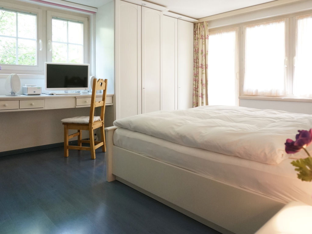 4-Zimmer-Wohnung 126 m2 im 2. Stock, Südlage. Hell, renoviert im Jahre 2021, komfortabel und schön eingerichtet: Wohnzimmer mit Schwedenofen und TV. Ausgang zum Balkon, Richtung Süden. 1 Doppelzimmer mit 1 Doppelbett (2 x 90 cm, Länge 200 cm), Bad/WC, TV und CD. Ausgang zum Balkon, Richtung Osten. 1 Doppelzimmer mit 1 Doppelbett (1 x 160 cm, Länge 200 cm). 1 Zimmer mit 1 Doppelbett (2 x 90 cm, Länge 200 cm). Offene Küche (Backofen, Geschirrspüler, 4 Induktionskochplatten, Wasserkocher, Mikrowelle, Tiefkühler, elektrische Kaffeemaschine). Dusche/WC. Heizung. Natursteinböden. Balkon, Südlage, kleiner Balkon, Ostlage. Balkonmöbel. Sehr schöne Sicht auf das Matterhorn. Zur Verfügung: Internet (Wireless LAN). Bitte beachten: Nichtraucher-Unterkunft.