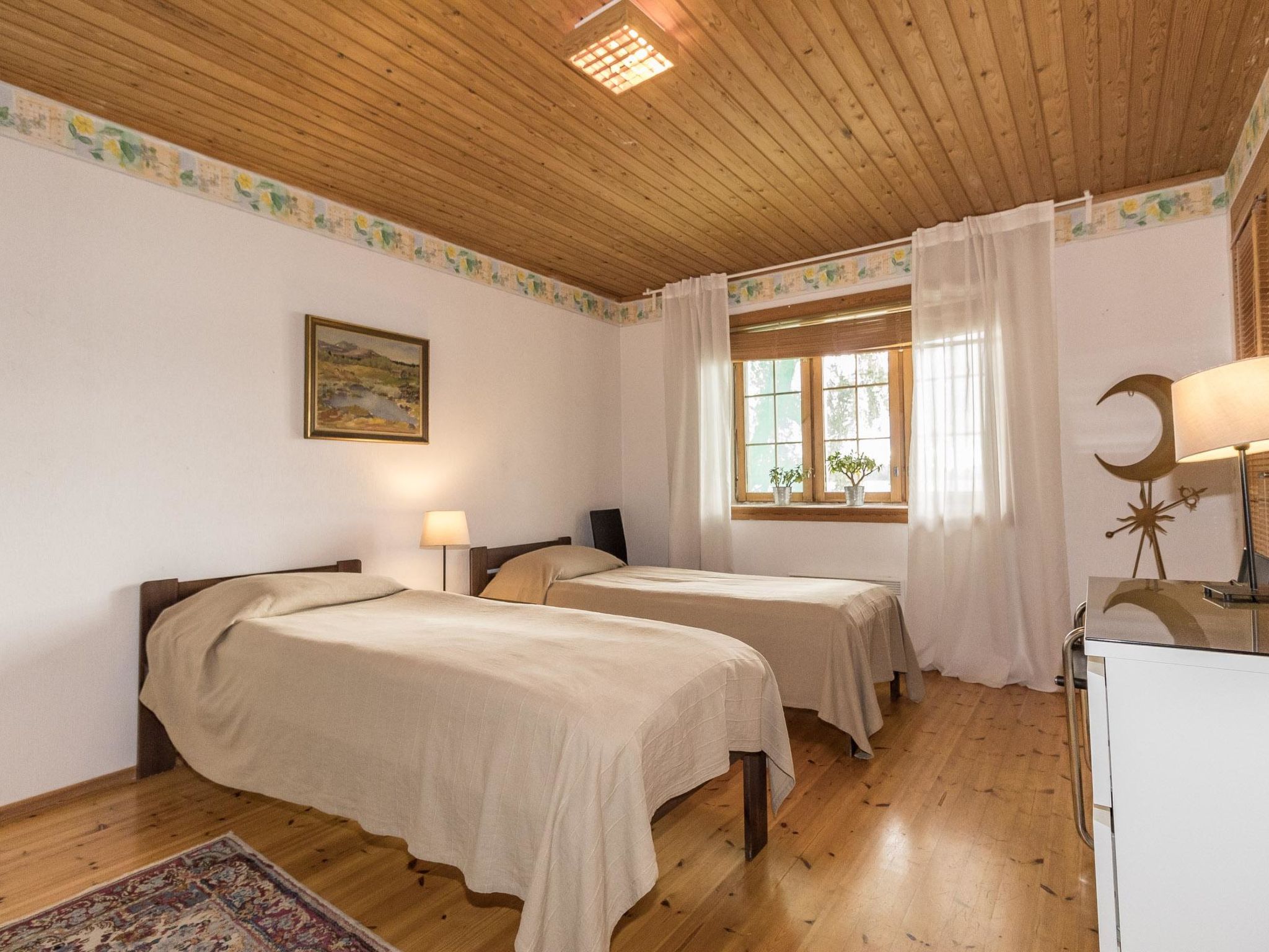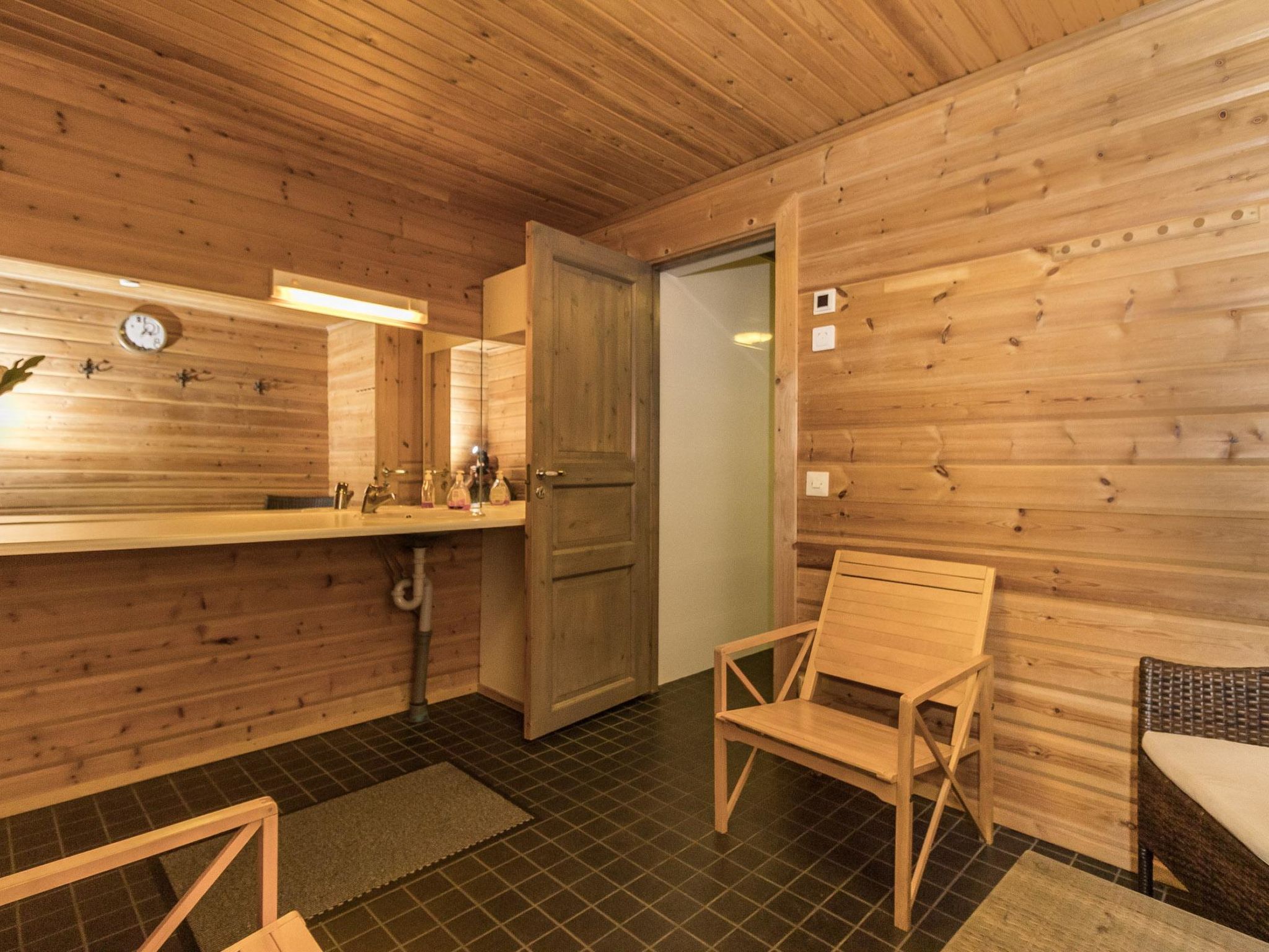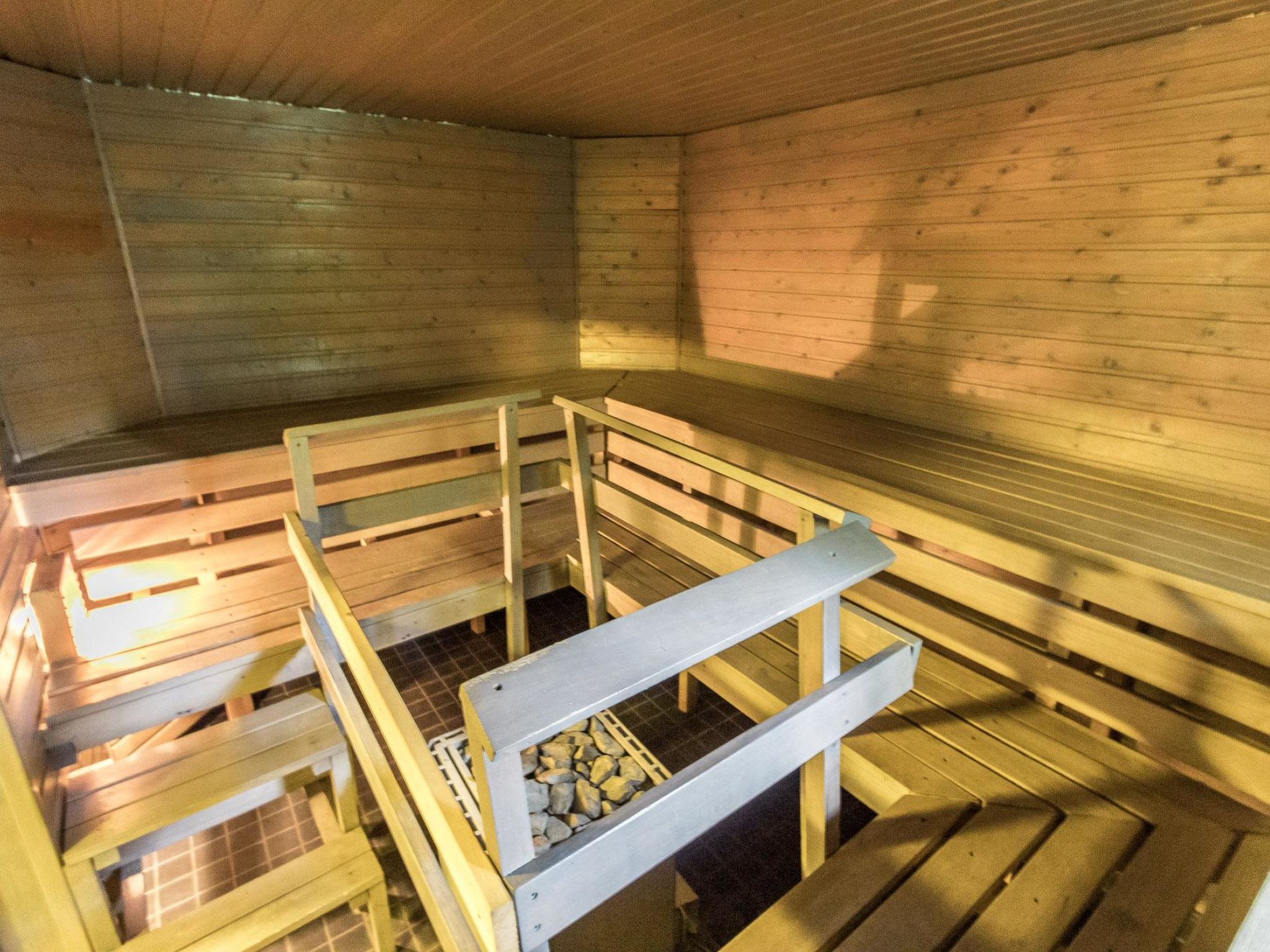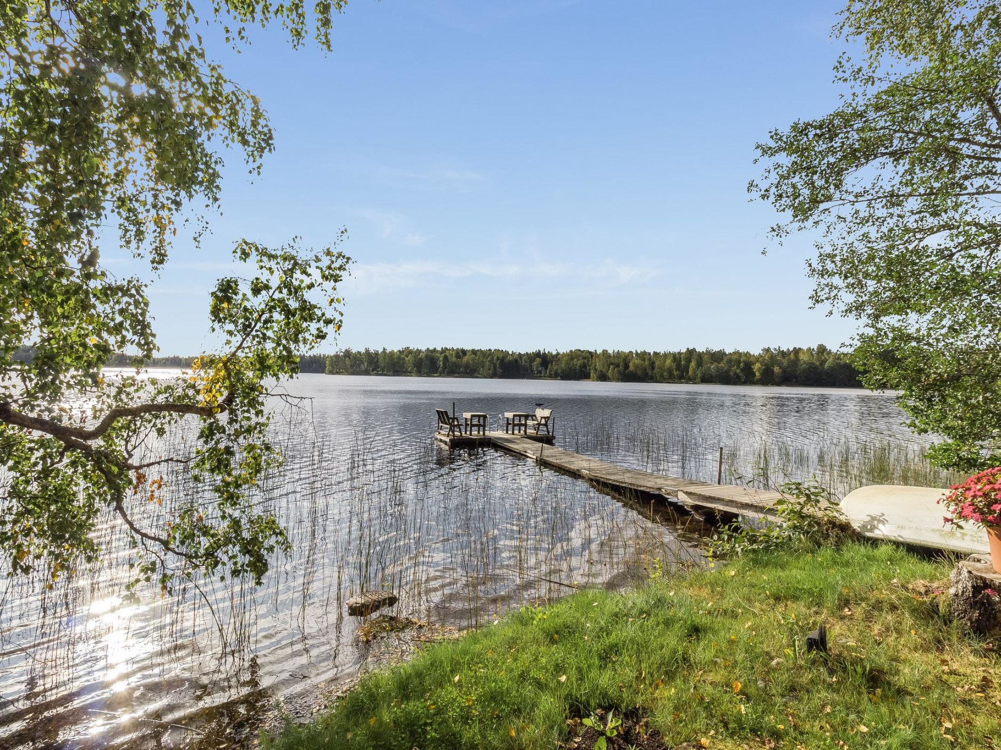 35 km westlich von Helsinki, See Tampaja 7 m (Länge 1.5 km, Breite 1.5 km), flacher und harter Sand-/Moränenboden mit Lehmboden weiter draussen, eigenes Ruderboot. Herrliches Block-Chalet, Baujahr 1991, Küche, Esszimmer, Wohnzimmer, Schlafzimmer mit Doppelbett. Obergeschoss: grosses Schlafzimmer mit Doppelbett und 2 Einzelbetten. Aufenthaltsraum mit Einzelbett und Schlafsofa/Doppelbett. Erdgeschoss: Schlafzimmer mit Doppelbett, Kaminzimmer (Heimkino), Sauna (Elektroherd), Waschraum mit 2 Duschen, Ankleide- und Hauswirtschaftsraum. Im Erdgeschoss Fussbodenheizung. Insgesamt 4 Toiletten. Im Chalet ist Internetanschluss verfügbar. Grosse Terrassenbereiche. Auf dem Grundstück gibt es auch separate Ufersauna für 6 Personen. Die Ufersauna und der Whirlpool sind nur vom 15.5.-31-10. verfügbar. Grosser, grasbewachsener Innenhof direkt am klaren See, Anlegestelle, auch flaches Wasser für Kinder vorhanden. Im Hof gibt es auch Lagergebäude für Werkzeuge des Eigentümers. Leitungswasser aus dem eigenen Brunnen wurde geprüft und ist sicher zu verwenden. Es kann jedoch gelegentlich zum Geruch kommen. Einige Flaschen mit Trinkwasser sind im Ferienhaus verfügbar. Helsinki-Sehenswürdigkeiten 35 km, Vihti-Ski 20 km, Peuramaa Ski und Golf 25 km, Serena Wasser-Vergnügungspark 30 km, Gumböle-Golf 12 km, Porkkala 30 km. Im Sommer, während der Hochsaison, ist die An-/Abreise am Freitag. Diese Unterkunft wird nur an Familien oder Firmengruppen vermietet (nicht für Jugendliche unter 25 Jahren).