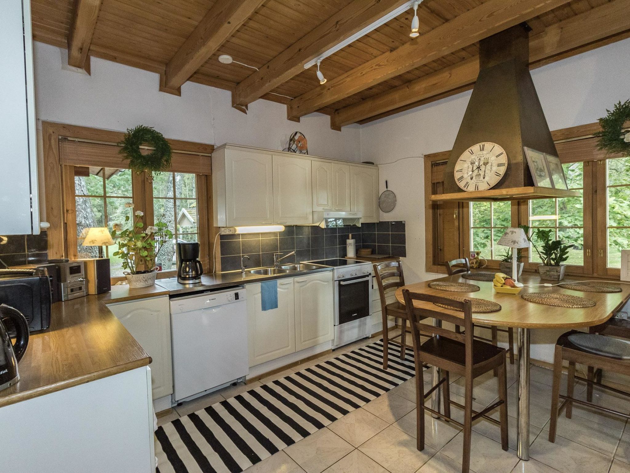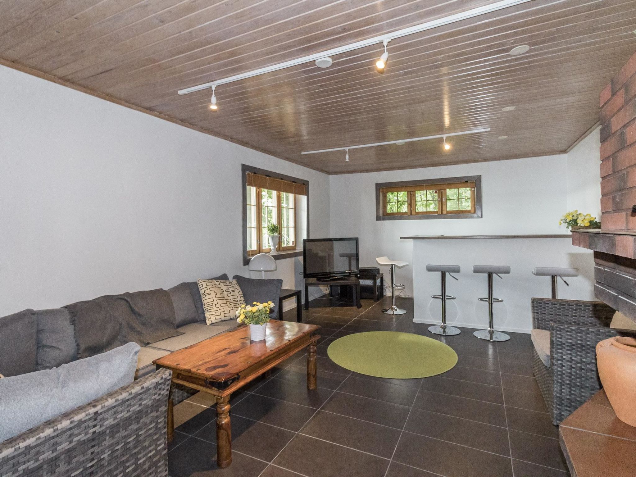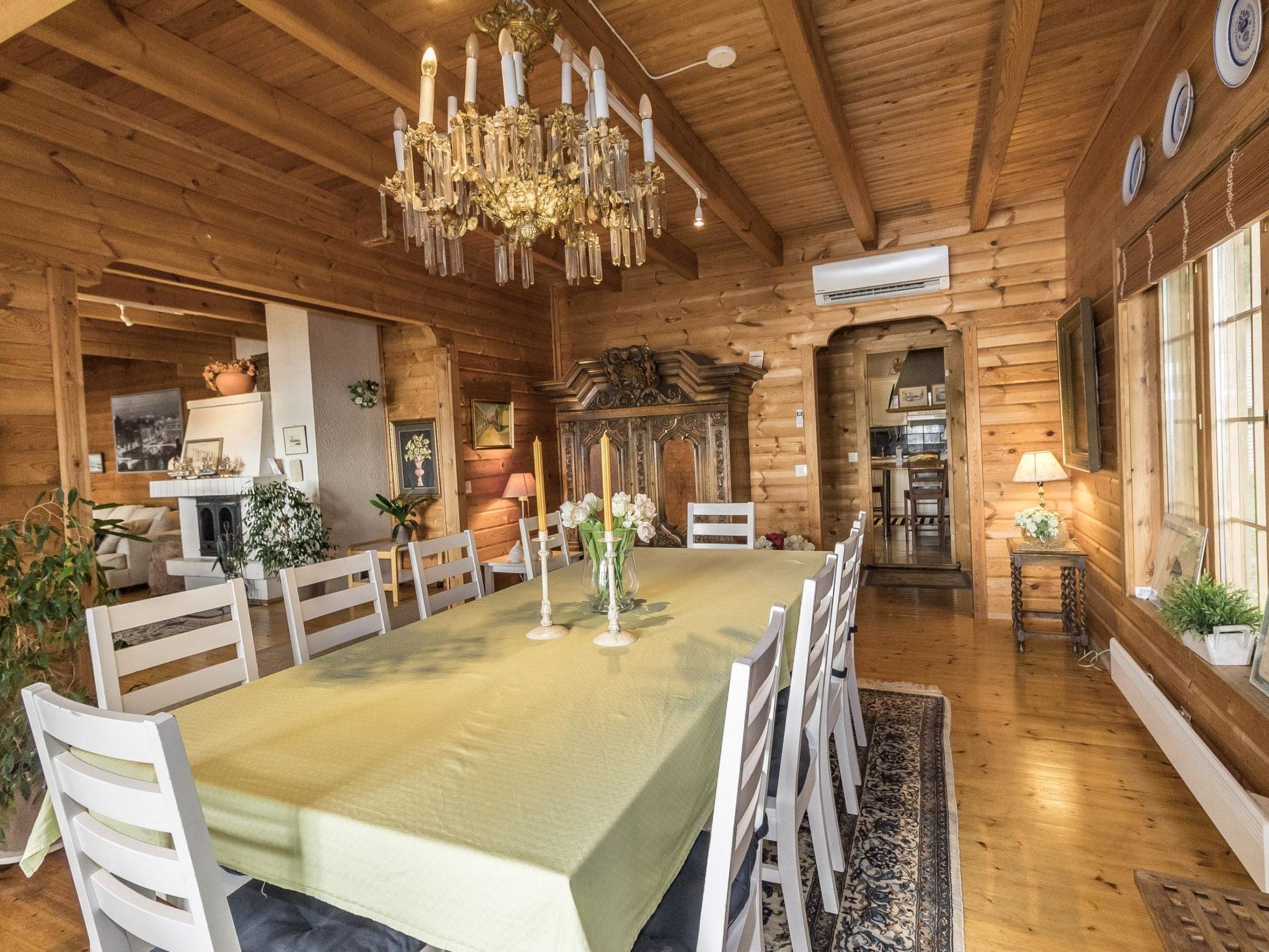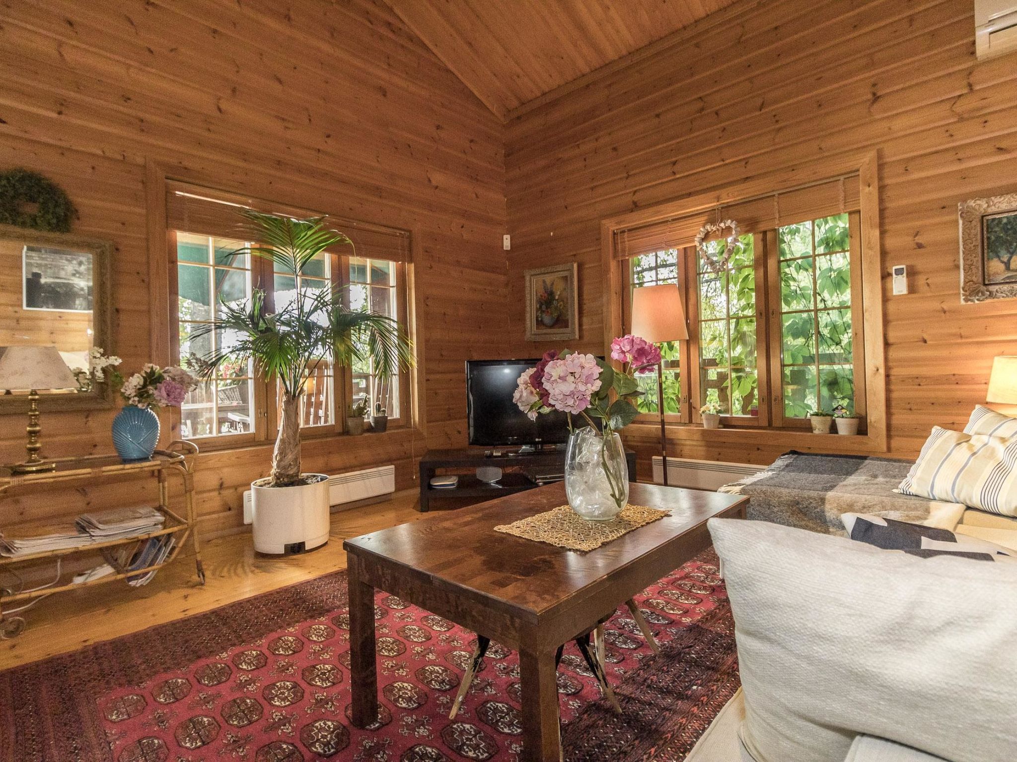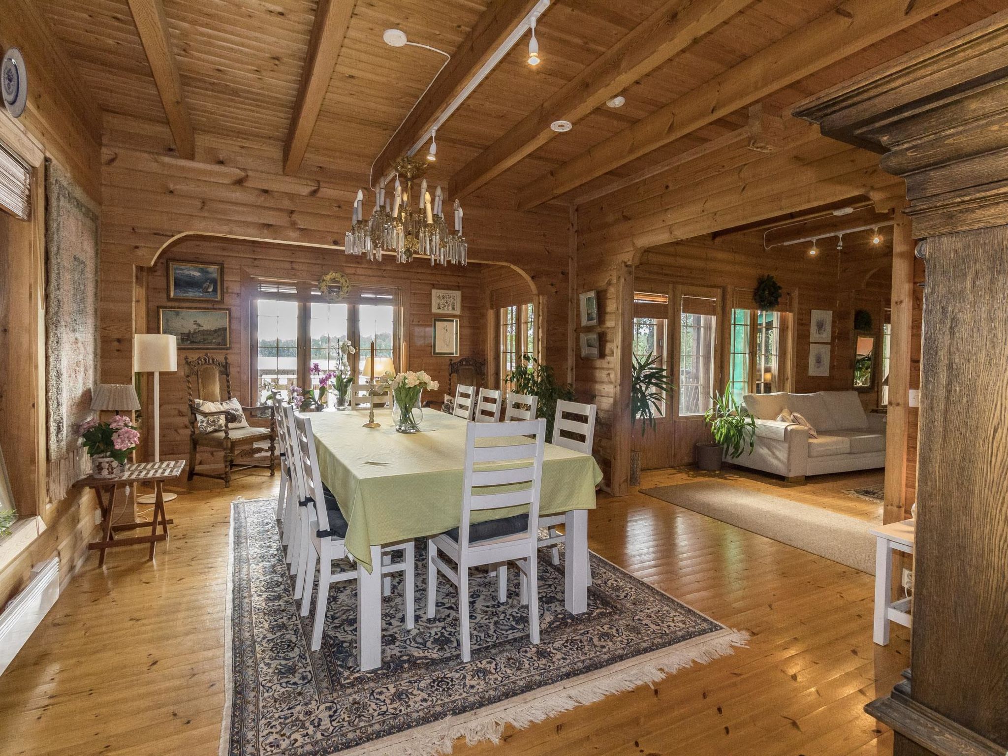 35 km westlich von Helsinki, See Tampaja 7 m (Länge 1.5 km, Breite 1.5 km), flacher und harter Sand-/Moränenboden mit Lehmboden weiter draussen, eigenes Ruderboot. Herrliches Block-Chalet, Baujahr 1991, Küche, Esszimmer, Wohnzimmer, Schlafzimmer mit Doppelbett. Obergeschoss: grosses Schlafzimmer mit Doppelbett und 2 Einzelbetten. Aufenthaltsraum mit Einzelbett und Schlafsofa/Doppelbett. Erdgeschoss: Schlafzimmer mit Doppelbett, Kaminzimmer (Heimkino), Sauna (Elektroherd), Waschraum mit 2 Duschen, Ankleide- und Hauswirtschaftsraum. Im Erdgeschoss Fussbodenheizung. Insgesamt 4 Toiletten. Im Chalet ist Internetanschluss verfügbar. Grosse Terrassenbereiche. Auf dem Grundstück gibt es auch separate Ufersauna für 6 Personen. Die Ufersauna und der Whirlpool sind nur vom 15.5.-31-10. verfügbar. Grosser, grasbewachsener Innenhof direkt am klaren See, Anlegestelle, auch flaches Wasser für Kinder vorhanden. Im Hof gibt es auch Lagergebäude für Werkzeuge des Eigentümers. Leitungswasser aus dem eigenen Brunnen wurde geprüft und ist sicher zu verwenden. Es kann jedoch gelegentlich zum Geruch kommen. Einige Flaschen mit Trinkwasser sind im Ferienhaus verfügbar. Helsinki-Sehenswürdigkeiten 35 km, Vihti-Ski 20 km, Peuramaa Ski und Golf 25 km, Serena Wasser-Vergnügungspark 30 km, Gumböle-Golf 12 km, Porkkala 30 km. Im Sommer, während der Hochsaison, ist die An-/Abreise am Freitag. Diese Unterkunft wird nur an Familien oder Firmengruppen vermietet (nicht für Jugendliche unter 25 Jahren).