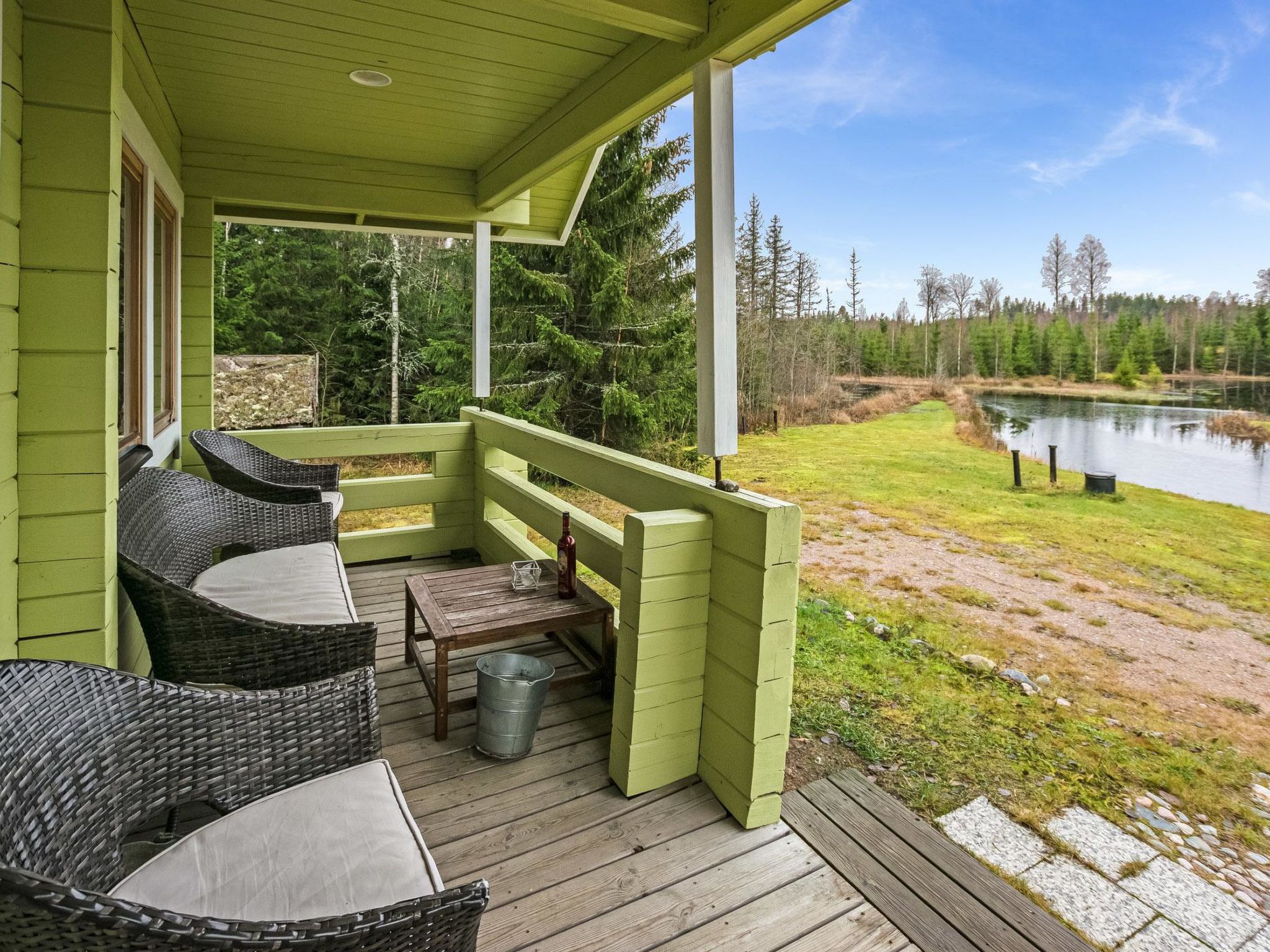 34 km südlich von Salo, Metsälampi Teich 20 m (Länge 20 m, Breite 50 m), flacher und fester Sandboden, eigenes Boot. Block-Ferienhaus, Baujahr 2009, Wohnzimmer (wärmespeichernder Kamin), kleines Schlafzimmer mit 2 Betten, im Obergeschoss 2 Betten und Schlafsofa/Bett, offene Veranda und Balkon. Separates Block-Saunagebäude (25 m²), mit Kaminzimmer (auf dem Dachboden Matratzen für 2 Personen. Zugang zum Dachboden über die Dachluke, steile Leiter), Ankleidezimmer, Waschraum (Dusche), Sauna (Holzofen). Beide Gebäude mit Fussbodenheizung. Luftwärmepumpe (Heizen und Kühlen). Blockferienhaus und Saunagebäude in ruhiger Lage, am Ufer eines eigenen künstlichen Pools. Das andere Ferienhaus des Eigentümers ist 100 m entfernt, der nächste Nachbar danach ist 300 m entfernt. Hoffläche ist eben und hell. Das Wasser zum Pool kommt aus dem Bach (kaltes Wasser). In der Nähe befinden sich 2 Unterstände und Lagerfeuerplätze. Von den Unterständen gibt es einen Wasseranschluss für Boote zum nahe gelegenen See, in dem es viele Fische gibt. Kleinwildjagdmöglichkeiten (Hinweis: Lizenzen erforderlich). TV befindet sich auf dem Dachboden. In der Nähe des Eigentümer-Hauses gibt es Haustiere. Sie können dorthin gehen, um die Tiere zu sehen (z.B. Wildtruthahn, Gänse, Hühner, Hähne, Hunde, eine Katze und ein Minischwein). Darüber hinaus gibt es nur wenige Gehminuten davon, das Bauernhaus des Eigentümers mit Schafen. Helsinki 120 km, Turku 115 km, Hanko 50 km, Raasepori Burgruine 40 km, Fiskars und Billnäs Eisenhütten (historische Stätten) 20 km, Erholungs- und Skizentrum Meri-Teijo 25 km, Påminne 25 km.