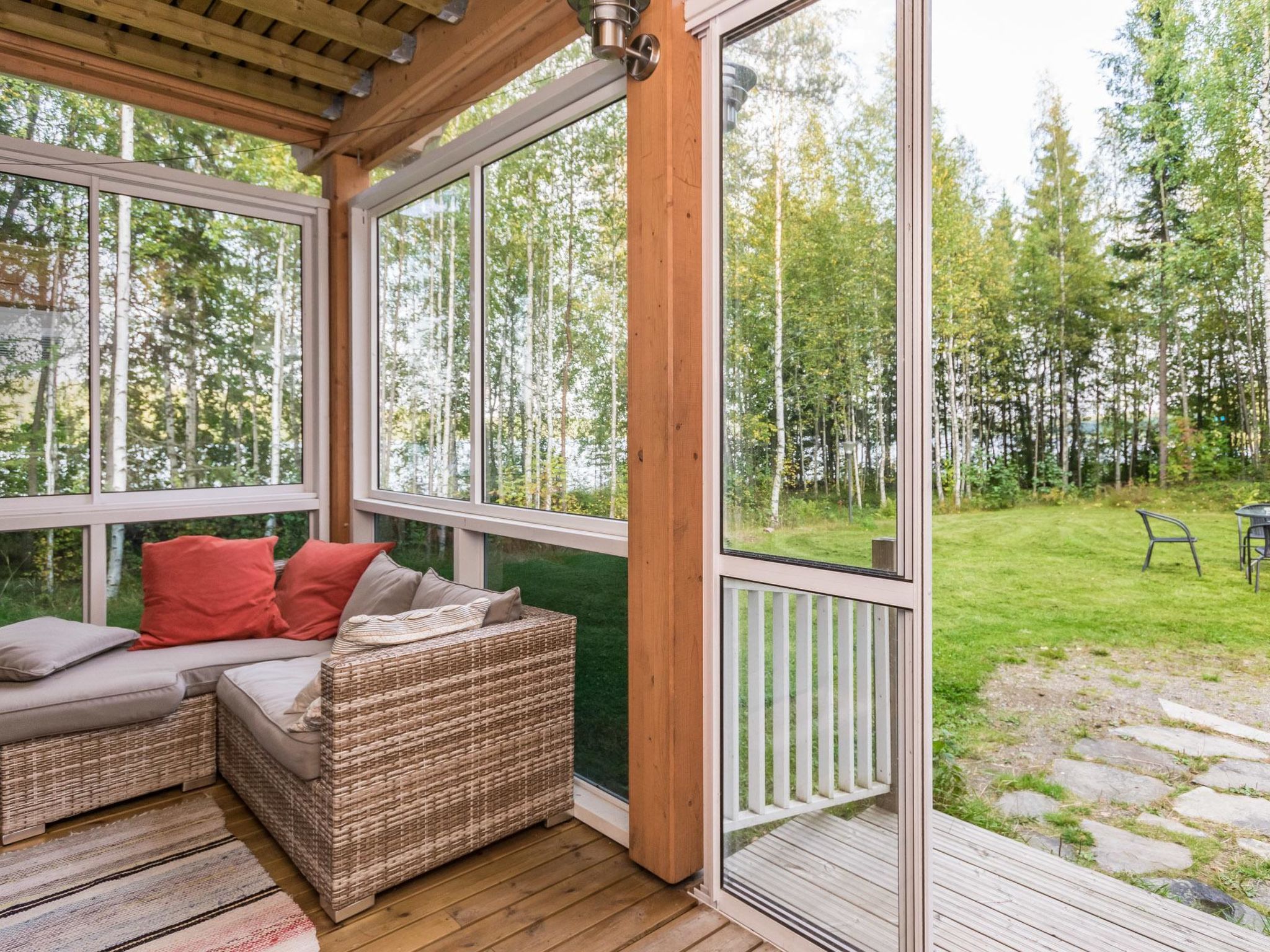 52 km nordöstlich von Mikkeli, See Iso-Kontunen 25 m (Länge 4 km, Breite 1 km), flacher und sanft abfallender, sandiger Kiesgrund, Anlegestelle und Ruderboot. Blockhaus, Baujahr 2015, Erdgeschoss: Wohnküche, kleine Schlafnische mit Schiebetür (3.5 m²) und 1 Bett für eine Person (120 cm breit), Sauna, Duschraum (mit Toilette), Ankleideraum, Eingangshalle, verglaste Terrasse 20 m². Obergeschoss: Schlafzimmer (Schiebetür, 6 m², Grundfläche 10 m²) mit Doppelbett für zwei (Breite 140 m), Lobby mit 2 Betten, Toilette, Balkon. Es gibt 2 Fernseher und 1 Sofa im Obergeschoss. Fischräucherbox. Grillhütte. Holzschuppen. Der Eigentümer vermietet auf Anfrage Aussenborder (6 PS). Wi-Fi Internetverbindung (20 EURO). Blockferienhaus am See Iso-Kontunen. Ruhiges Grundstück, flacher Rasen, Bäume herum. Lokale Nachbarn sind alle Ferienhäuser des gleichen Eigentümers (12550, 6606, 6607). Jedes Ferienhaus hat eigenen Strand und Hof. In der Umgebung gibt es einen Spielplatz für Kinder. Schneemobilweg 0.1 km, Rapio-Mühle (Mühlenladen und Café, Freiluft-Sommertheater) 5 km, Oravareitti-Kajakstrecke 10 km, Hiidenmaa-Naturlehrpfade 10 km, Juva 11 km, HASAMÄKI Slalompiste 20 km, Sulkava 27 km, Rantasalmi 28 km, Savonlinna 51 km, Mikkeli 52 km, Imatra 129 km, Helsinki 283 km.