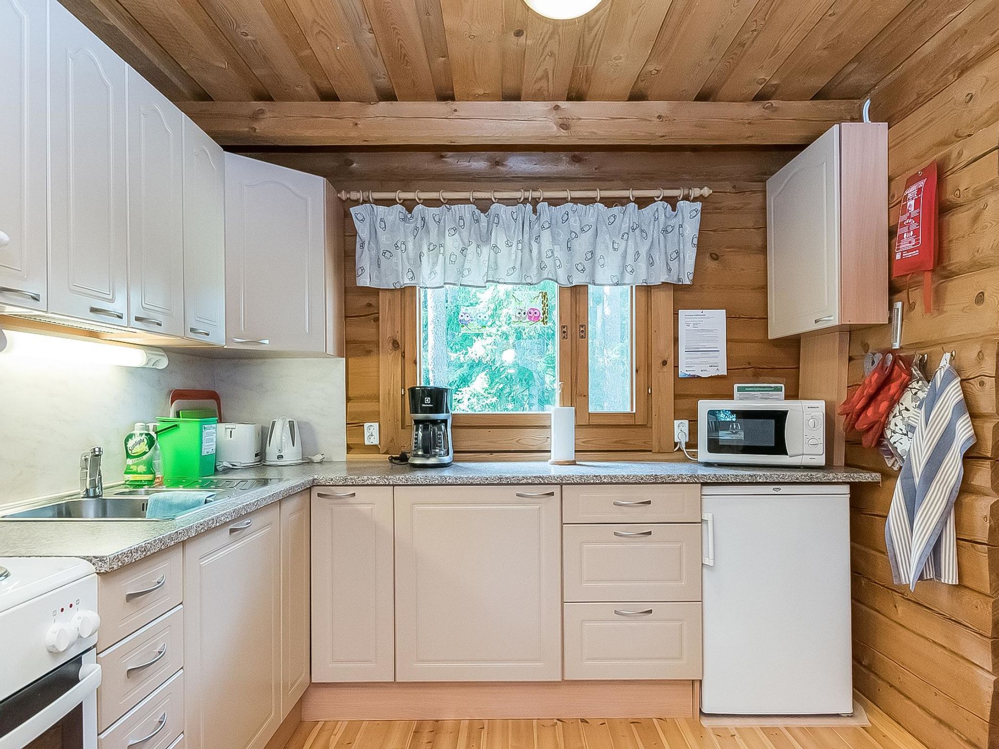 67 km südlich von Mikkeli, See Sarkavesi 25 m (Länge 9 km, Breite 1 km), hartes und sanft sich vertiefendes Sandufer, eigenes Boot. Blockferienhaus, Baujahr 1992, renoviert 2011, Wohnküche, 2 Schlafnischen mit je 2 Betten, Sauna, Waschraum mit WC, Terrasse (20 m²). Im Ferienhaus ist WLAN-Internetzugang. Der Hofbereich ist in natürlichem Zustand, zwischen Bäumen. Lagerfeuerplatz auf dem Hof. Beleuchteter Pfad und Stufen zum Steg am Ufer. Schlafnische haben Vorhänge über die Türöffnung. Handliches, gepflegtes Ferienhaus für 4 Personen. Kinderbett auf Anfrage. Fahrräder zur Verfügung. Im Sommer gibt es einen zusätzlichen Kühlschrank (im Lager). Mietbares Kanu für 3 Personen. Tyryn Viinitila (finnischer Weinberg) 4 km, Kuvala Schlachthof Kuvala 2 km, Kunstzentrum Salmela (in Mäntyharju) 18 km, Ferienzentrum Orilampi 16 km, Nationalpark Repovesi 25 km, Vola-Golf 35 km, Vergnügungspark Verla 40 km, Tykkimäki 60 km.