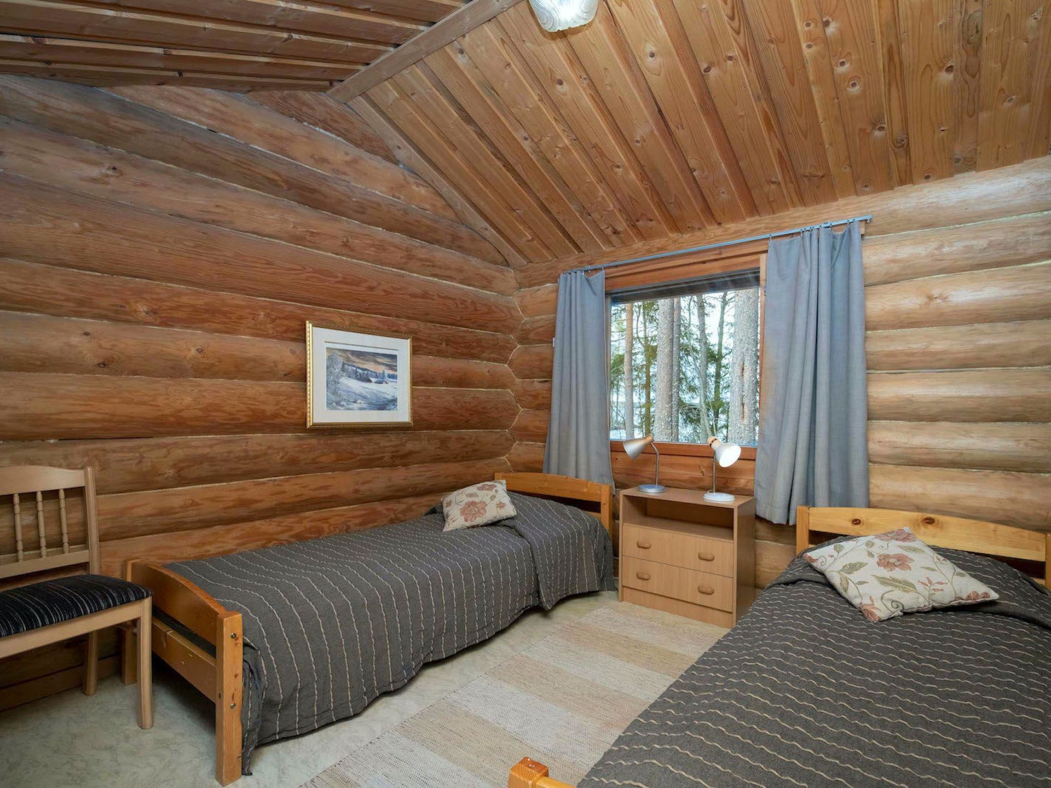 21 km nordöstlich von Mikkeli. See Saarijärvi 15 m (Länge 8 km, Breite 3 km), relativ flaches Wasser, fester Sandboden. Eigenes Boot. Blockhaus, Baujahr 1992, Wohnküche, Schlafzimmer mit 2 Betten, Schlafzimmer mit Doppelbett, Ankleideraum, Waschraum, Sauna, offene Veranda. Obergeschoss: Schlafzimmer mit 3 Betten, WC. Aussensteckdose fürs Auto. Tennisplatz und andere Spielfelder werden mit anderen Ferienhäusern geteilt. Bäckerei/Restaurant 7 km. Internet (1 MB). Heimkino (DVD/CD, Radio, TV-Stimme, 3.5 mm AUX). Luftwärmepumpe. Zu mieten: Fatbikes, SUP-Board, Skiausrüstung, Skates, Schneeschuhe. Der Angelschein für das Angeln mit mehr als einer Rute ist im Preis inbegriffen. Alle Fischer im Alter von 18 bis 64 Jahren müssen jedoch eine Gebühr für das Fischereimanagement bezahlen (bitte, siehe: http://www.ahven.net/english).