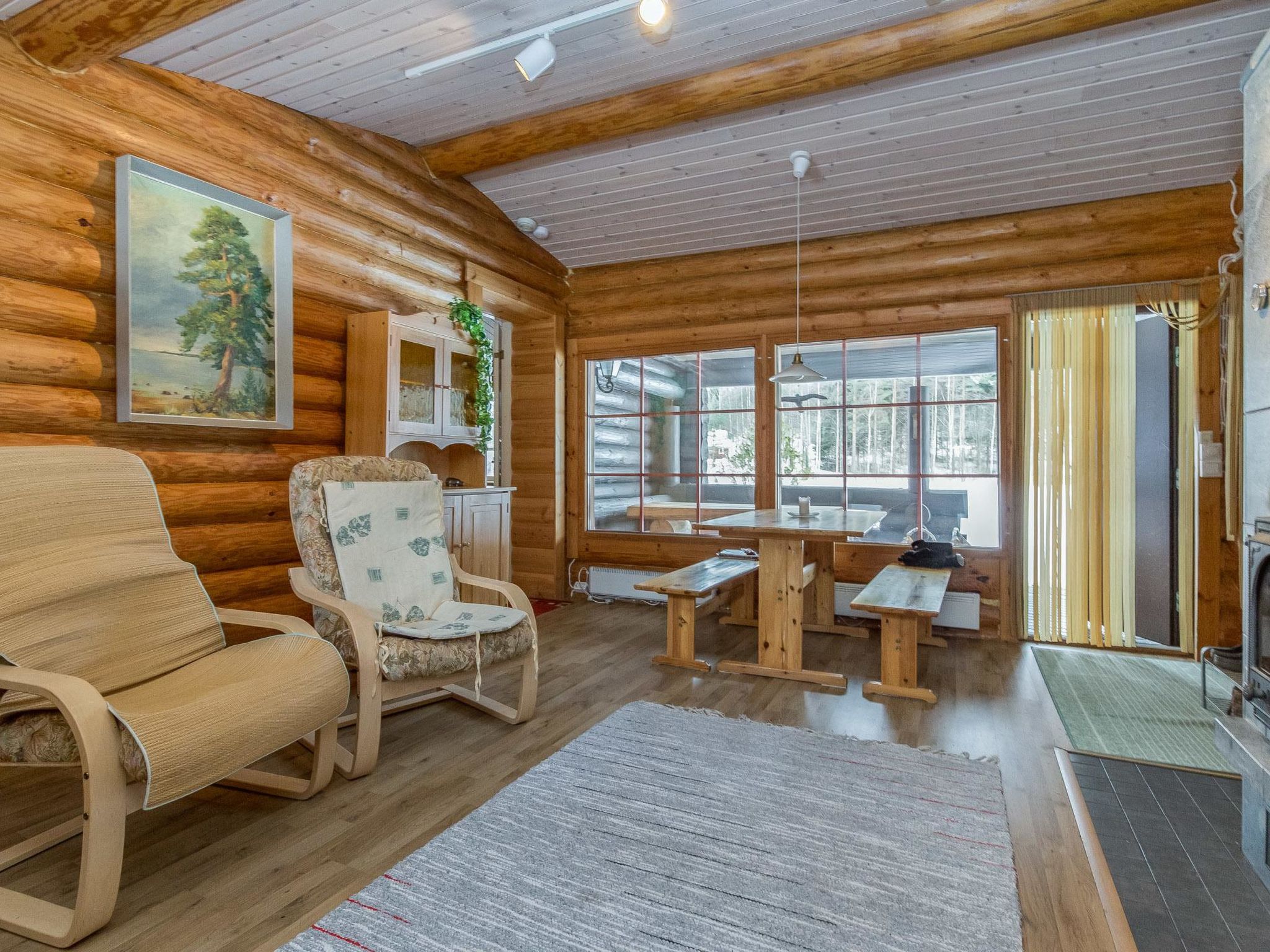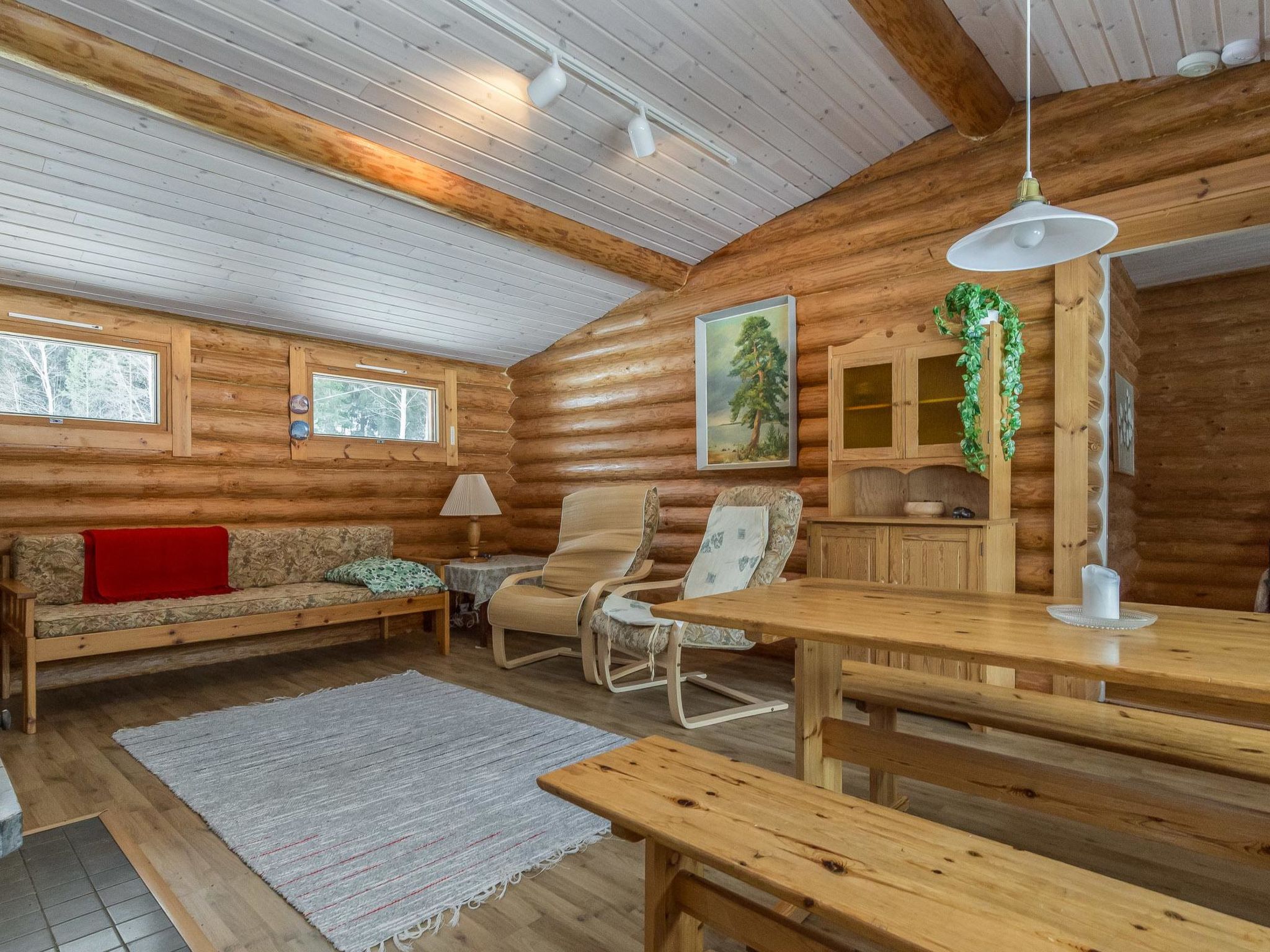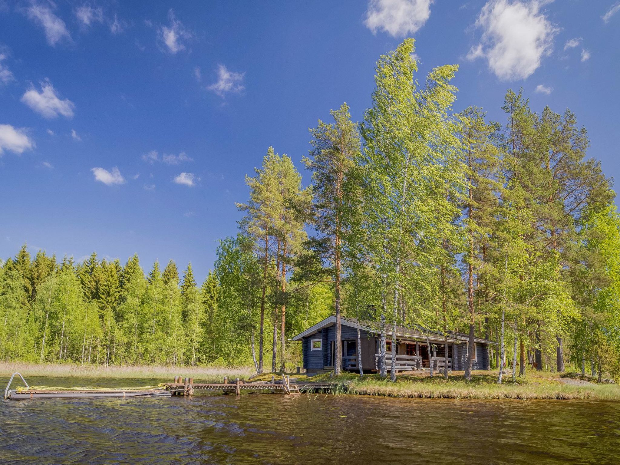 26 km östlich von Mikkeli, See Luorueenlampi 5 m (Länge 800 m, Breite 100 m), harter Sandboden, Anlegestelle und eigenes Boot. Blockhaus, Baujahr 1977, ausgebaut 1993, renoviert 2013, Küchenzeile, Wohnzimmer mit ausziehbarem Bett (130 cm breites Bett, wenn ausgebreitet, dann gibt es Platz für zwei Personen), Schlafzimmer (12.5 m²) mit Doppelbett, weiteres Schlafzimmer (10 m²) mit ausziehbarem Sofa (wenn ausgebreitet, dann gibt es Platz für zwei Personen), Waschraum mit Dusche und WC, überdachte Terrasse. Weiterer Eingang zum Schlafzimmer und Waschraum befindet sich im ersten Schlafzimmer. Sauna und Umkleidekabine, Holzofen und Dusche in der Sauna. Eingang in die Sauna ist von der Terrasse. Die Entfernung zum Wasser beträgt 5 m von der Saunaterrasse. Lagerfeuer und Unterstand sind 50 m entfernt. Aurinkoniemi ist eine ideale Miethütte, zum Beispiel für eine Familie mit Kindern. Die Hütte befindet sich auf einem schönen Grundstück, das sich auf der Halbinsel befindet und von Wasser umgeben ist. Auf dem sonnigen Grundstück gibt es viel Platz für viele Arten von Spielen im Freien. Alle Dienstleistungen sind auch in der Nähe. Anttola 2 km, Anttolanhovi 4 km, Weinbauernhof Ollinmäki 7 km, Ski Tornimäki 21 km, Neitvuori 24 km, Annilagolf 25 km, Mikkeli 26 km, Puumala 49 km, Viipuri 173 km, Helsinki 254 km.