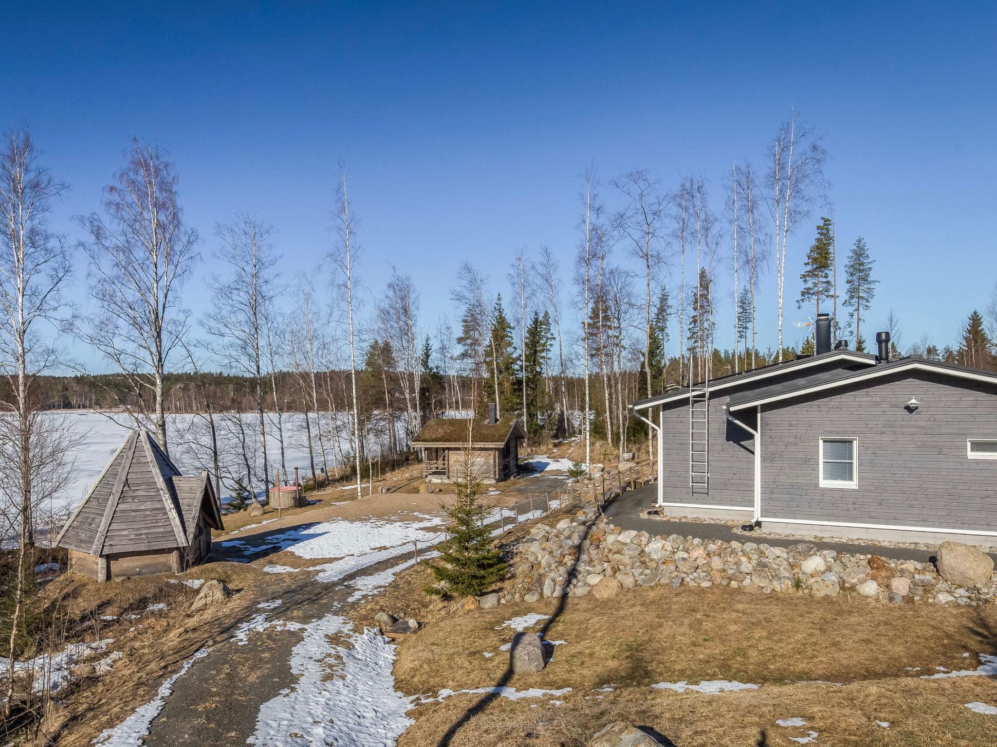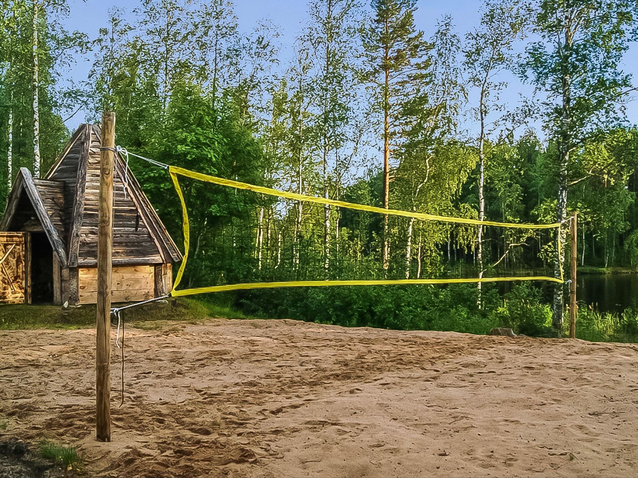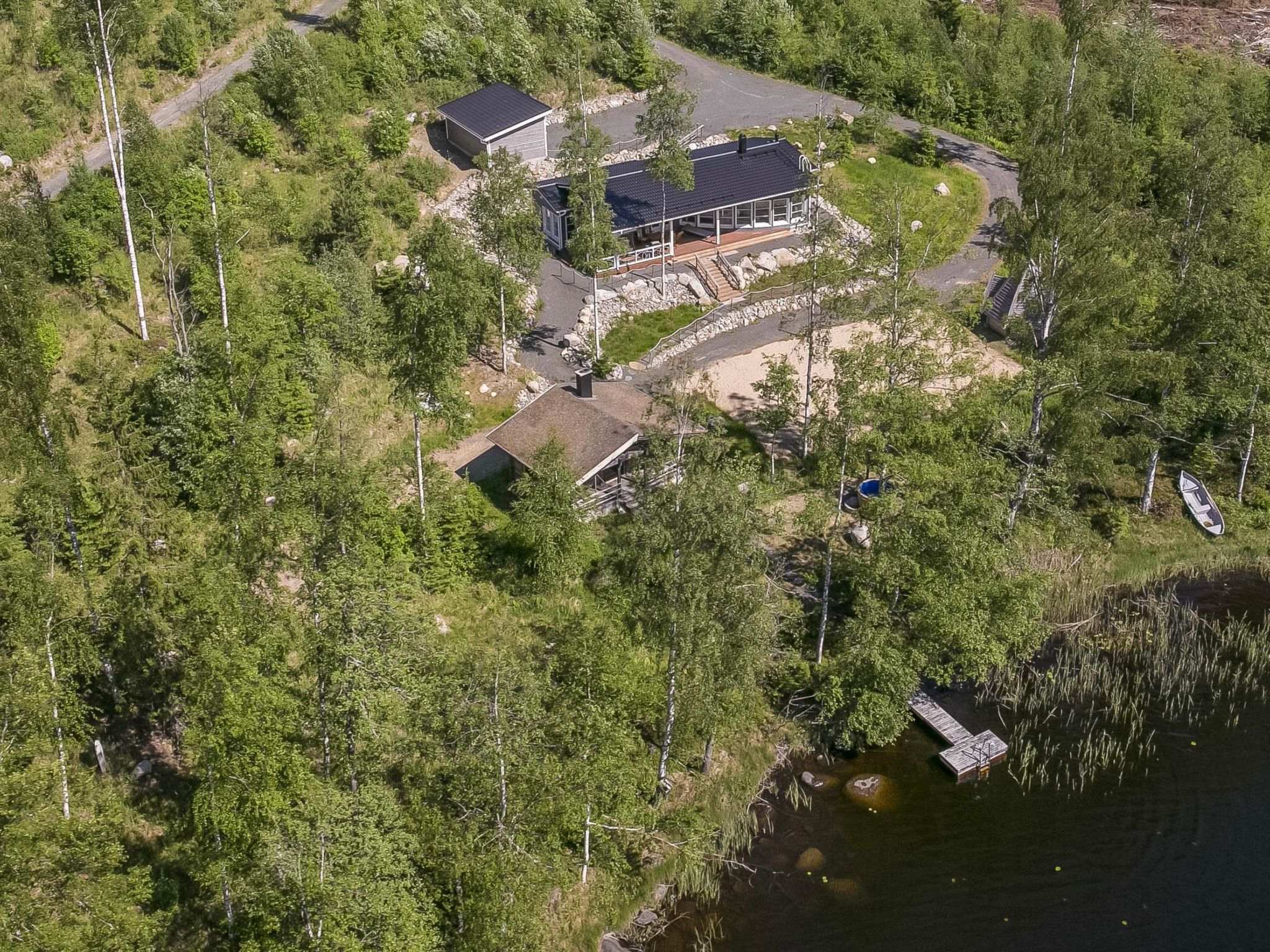 58 km nordöstlich von Heinola, See Iso Aitjärvi 20 m (Länge 0.7 km, Breite 0.7 km), teils geschliffener, weicher Kies-/Steinboden, Anlegestelle und Ruderboot. Holzvilla, Baujahr 2014, grosse Wohnküche mit zwei Zustellbetten (Schlafsofa), zwei Schlafzimmer (10 m²) mit je zwei Betten, Schlafsofa für zwei im Saunagebäude, zwei separate Toiletten, Waschraum und Sauna (elektrischer Saunaofen), grosse überdachte Terrasse. Seesauna, Baujahr 2014, Sauna-Aufenthaltsraum und Sauna mit Holzofen, Rasendach. Im Sommer kommt das Wasser mit der Pumpe in die Sauna. Im Winter muss das Wasser mit einem Eimer in die Sauna gebracht werden. 100 Mbit/s Glasfaserverbindung, WLAN, vier Fahrräder verfügbar. Es gibt Carport für zwei Autos, Beachvolleyballfeld und Kochhütte im Hof. Auch Badewanne kann gemietet werden. Der Preis beträgt € 70, wenn die Badewanne vorgefüllt ist oder € 150, wenn sie vorgewärmt ist. Die Miete für die Badewanne wird direkt an den Eigentümer gezahlt. Kontaktieren Sie bitte den Eigentümer im Voraus. Riemukaari ist eine moderne und hochwertige Mietvilla, die sich ideal für Familien und Gruppen eignet. Auf einem grossen Hof können viele Arten von Urlaubsaktivitäten ausgeübt werden. Sie können dann in der Badewanne, in der Kochhütte oder in der Sauna den Tag schön ausklinken lassen. Gute Angelgewässer und Gebiete zum Sammeln von Beeren und Pilzen in der Nähe. Die andere Villa 14294 des Eigentümers ist der einzige nächste Nachbar, die Entfernung beträgt 70 Meter. Pertunmaa 13 km, Skipisten in Pertunmaa (Länge 10 km). Kuortti 24 km, Mäntyharju 27 km (unter anderem Kunstzentrum Salmela), Mikkeli 54 km, Heinola 58 km, Repovesi Nationalpark 70 km, Lappeenranta 125 km, Helsinki 196 km.