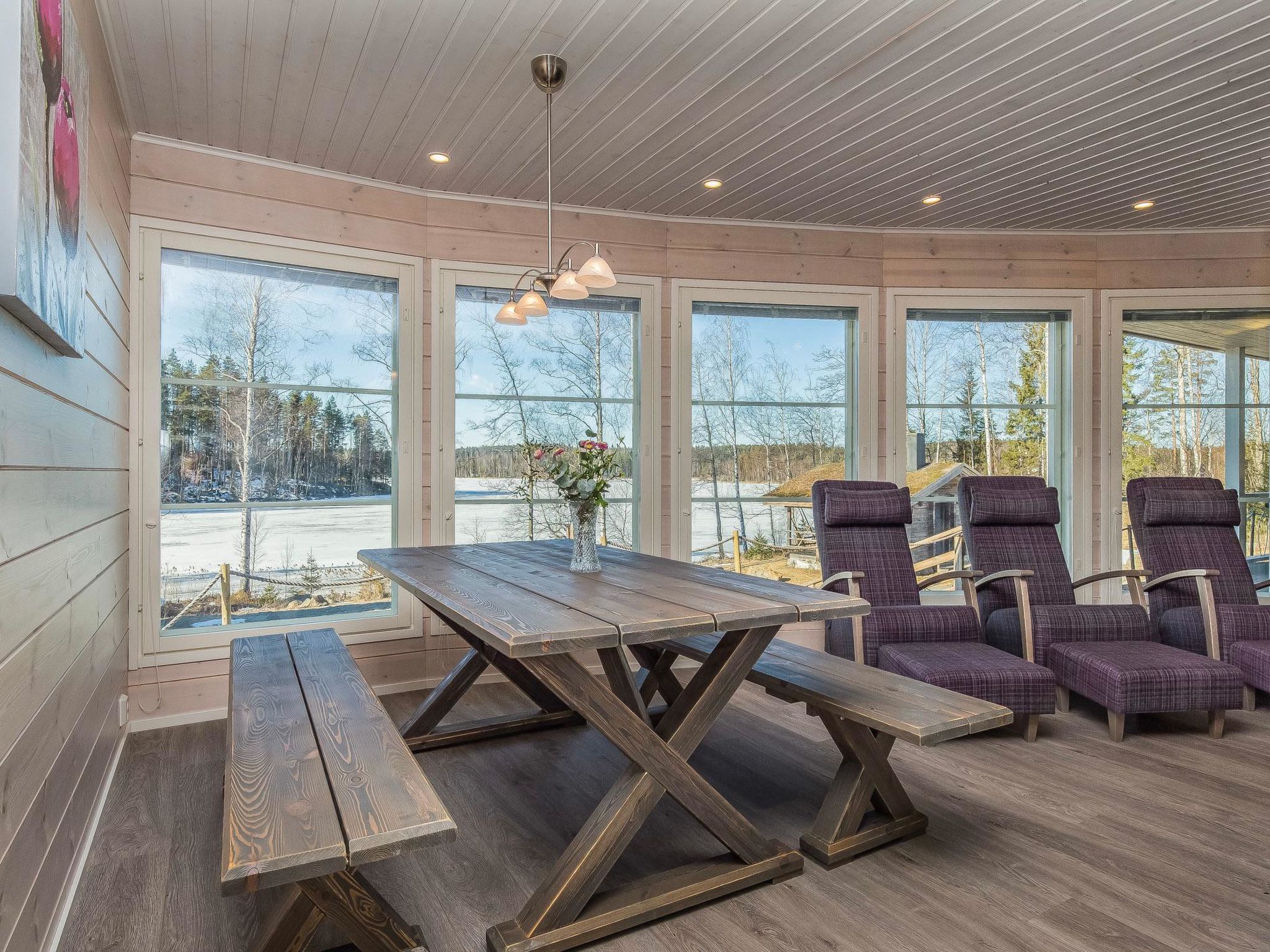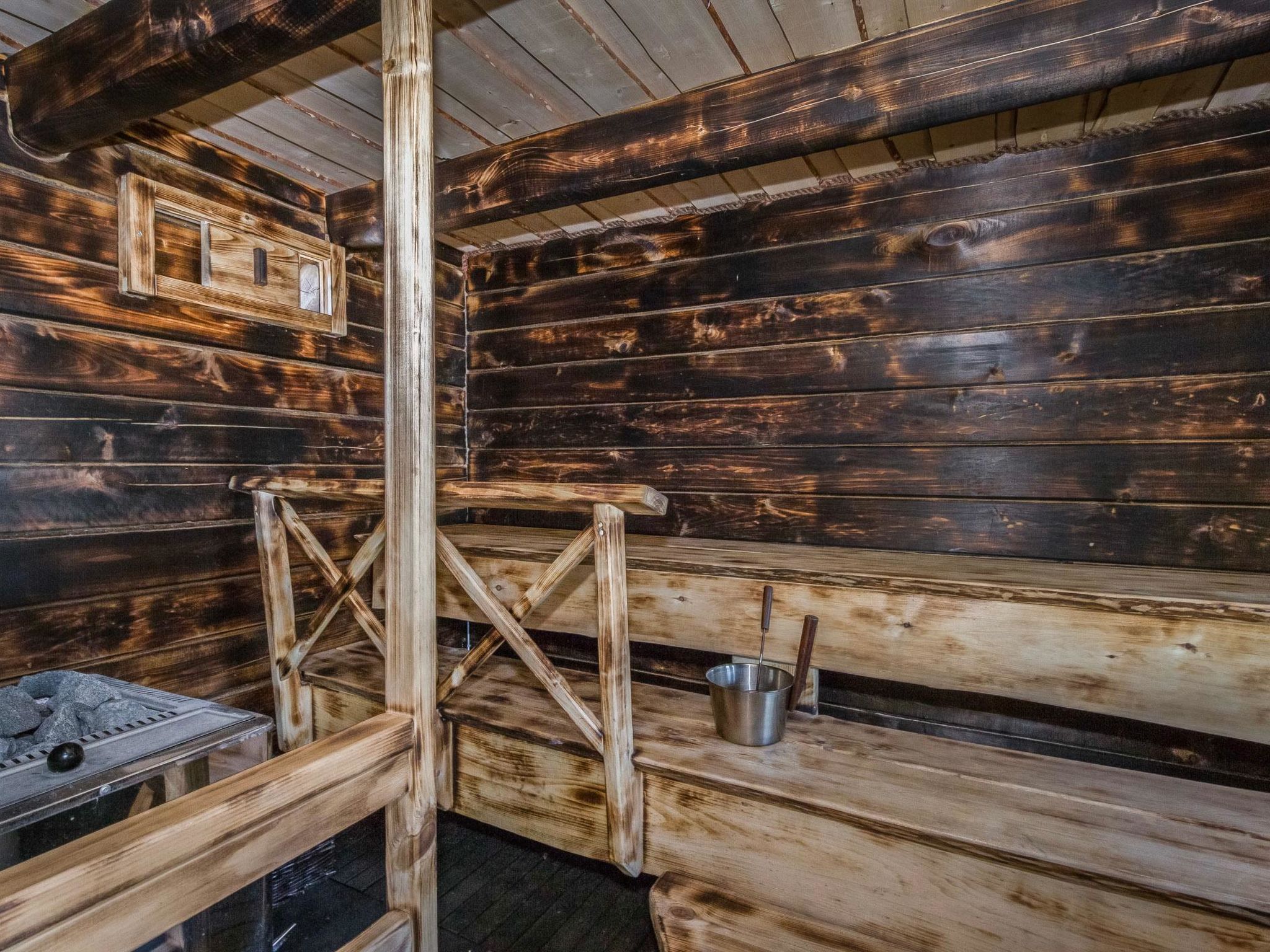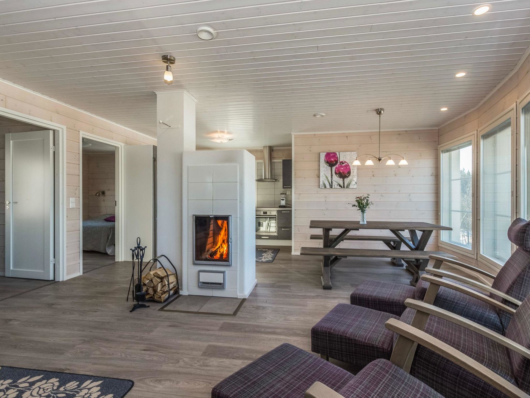 58 km nordöstlich von Heinola, See Iso Aitjärvi 20 m (Länge 0.7 km, Breite 0.7 km), teils geschliffener, weicher Kies-/Steinboden, Anlegestelle und Ruderboot. Holzvilla, Baujahr 2014, grosse Wohnküche mit zwei Zustellbetten (Schlafsofa), zwei Schlafzimmer (10 m²) mit je zwei Betten, Schlafsofa für zwei im Saunagebäude, zwei separate Toiletten, Waschraum und Sauna (elektrischer Saunaofen), grosse überdachte Terrasse. Seesauna, Baujahr 2014, Sauna-Aufenthaltsraum und Sauna mit Holzofen, Rasendach. Im Sommer kommt das Wasser mit der Pumpe in die Sauna. Im Winter muss das Wasser mit einem Eimer in die Sauna gebracht werden. 100 Mbit/s Glasfaserverbindung, WLAN, vier Fahrräder verfügbar. Es gibt Carport für zwei Autos, Beachvolleyballfeld und Kochhütte im Hof. Auch Badewanne kann gemietet werden. Der Preis beträgt € 70, wenn die Badewanne vorgefüllt ist oder € 150, wenn sie vorgewärmt ist. Die Miete für die Badewanne wird direkt an den Eigentümer gezahlt. Kontaktieren Sie bitte den Eigentümer im Voraus. Riemukaari ist eine moderne und hochwertige Mietvilla, die sich ideal für Familien und Gruppen eignet. Auf einem grossen Hof können viele Arten von Urlaubsaktivitäten ausgeübt werden. Sie können dann in der Badewanne, in der Kochhütte oder in der Sauna den Tag schön ausklinken lassen. Gute Angelgewässer und Gebiete zum Sammeln von Beeren und Pilzen in der Nähe. Die andere Villa 14294 des Eigentümers ist der einzige nächste Nachbar, die Entfernung beträgt 70 Meter. Pertunmaa 13 km, Skipisten in Pertunmaa (Länge 10 km). Kuortti 24 km, Mäntyharju 27 km (unter anderem Kunstzentrum Salmela), Mikkeli 54 km, Heinola 58 km, Repovesi Nationalpark 70 km, Lappeenranta 125 km, Helsinki 196 km.