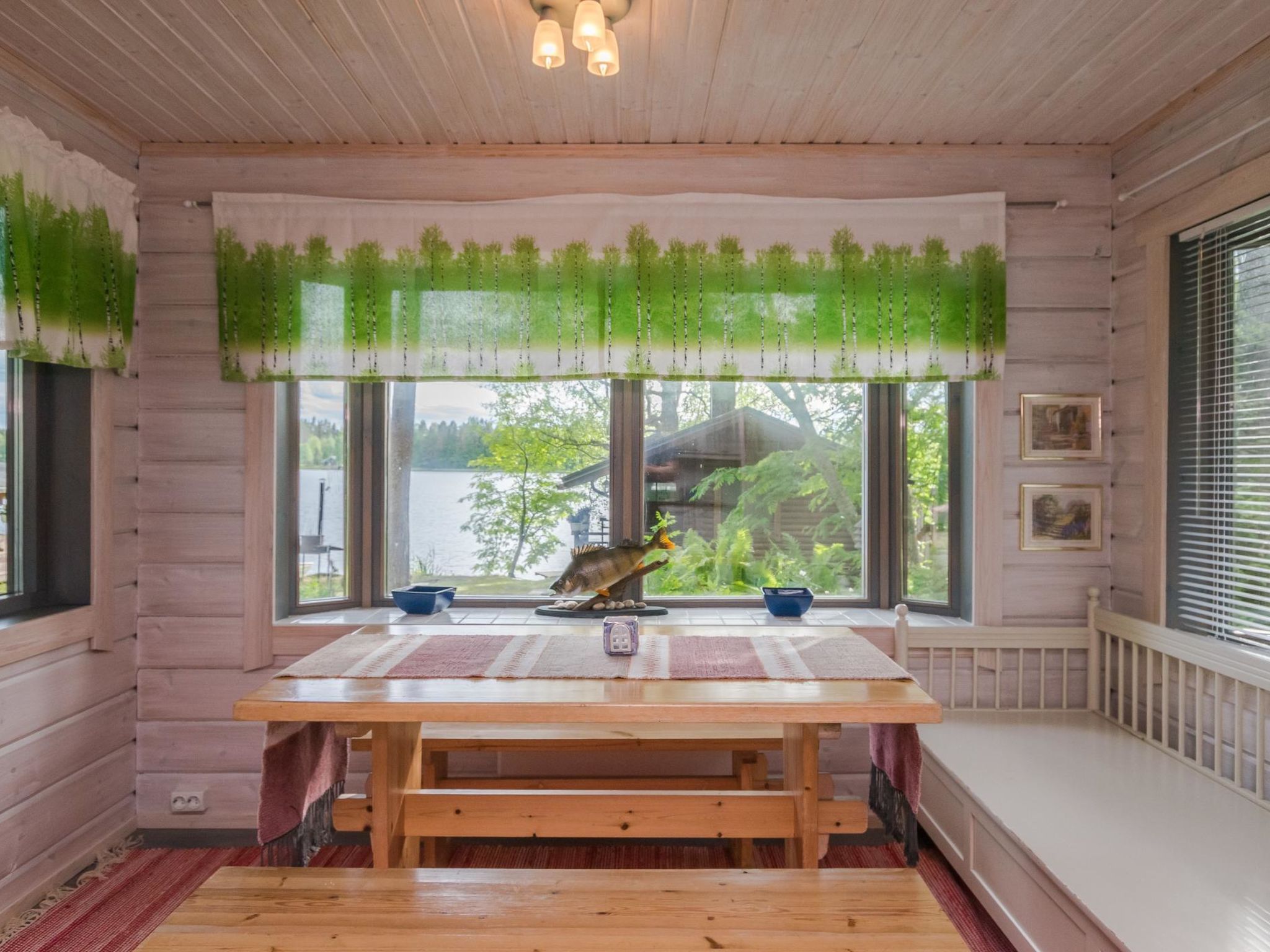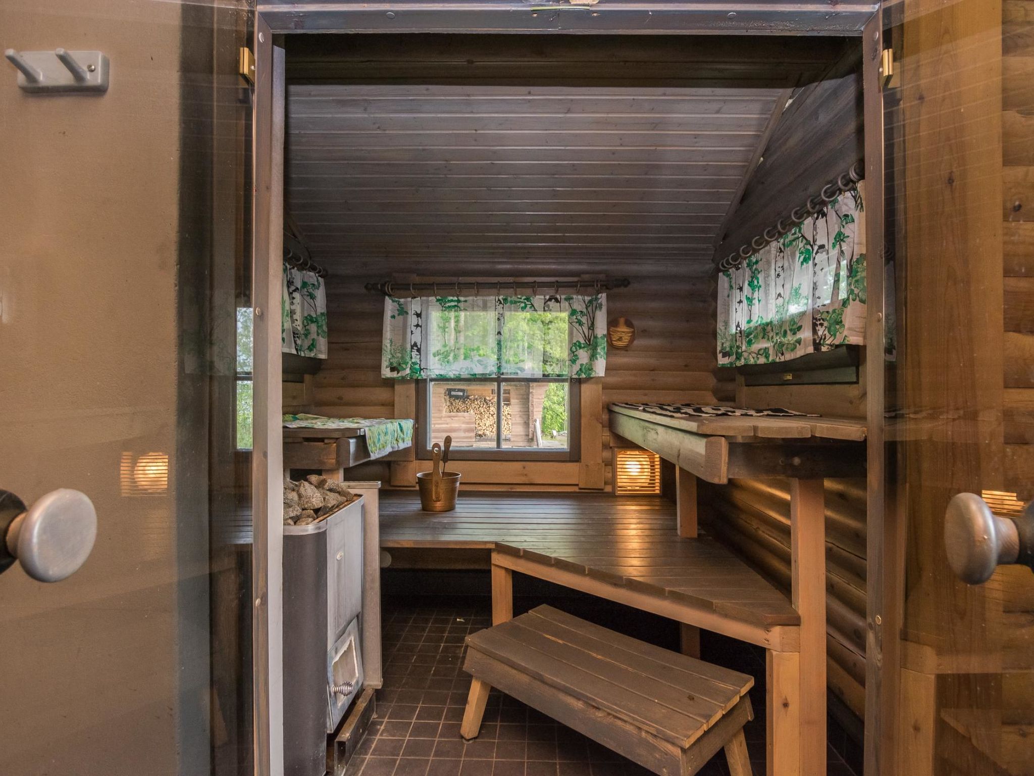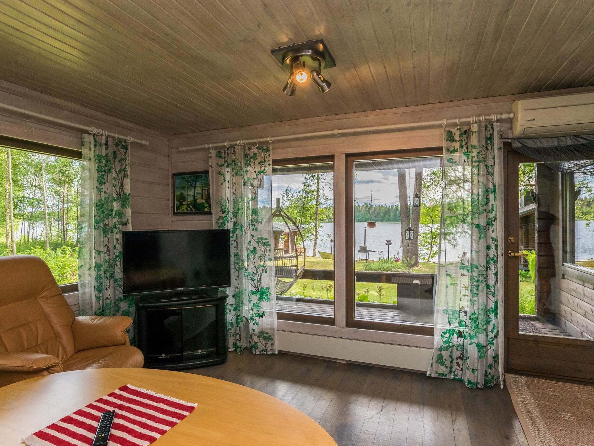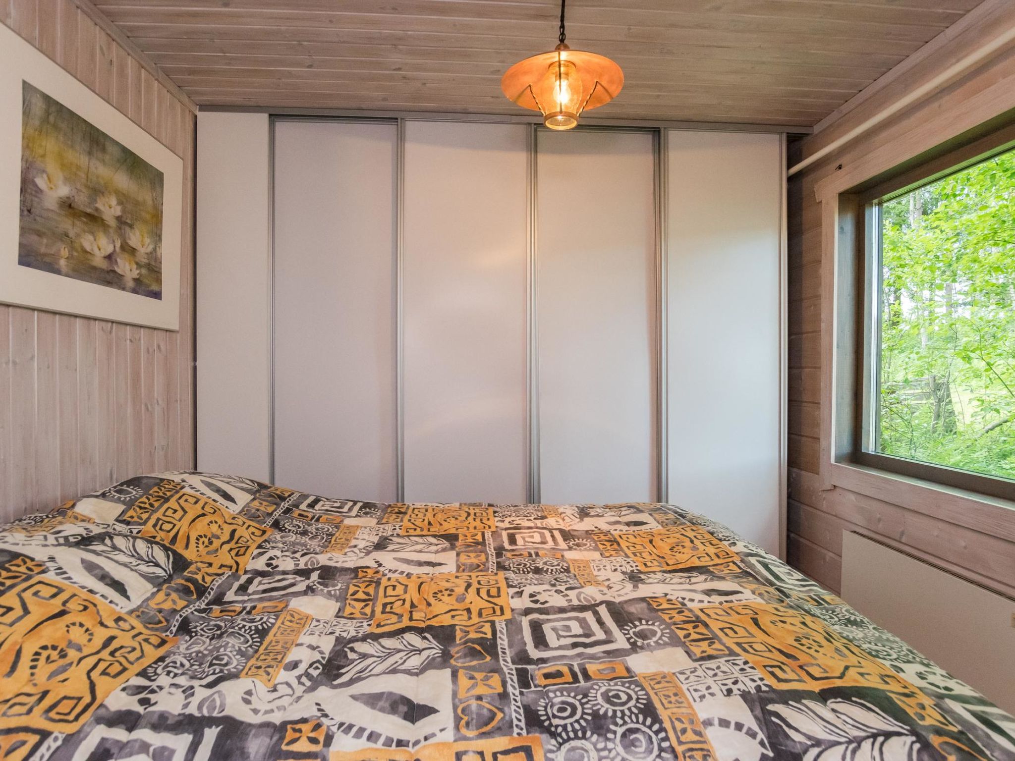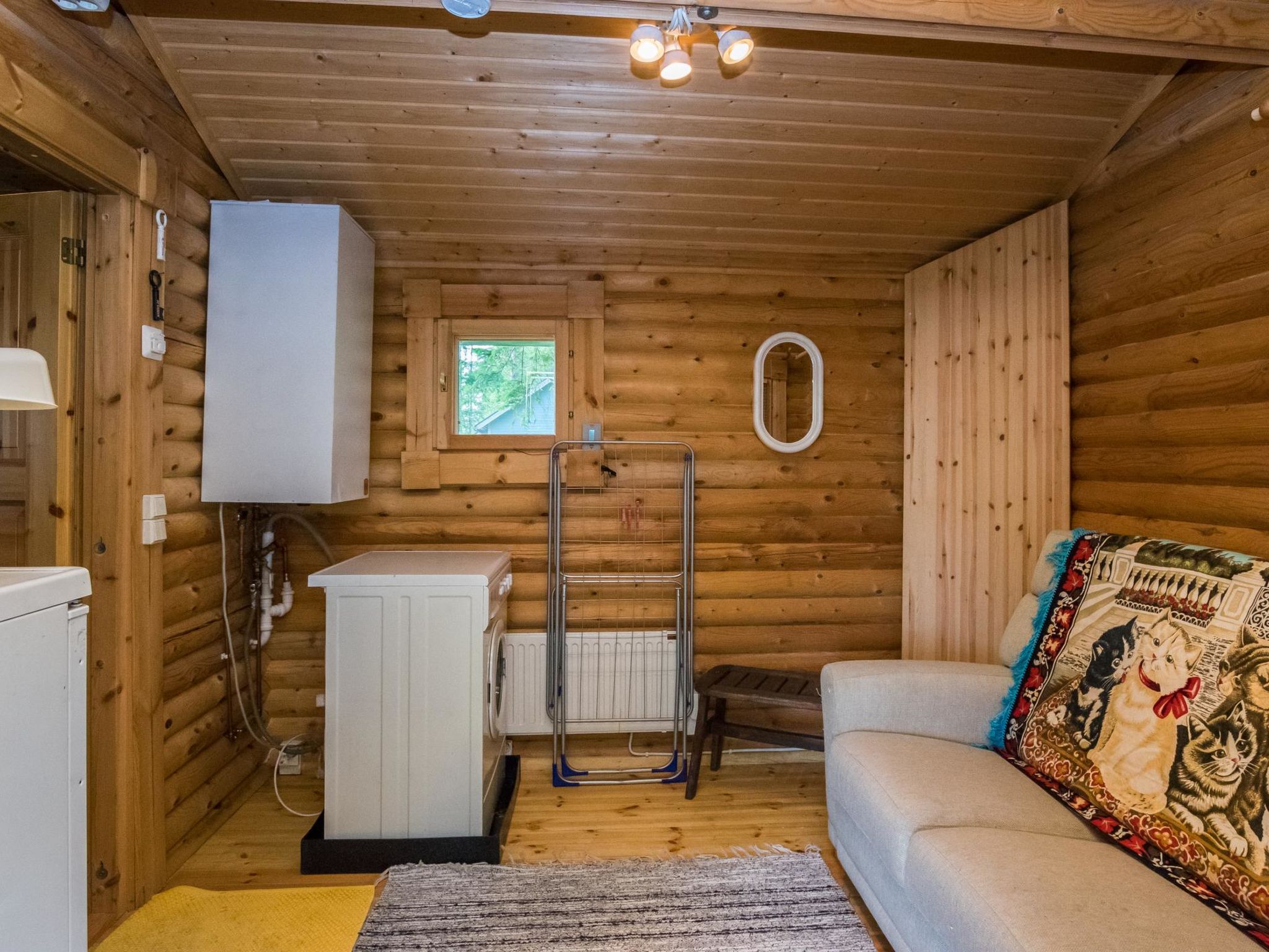 60 km nördlich von Mikkeli, See Hyväjärvi 30 m (Breite 0.6 km, Länge 3.5 km), sich almählich vertiefender Sandstrand, Anlegestelle. Blockferienhaus, Baujahr 1992, renoviert und erweitert 2013. Küche, Esszimmer, Wohnzimmer, Schlafzimmer mit Doppelbett, separate elektrische Toilette (früher normales WC), überdachte Veranda. Im Obergeschoss befinden sich drei Betten (eins 120 cm breit, zwei 80 cm breit) und Balkon. Luftwärmepumpe. Seeufersauna, Baujahr 2008 (15 m²), Ankleideraum, Waschraum, Sauna mit Holzofen und überdachter Veranda. Geschirrspüler und Waschmaschine befinden sich in der Umkleidekabine der Sauna. Uimaranta ist auch für Familien mit Kindern geeignet. Es gibt einen grossen Rasenplatz. Der sich allmählich vertiefende Sandstrand eignet sich neben einer langer Anlegestelle auch für kleine Kinder. Der nächste Nachbar ist ca. 20-30 m entfernt, aber der Innenhofbereich ist ziemlich geschützt. Virtasalmi 8 km, Motopark 18 km, Pieksämäki 20 km, Juva 43 km, Häkärinteet 49 km, Varkaus 58 km, Mikkeli 62 km, Jyväskylä 103 km, Helsinki 290 km.