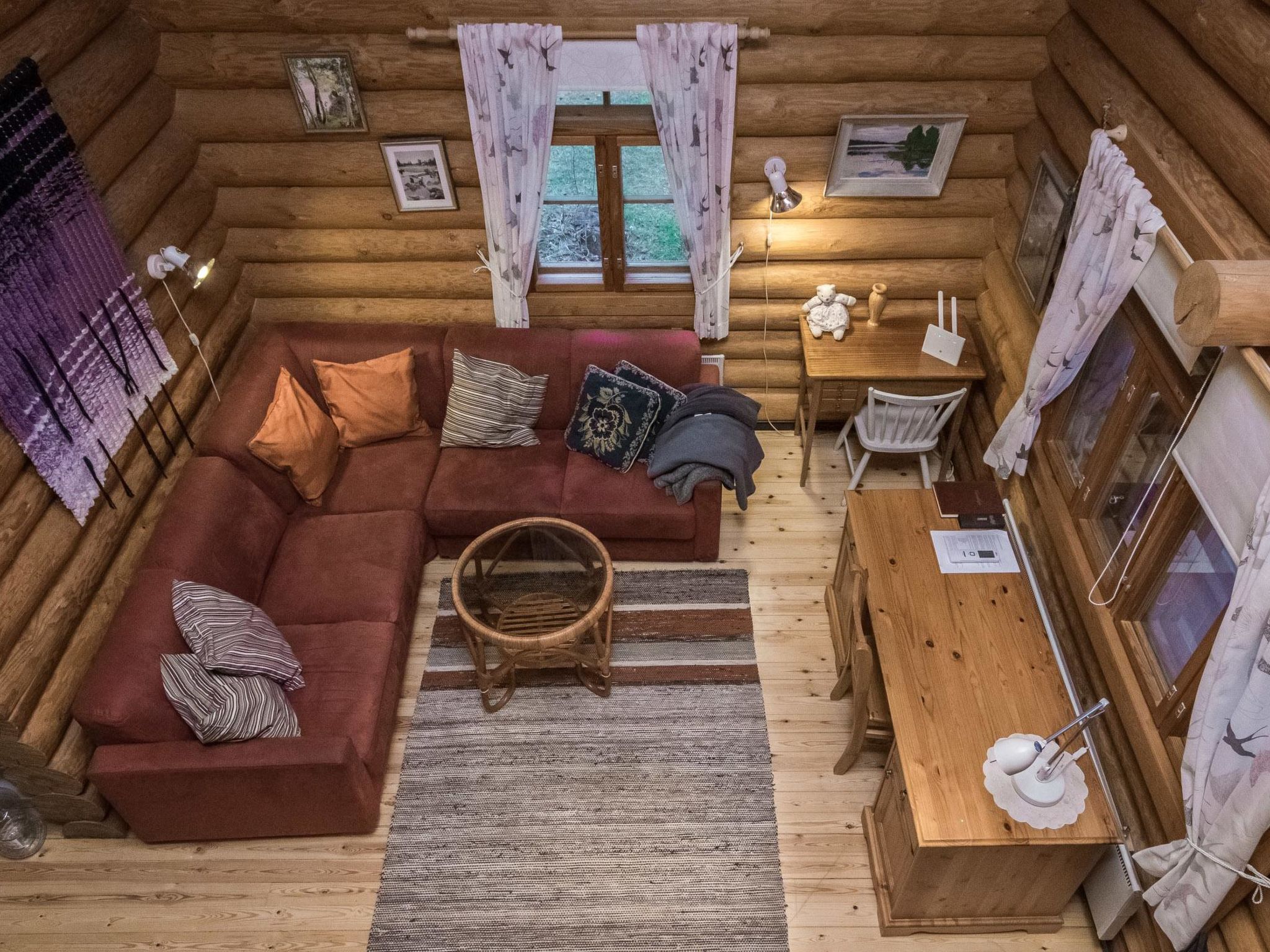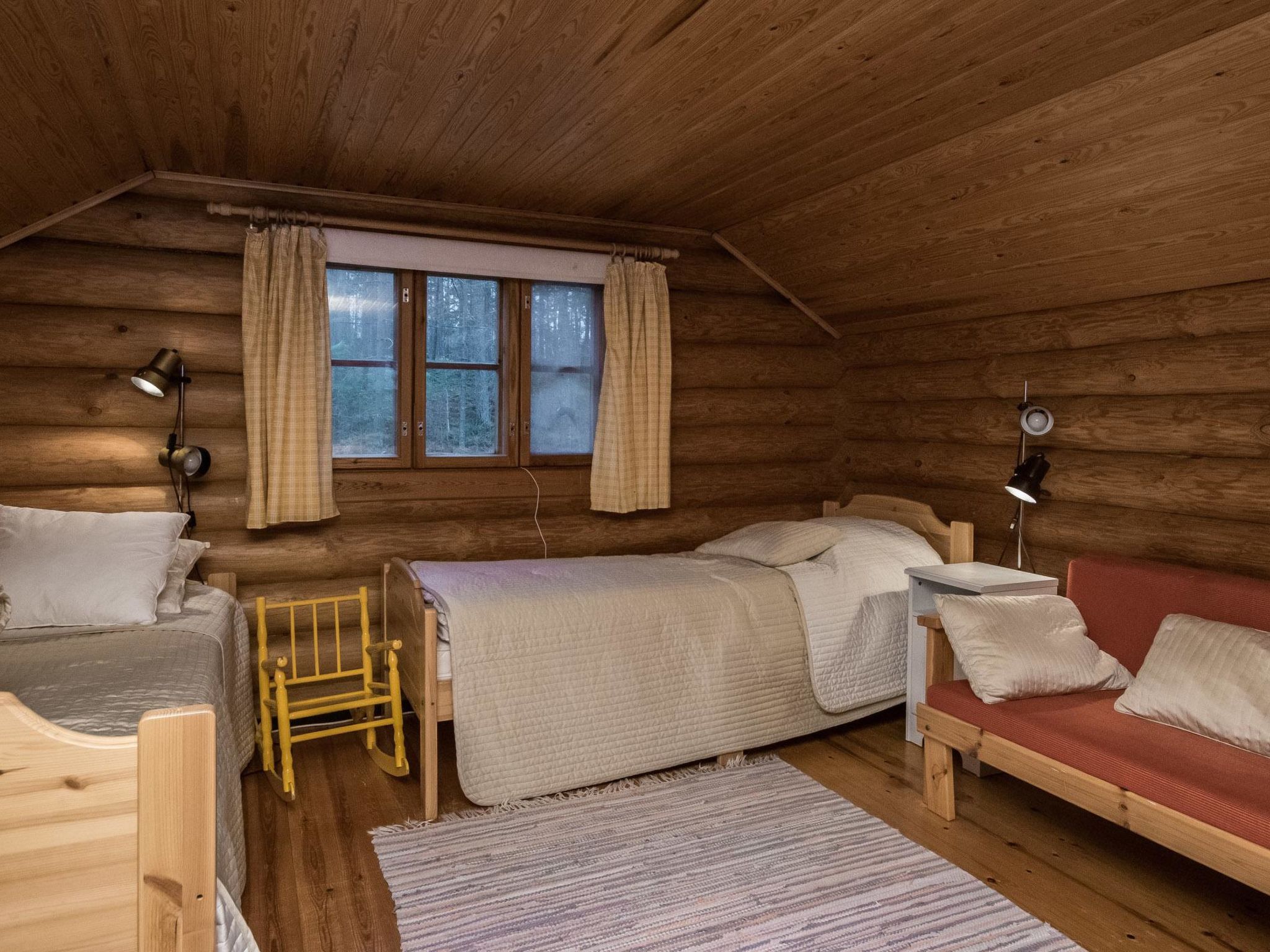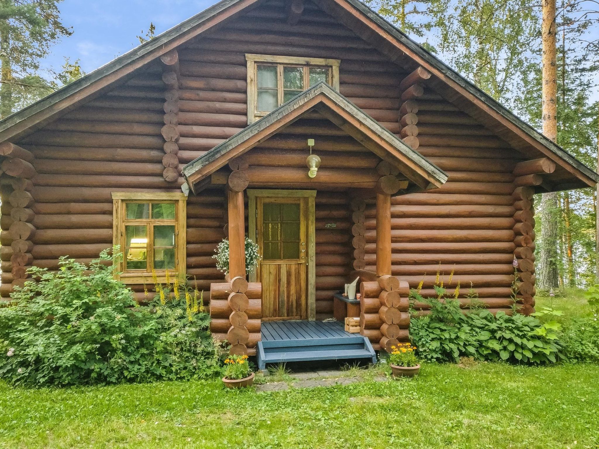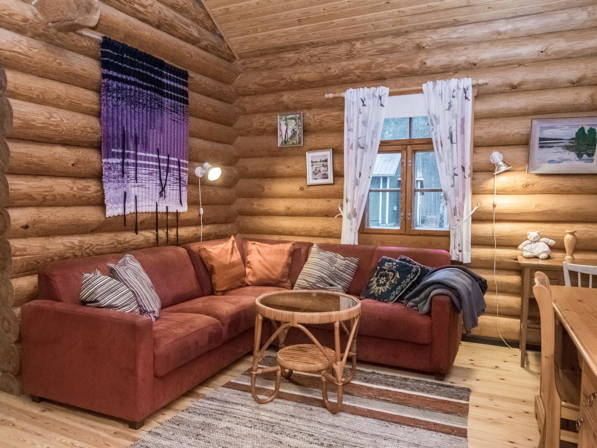 Im Sommer für 4+4 Personen. 35 km südöstlich von Savonlinna, See Puruvesi/Bucht Sorvaslahti 30 m, weicher, tiefer, sandiger Schlammgrund, eigenes Boot. Blockferienhaus, Baujahr 1987, Wohnküche, Schlafzimmer mit Doppelbett. Im Obergeschoss 2 Betten und Schlafcouch/Doppelbett, Sauna, Waschraum mit Dusche und WC, Veranda, Terrasse, Balkon. Luftwärmepumpe zur Kühlung. Smart-TV, Blueray-Spieler, WLAN (keine Datenbeschränkung). Zweistöckiges Nebengebäude im Sommer verfügbar, Schlafzimmer mit 2 Betten: im Obergeschoss Sommerstube, weiteres Schlafzimmer wird vom Eigentümer genutzt (aber nicht, wenn die Kunden da sind). Spielhaus. Abstellraum, Holzschuppen und Aussentoilette. Handgefertigtes Rundholzhaus auf bewaldetem Hanggrundstück (1 Hektar gross). Im Obergeschoss befindet sich einzelner offener Raum. Trinkwasser muss vom Kunden an der Shell-Tankstelle/S-Market geholt werden (5 km). Drahtloser, mobiler Breitband-Internetzugang (möglich für mehrere Personen, das Internet gleichzeitig zu nutzen). Passwort im Haus erhältlich. Das Nebengebäude wird nur im Sommer (15.5.-15.9.) genutzt. Nebengebäude hat elektrisches Licht und Heizung. Nächster Nachbar 40 m, nur vom oberen Teil des Hofes sichtbar, eigenes Ufer ist sehr privat. Auf dem Steg kann Verkehrslärm von der Hautstrasse (Strasse-Nr. 14) und der Eisenbahn (0.5 km) gehört werden. Verkehr ist auch teilweise von der Anlegestelle aus sichtbar. Flugzeuggeräusche von der kleinen Flugzeuglandebahnen (0.4 km) sind manchmal auch zu hören. Parkplatz im Winter, 50 m entfernt (hinter einer sehr scharfen Kurve). Es ist auch möglich, ohne Auto anzureisen (Bahnhof 4 km), 2 Fahrräder zur Verfügung, um die Gegend erkunden zu können. Das Haus verfügt über kohlenstofffreien Strom. Für Kinder sind, z.B. Schaukeln, Spielhaus, Sandhaufen, Reisebett, Babynahrungsstuhl verfügbar. Weiter 2 Fahrräder, 2 Tretschlitten, 2 einfache Schlitten, 2 Aquajogging/Wasserlaufgürtel und Wasserspielzeug sind im Mietpreis enthalten. Angelausrüstung für Winter und Sommer (Angelruten) im Einsatz. Punkaharju Gratgebiet 5 km, Punkaharju 5 km, Waldmuseum Lusto 11 km, Kinder-Sommer-Wasserpark Kesämaa 13 km, Kruunupuisto Thermalbad 10 km, Siikalahti (berühmtes Vogel-Feuchtgebiet) 25 km, Kerigolf 26 km, Savonlinna 40 km, Kitee Aquapark 55 km, Reiten 21 km, Nationalpark Linnansaari 80 km.