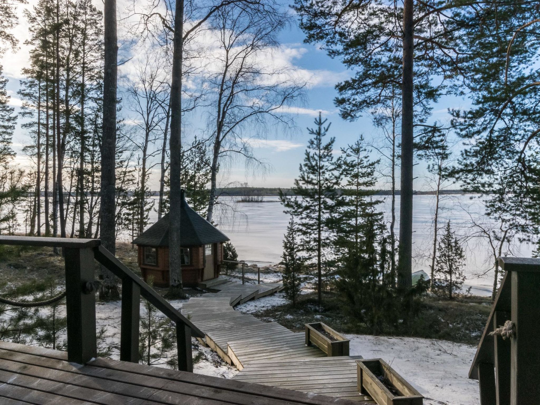 50 km nordwestlich von Savonlinna, See Saimaa/Haukivesi 20 m, harter und flacher Sand-/Moränenboden, eigenes Boot. Block-Ferienhaus, Baujahr 2004, Wohnküche, Schlafzimmer (ohne Tür) mit Doppelbett, Schlafboden mit Dachschrägen (höchster Punkt 180 cm) mit 2 Matratzen (120 cm und 140 cm breit), Waschraum, holzbeheizte Sauna, Terrasse (75 m²). Das Ferienhaus verfügt über mechanische Belüftung. Ruhiges, helles Grundstück in Süd- und Westlage auf einem Vorgebirge. Keine Nachbarn sichtbar. Spielhaus und Hütte für Kinder. Savonlinna / Olavinlinna 50 km, Varkaus 45 km, Rantasalmi 10 km, Ruusohovi Golf 10 km, Linnansaari Nationalpark. In Rantasalmi gibt es im Winter ein umfassendes Loipennetz. Skaten im Safari-Stil von Porosalmi, über Linnansaari, nach Oravi. Strecke 18 km.