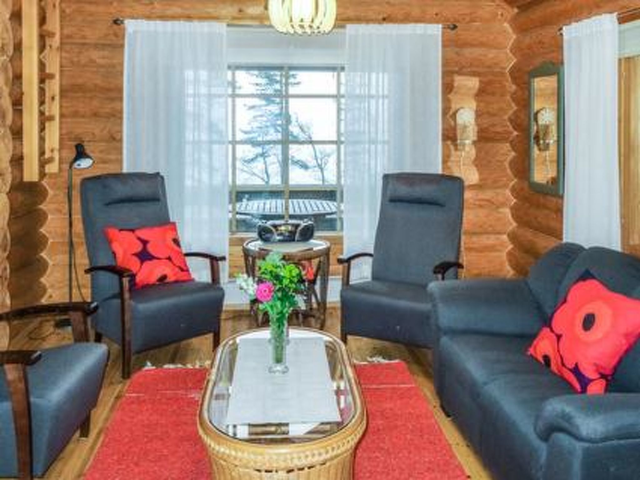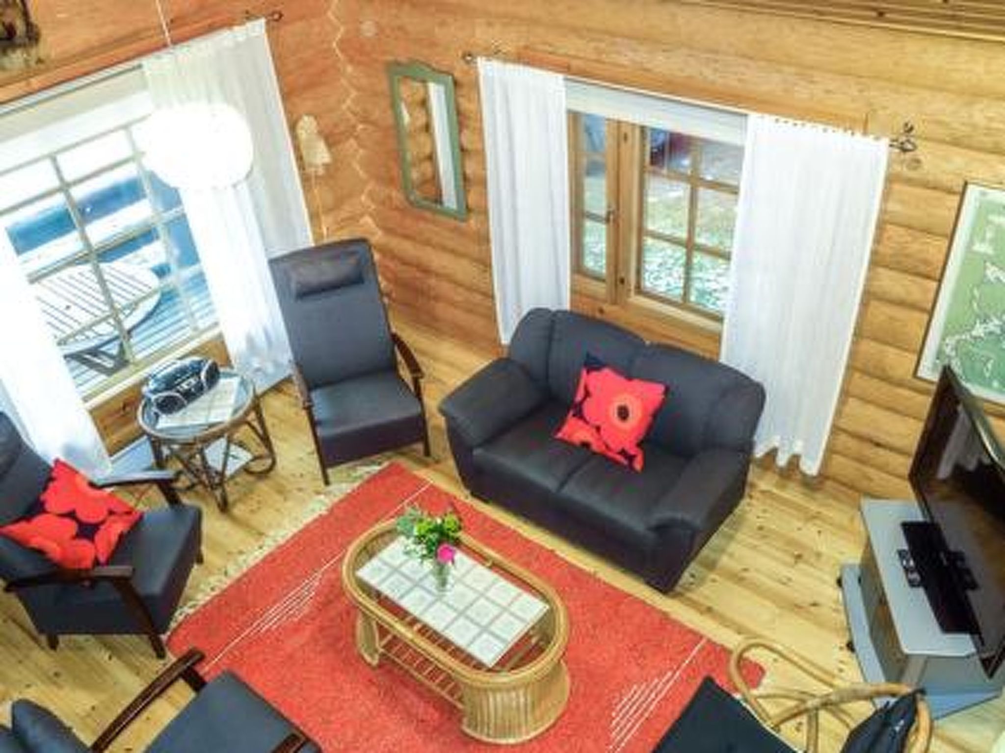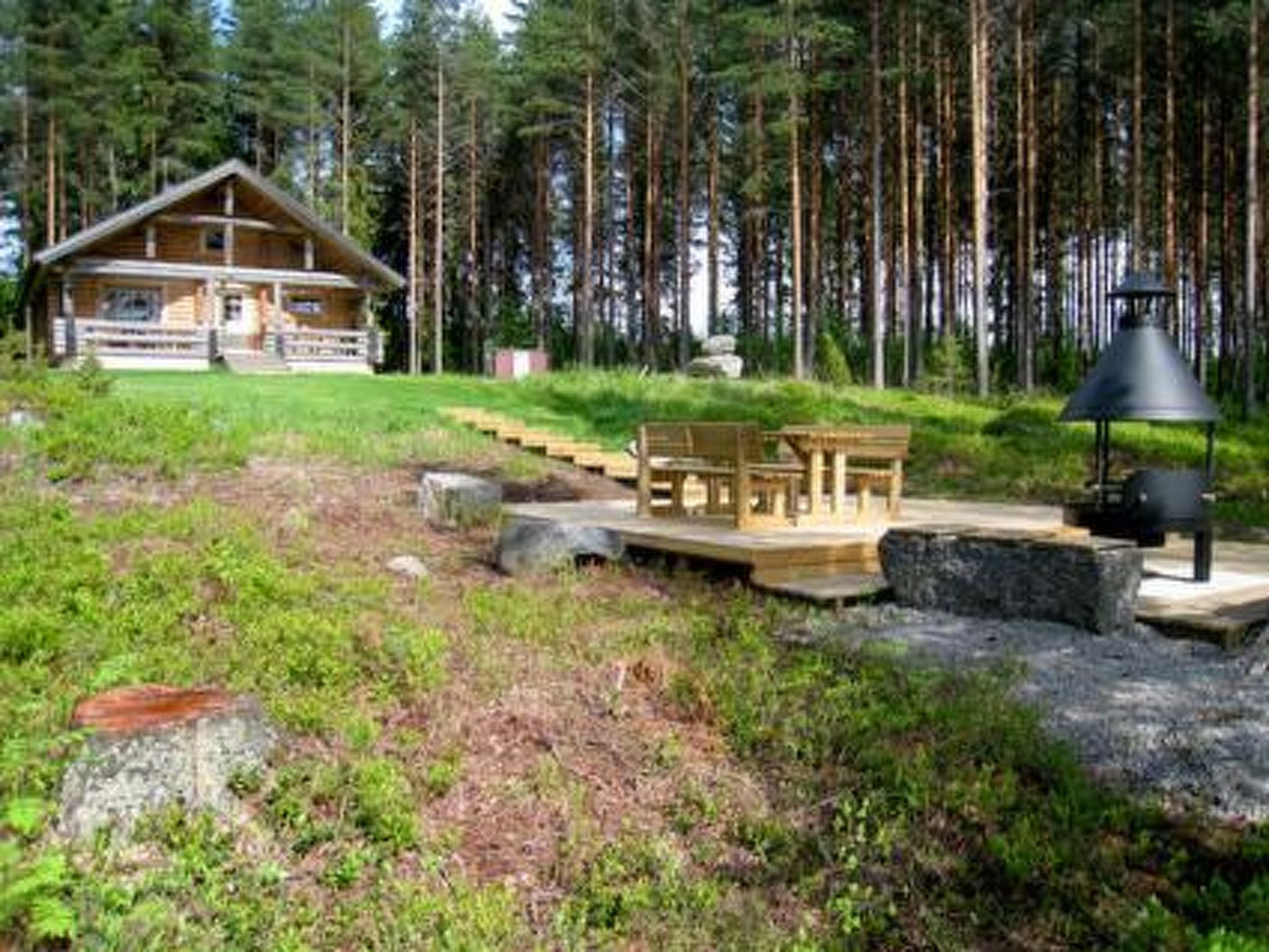 75 km nordöstlich von Jyväskylä. See Keitele 35 m, flaches Wasser, fester Sand-/Felsgrund. Eigenes Boot. Blockhaus, Baujahr 1995, Küche, Wohnzimmer, 2 Schlafzimmer mit je 2 Betten, Schlafboden mit 3 Betten, Waschraum, Sauna, offene Veranda.
