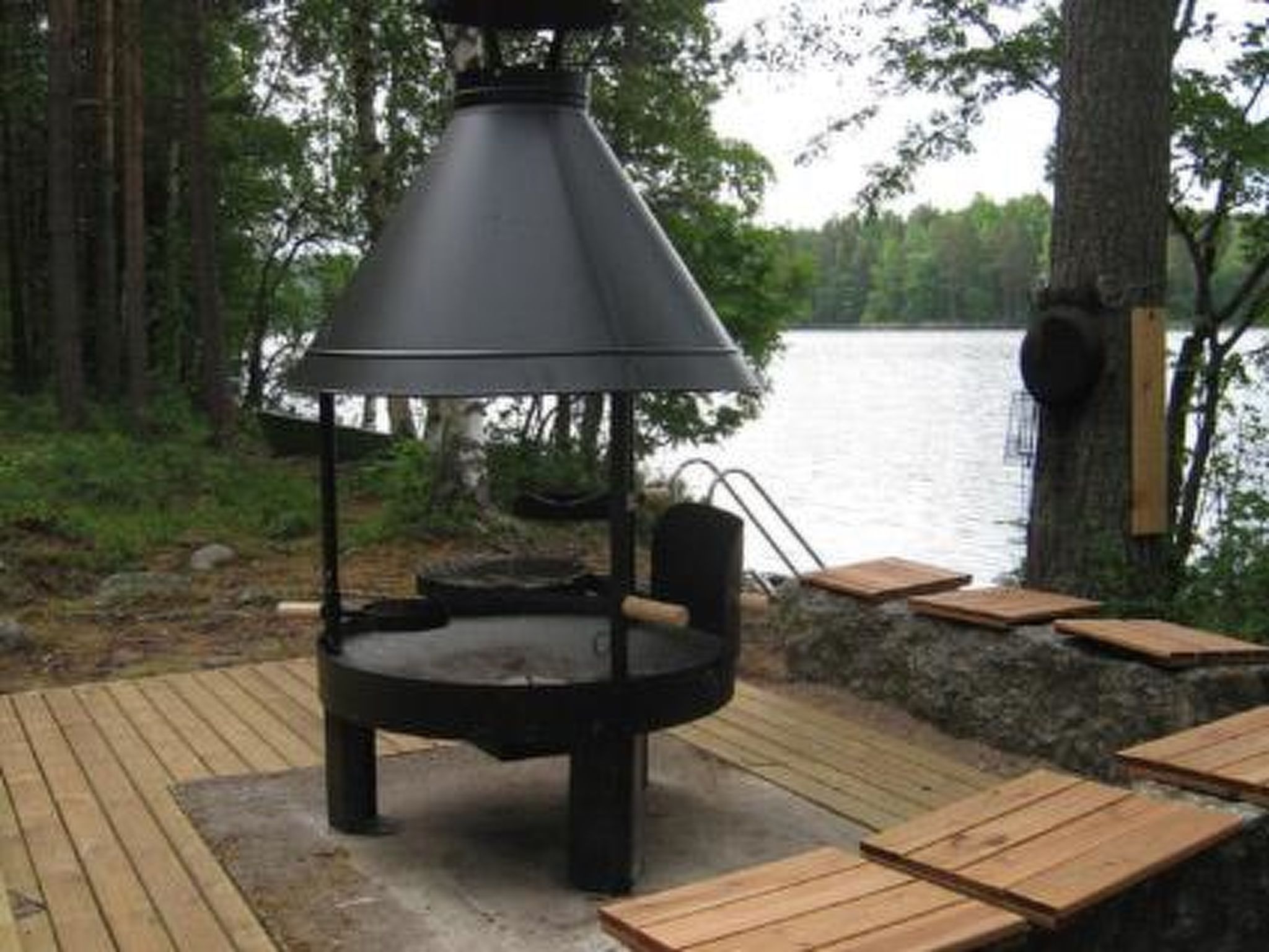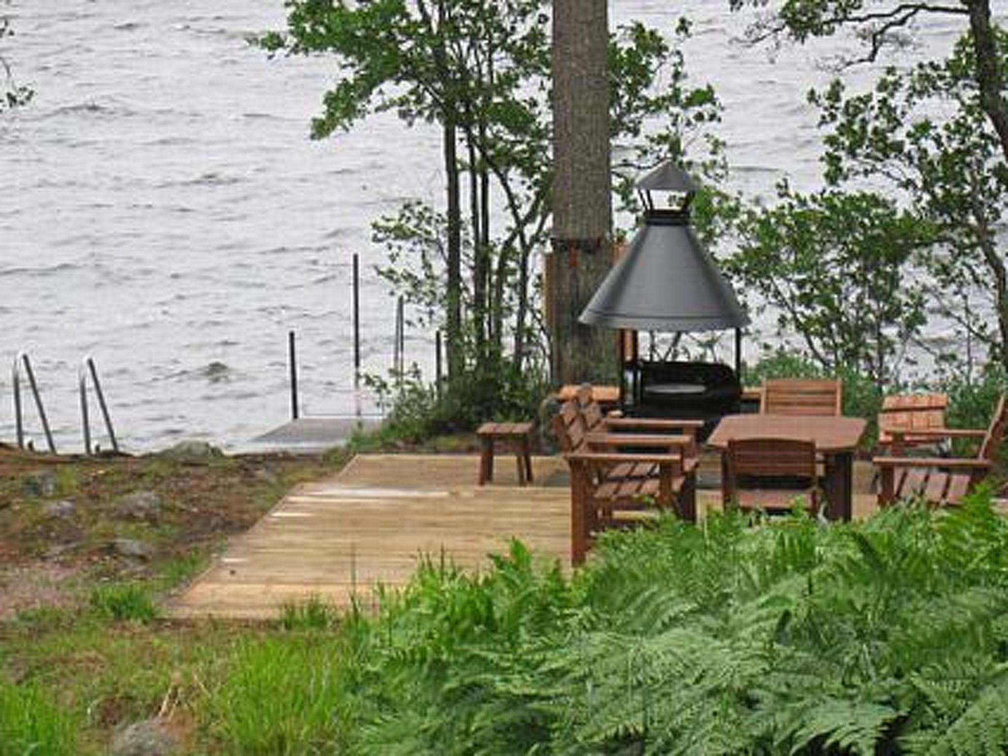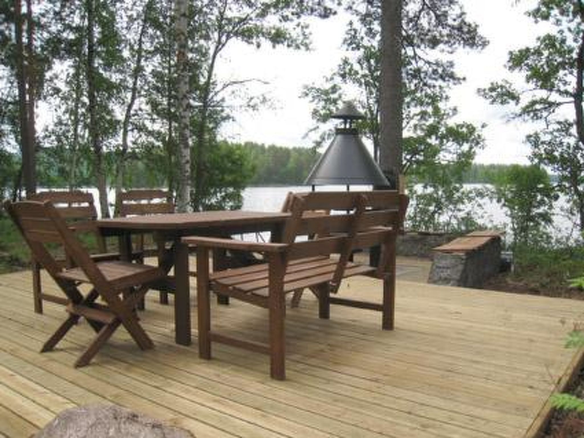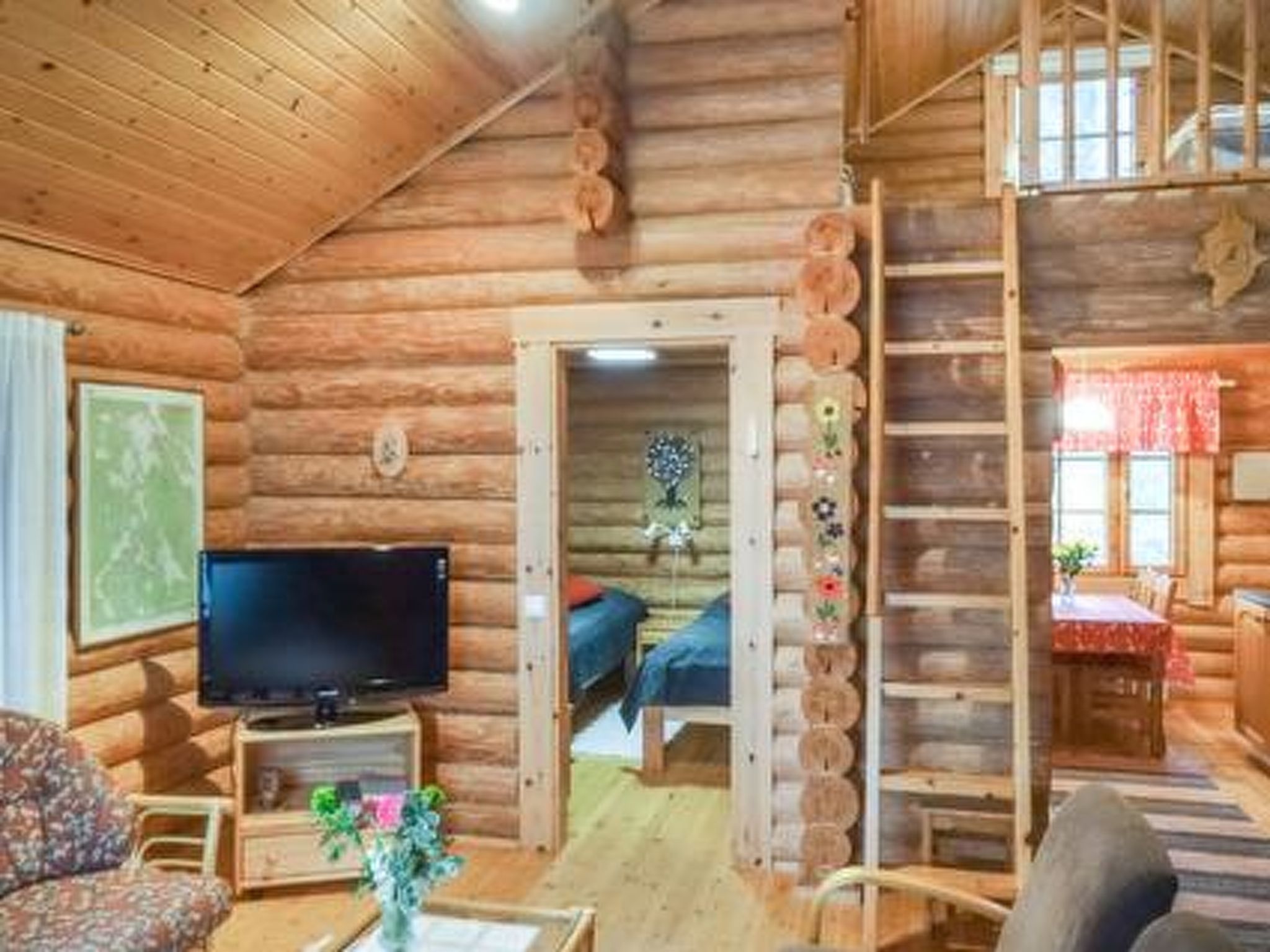 75 km nördlich von Jyväskylä. See Keitele-Järvi 40 m, tiefes Wasser, fester Sand-/Felsgrund. Eigenes Boot. Blockhaus, Baujahr 1993, Küche, Wohnzimmer, Schlafzimmer mit 2 Betten, Schlafzimmer mit Doppelbett, Schlafboden mit 3 Betten (steile Treppe zum Dachboden), Waschraum, Sauna, offene Veranda. Aussensteckdose fürs Auto.