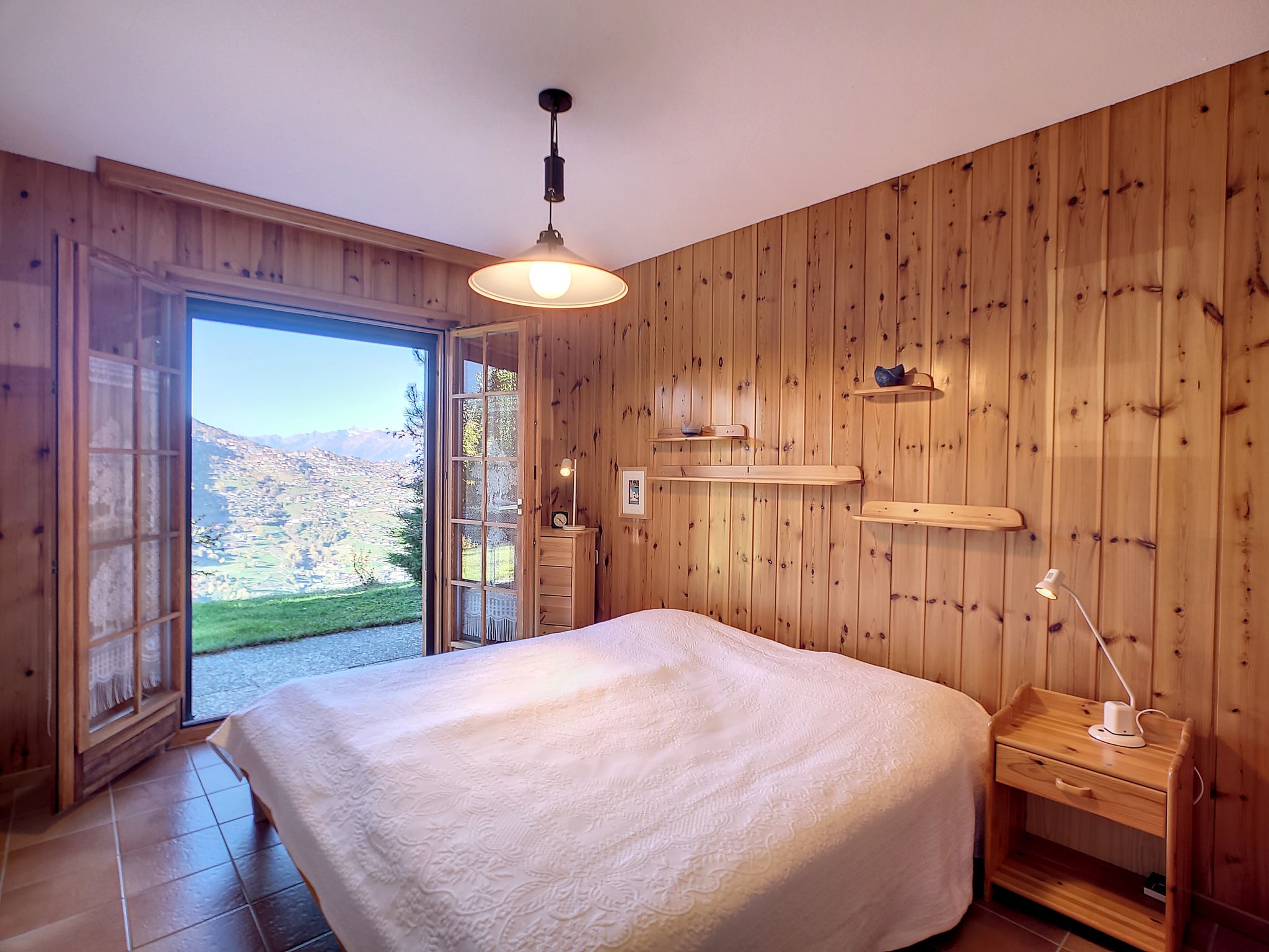 Veysonnaz: Gemütliches Chalet "Les 4 Saisons", auf 3 Stockwerken. Am Ortsrand, 500 m vom Zentrum, ruhige, sonnige Lage, 1 km vom Skigebiet, Richtung Südosten. Zur Alleinbenutzung: grosser Terrassengarten Rasen. Terrasse, Gartenmöbel. Im Hause: Wireless LAN. Zufahrt (Bergstrasse). Im Winter bitte Schneeketten mitbringen. Treppenweg (10 Stufen) bis zum Haus. Parkplatz (für 2 Autos), Einzelgarage in 150 m. Supermarkt 1 km, Bushaltestelle "skibus" 100 m. Gondelbahn 1 km, Skipisten 1 km. Bekannte Skigebiete sind gut erreichbar: Les 4 Vallées 1 km. Der Besitzer akzeptiert keine Jugendgruppen.