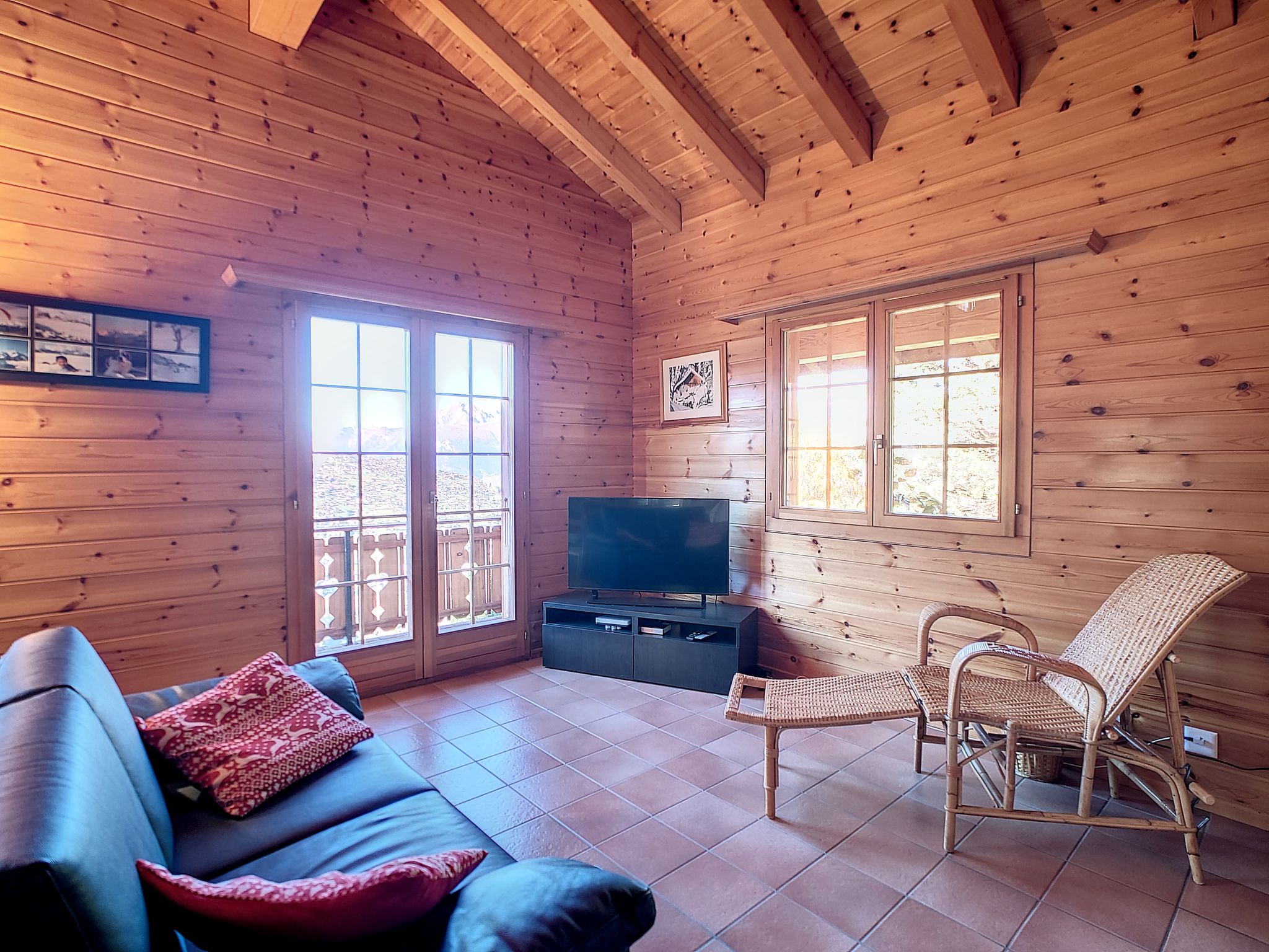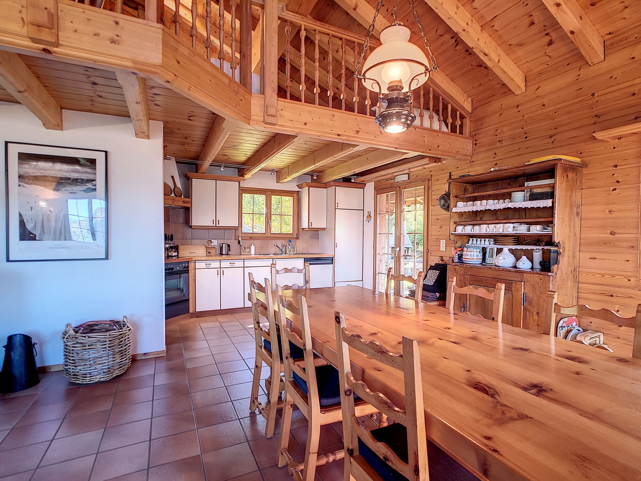 "Les 4 Saisons", 4-Zimmer-Chalet 180 m2 auf 3 Stockwerken, Südostlage. Geräumig, komfortabel und mit viel Holz eingerichtet: grosses Wohn-/Esszimmer mit Kabel-TV. Ausgang zum Balkon, zur Terrasse. Grosse, offene Küche (Backofen, Geschirrspüler, 4 Glaskeramikherd Platten). Bad, Bad/WC. Unteres Geschoss: 1 Zimmer mit 1 Doppelbett. Ausgang zum Garten. 1 Zimmer mit 1 Doppelbett (140 cm, Länge 200 cm). Ausgang zum Garten. 1 Zimmer mit 1 x 2 Etagenbetten. Ausgang zum Garten. Bad, Bad/WC. Obergeschoss: Galerie mit 1 Doppelbett (2 Pers.). Grosser Balkon, Südlage und Ostlage, Garten, Rasen. Terrassenmöbel, Gartengrill. Panoramasicht auf die Berge und den Wald. Zur Verfügung: Waschmaschine. Internet (Wireless LAN, gratis). Garage (2 Autos) in 150 m, Höhe 200 cm. Bitte beachten: Nichtraucher-Haus.