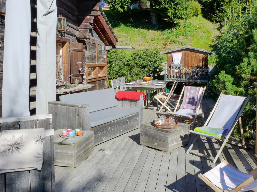 "Filaos", 6-Zimmer-Chalet 160 m2 auf 3 Stockwerken. Teilweise renoviert im Jahre 2015, komfortabel und gemütlich eingerichtet: grosses Wohn-/Esszimmer mit Kabel-TV. Ausgang zur Terrasse. Grosse, offene Küche (Backofen, Geschirrspüler, 4 Glaskeramikherd Platten, Mikrowelle, elektrische Kaffeemaschine, Kapseln für die Kaffeemaschine (Nespesso) extra, Racletteofen, Fondue Set (Chinoise, Käse)). Unteres Geschoss: 1 grosses Zimmer mit 1 Bett (90 cm, Länge 200 cm), 1 Doppelbett (2 x 90 cm, Länge 200 cm), Dusche/WC. Ausgang zum Garten. 2 grosse Zimmer, jedes Zimmer mit 1 Doppelbett (2 x 90 cm, Länge 200 cm). Ausgang zum Garten. Bad, Dusche/WC, sep. WC. Obergeschoss: 1 kleines Zimmer mit 1 Bett (90 cm, Länge 200 cm). 1 grosses Zimmer mit 1 franz. Bett (1 x 160 cm, Länge 200 cm). Ausgang zum Balkon. Bad. Grosse Terrasse 40 m2, Südlage und Ostlage. Terrassenmöbel, Balkonmöbel, Liegestühle. Herrliche Panoramasicht auf die Berge und das Tal. Zur Verfügung: Waschmaschine, Wäschetrockner, Bügeleisen, Babybett. Internet (Wireless LAN, gratis). Parkplatz (3 Autos). Bitte beachten: Nichtraucher-Haus.