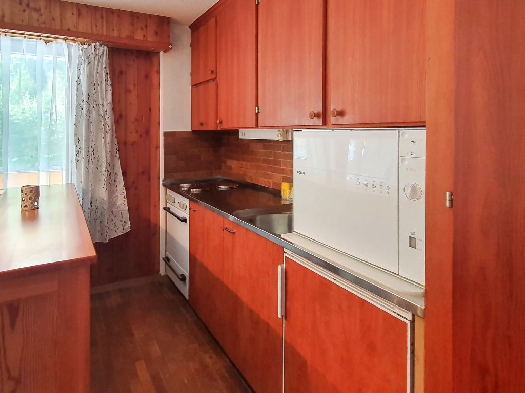 "Panorama 66", 1-Zimmer-Studio 34 m2. Komfortabel und geschmackvoll eingerichtet: Wohn-/Schlafzimmer mit 1 Diwanbett, 1 Doppeldiwanbett und TV. Kleine, offene Küche (Backofen, Geschirrspüler, Toaster, elektrische Kaffeemaschine, Kapseln für die Kaffeemaschine (Nespresso) extra). Bad/WC. Balkon. Balkonmöbel. Bitte beachten: Nichtraucher-Unterkunft.