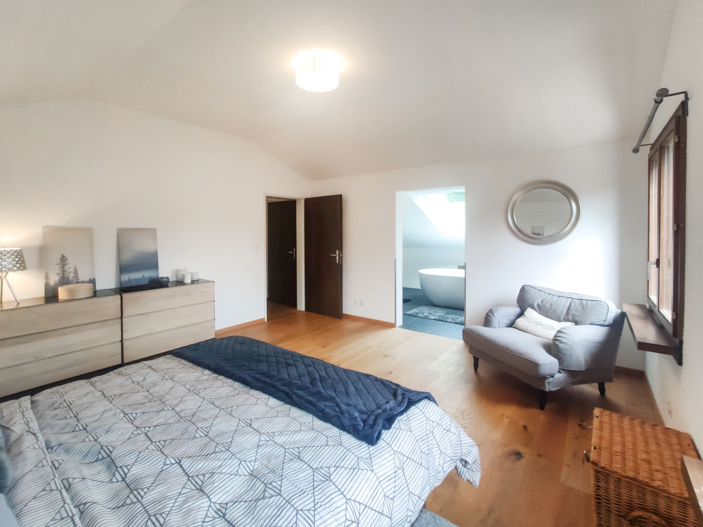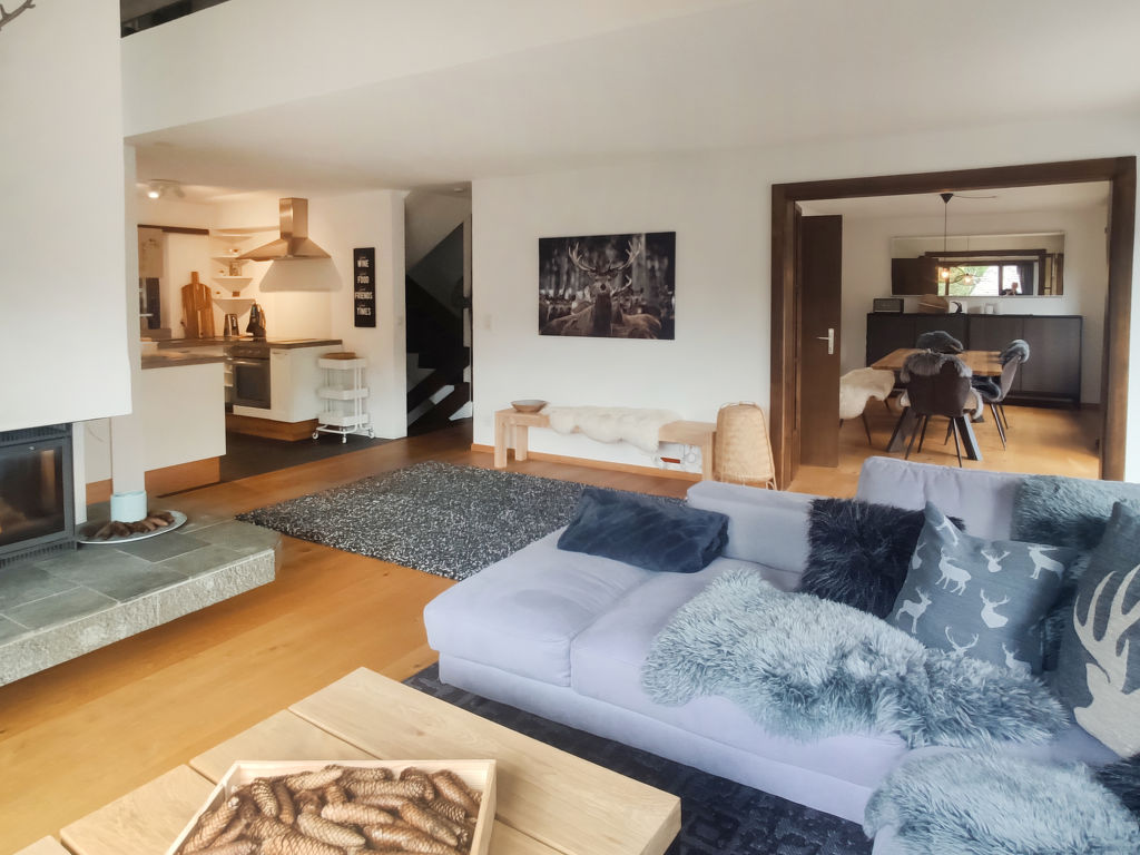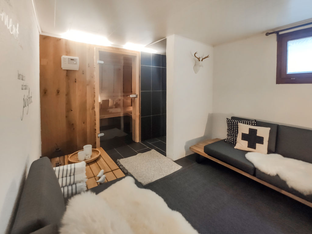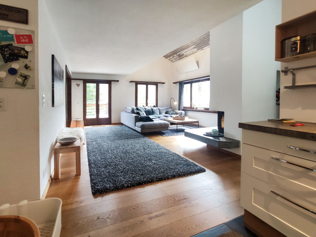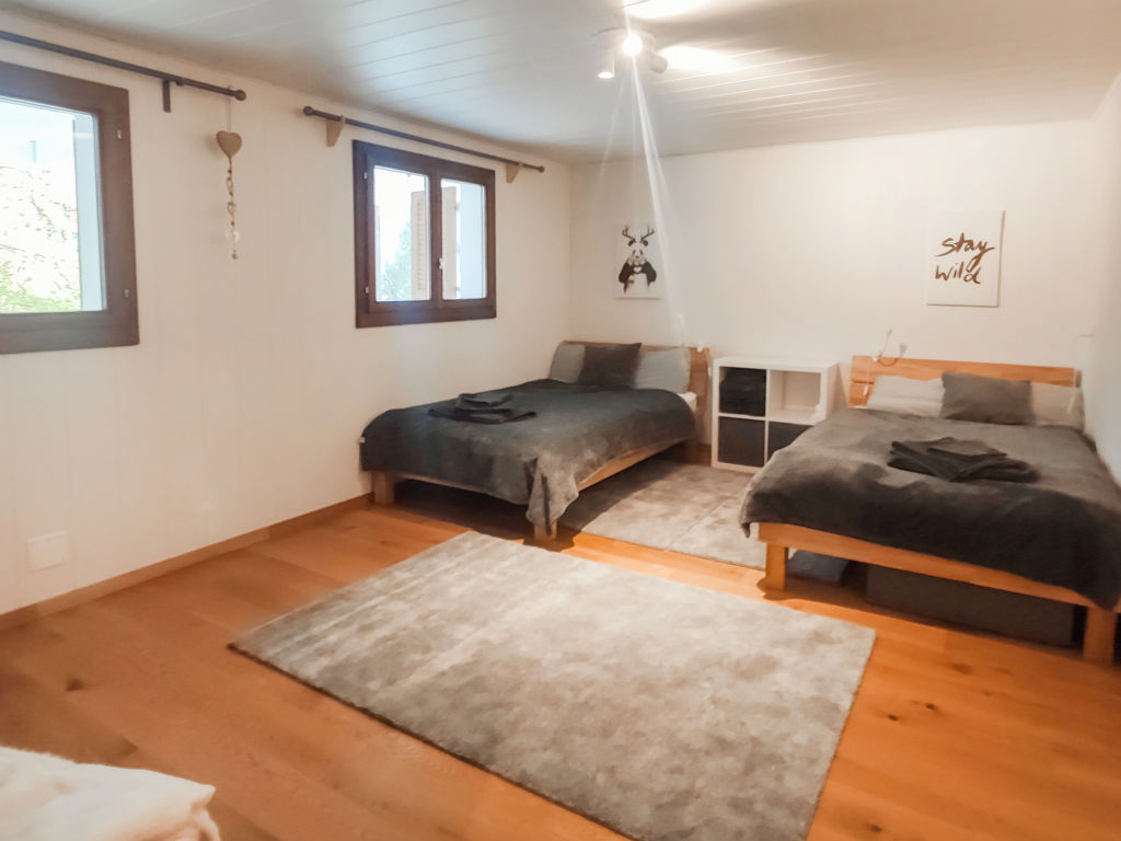 5-Zimmer-Haus 220 m2. Objekt geeignet für 6 Erwachsene + 1 Kind. Geräumig und hell, renoviert im Jahre 2021, sehr modern und geschmackvoll eingerichtet: offenes grosses Wohn-/Esszimmer mit offenem Kamin, Esstisch, Dusche/WC und E-Heizung. Ausgang zum Garten, zur Terrasse, zum Gartensitzplatz. Offenes Wohnzimmer mit Kabel-TV und Flachbildschirm. 1 Doppelzimmer mit 1 Doppelbett (180 cm, Länge 200 cm). 1 grosses Doppelzimmer mit 1 franz. Bett (2 x 100 cm, Länge 200 cm). Grosse, offene Küche (Backofen, Geschirrspüler, 4 Glaskeramikherd Platten, Toaster, Wasserkocher, Tiefkühler, Grill, elektrische Kaffeemaschine, Kapseln für die Kaffeemaschine (Kolbenkaffemaschine) extra, Racletteofen, Fondue Set (Chinoise, Käse)) mit Esstisch. Ausgang zur Terrasse. E-Heizung. Unteres Geschoss: 1 Zimmer mit 2 Betten (90 cm, Länge 200 cm), sep. WC und Dusche. Holzböden. Terrasse 30 m2. Terrassenmöbel. Zur Verfügung: Sauna. Internet (Wireless LAN, gratis). Parkplatz (2 Autos), Garage auf dem Grundstück (1 Auto). Bitte beachten: geeignet für Familien. Nichtraucher-Unterkunft. Sauna mit Ruheraum im Untergeschoss.
