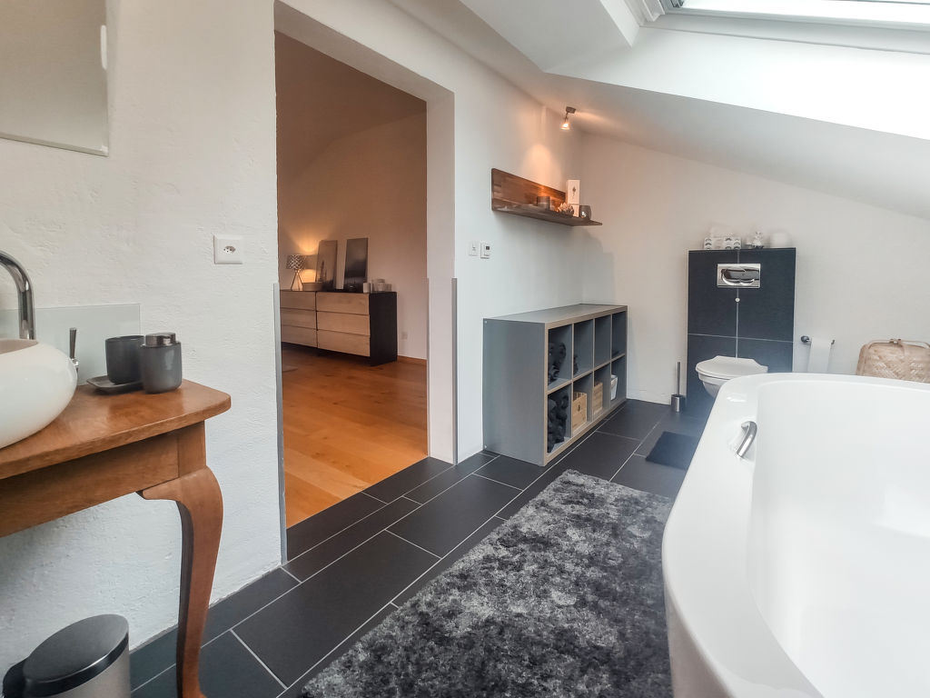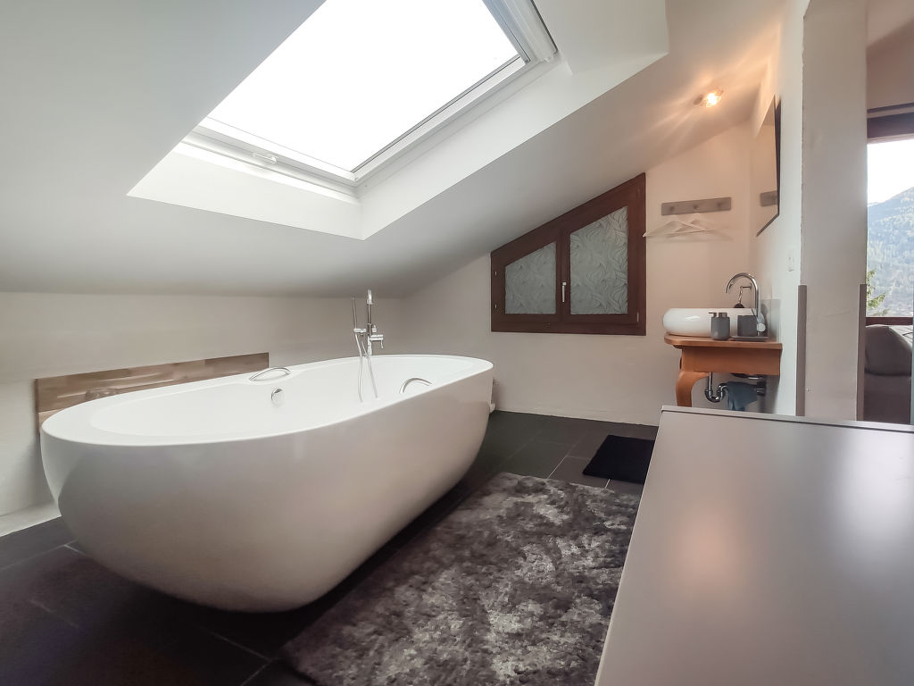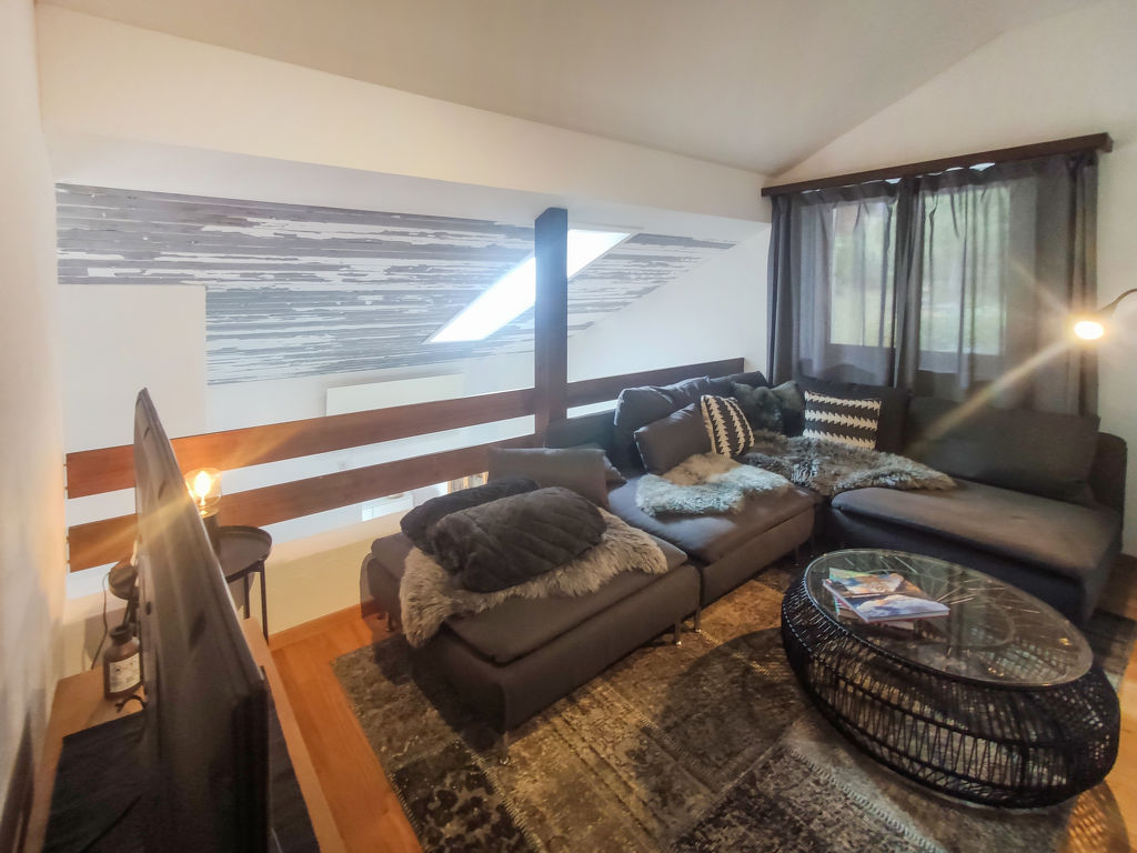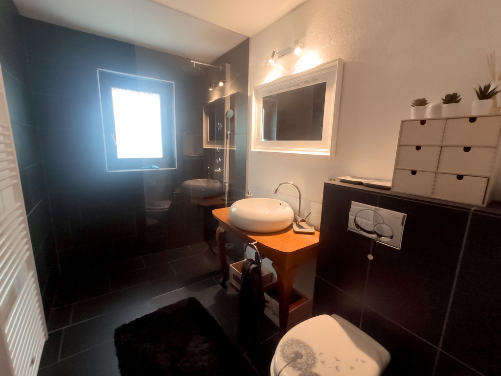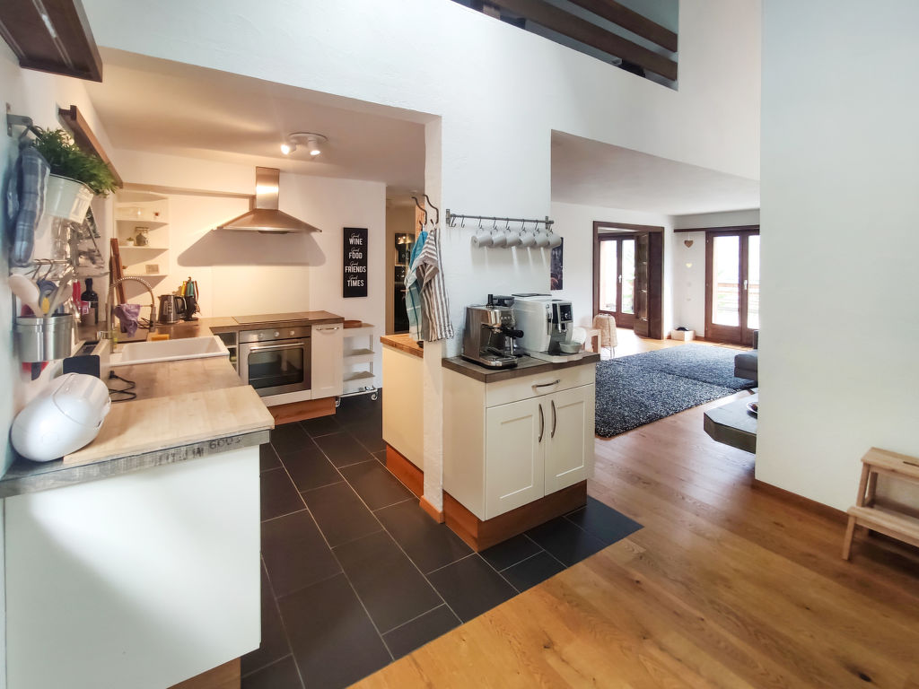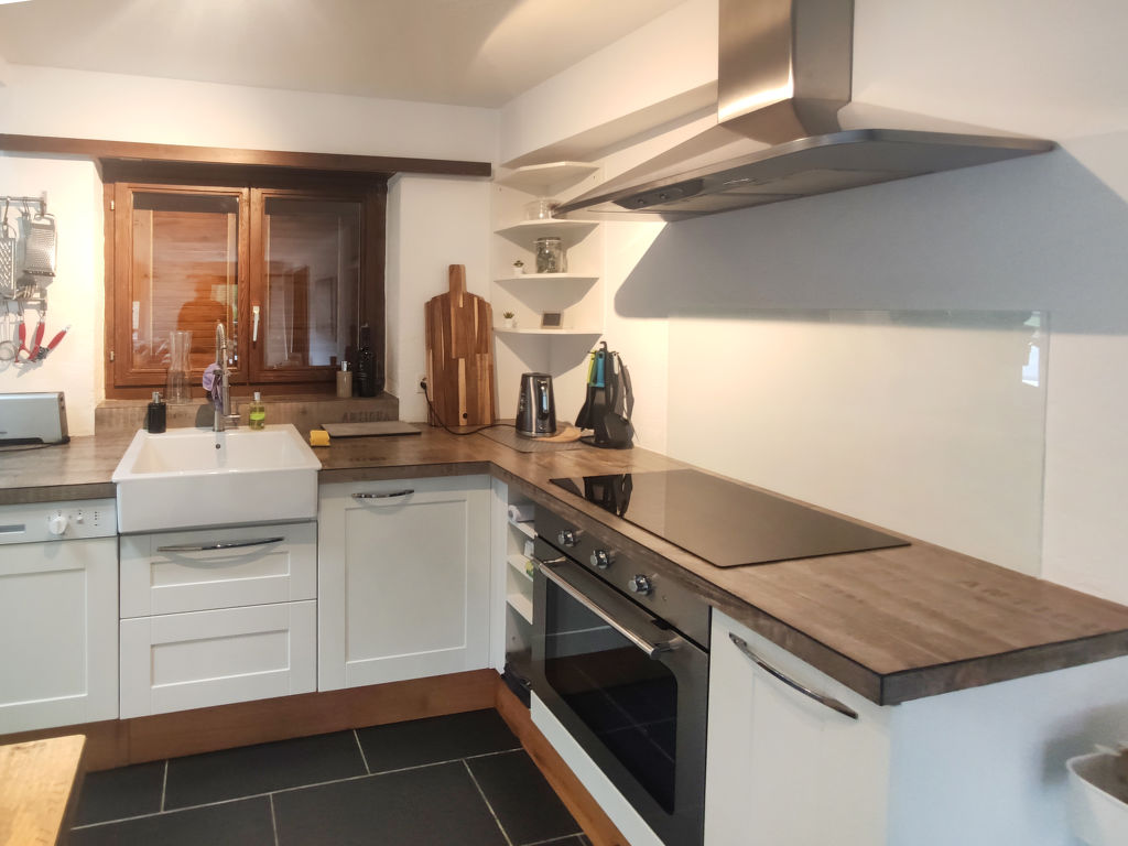5-Zimmer-Haus 220 m2. Objekt geeignet für 6 Erwachsene + 1 Kind. Geräumig und hell, renoviert im Jahre 2021, sehr modern und geschmackvoll eingerichtet: offenes grosses Wohn-/Esszimmer mit offenem Kamin, Esstisch, Dusche/WC und E-Heizung. Ausgang zum Garten, zur Terrasse, zum Gartensitzplatz. Offenes Wohnzimmer mit Kabel-TV und Flachbildschirm. 1 Doppelzimmer mit 1 Doppelbett (180 cm, Länge 200 cm). 1 grosses Doppelzimmer mit 1 franz. Bett (2 x 100 cm, Länge 200 cm). Grosse, offene Küche (Backofen, Geschirrspüler, 4 Glaskeramikherd Platten, Toaster, Wasserkocher, Tiefkühler, Grill, elektrische Kaffeemaschine, Kapseln für die Kaffeemaschine (Kolbenkaffemaschine) extra, Racletteofen, Fondue Set (Chinoise, Käse)) mit Esstisch. Ausgang zur Terrasse. E-Heizung. Unteres Geschoss: 1 Zimmer mit 2 Betten (90 cm, Länge 200 cm), sep. WC und Dusche. Holzböden. Terrasse 30 m2. Terrassenmöbel. Zur Verfügung: Sauna. Internet (Wireless LAN, gratis). Parkplatz (2 Autos), Garage auf dem Grundstück (1 Auto). Bitte beachten: geeignet für Familien. Nichtraucher-Unterkunft. Sauna mit Ruheraum im Untergeschoss.