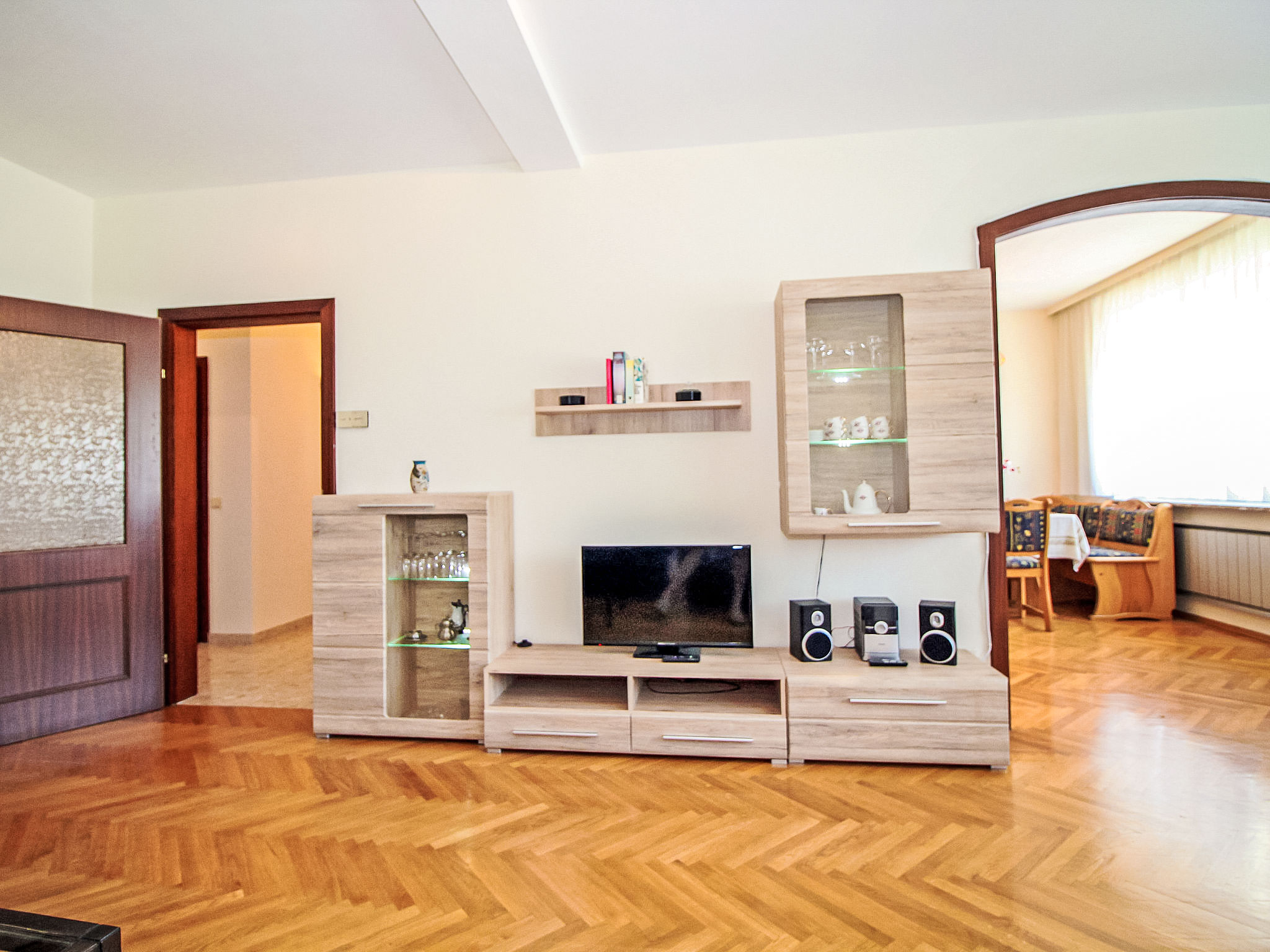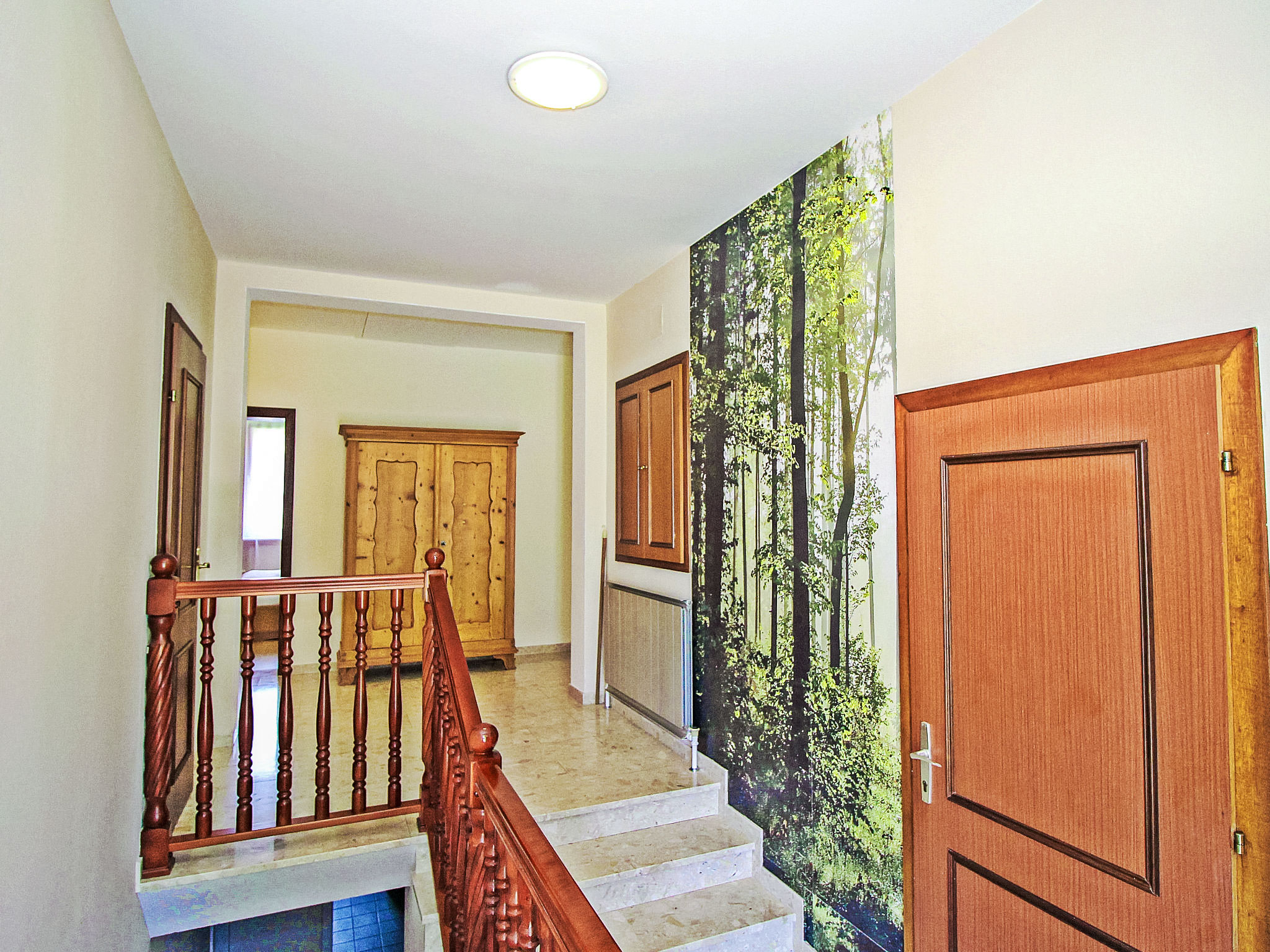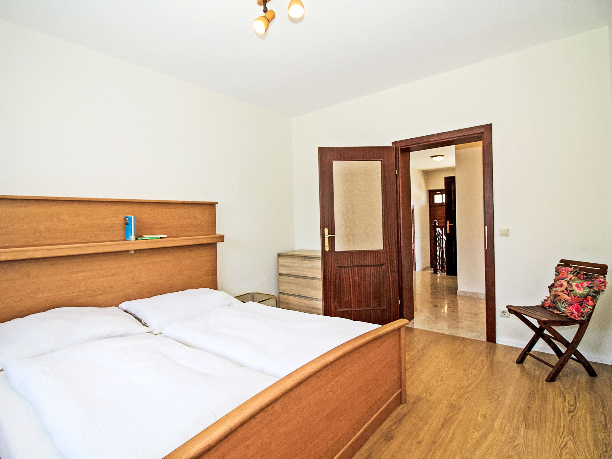 4-Zimmer-Haus 140 m2, im erhöhten Erdgeschoss. Geräumig und hell, komfortabel und gemütlich eingerichtet: offener grosser Eingang. Offenes grosses Wohnzimmer mit Sat-TV, Flachbildschirm und Stereoanlage. 2 Doppelzimmer. 1 Doppelzimmer mit 2 Betten (120 cm, Länge 200 cm). Grosses Durchgangszimmer mit Esstisch. Ausgang zum Garten. Grosse, offene Küche (4 Kochplatten, Backofen, Geschirrspüler, Mikrowelle, elektrische Kaffeemaschine) mit Essecke. Bad/Dusche, sep. WC. Holzböden, Natursteinböden. Sicht auf die Landschaft. Zur Verfügung: Kinderhochstuhl, Babybett. Internet (Wireless LAN, gratis). Bitte beachten: geeignet für Familien. Nichtraucher-Unterkunft. 1 Haustier/Hund erlaubt.