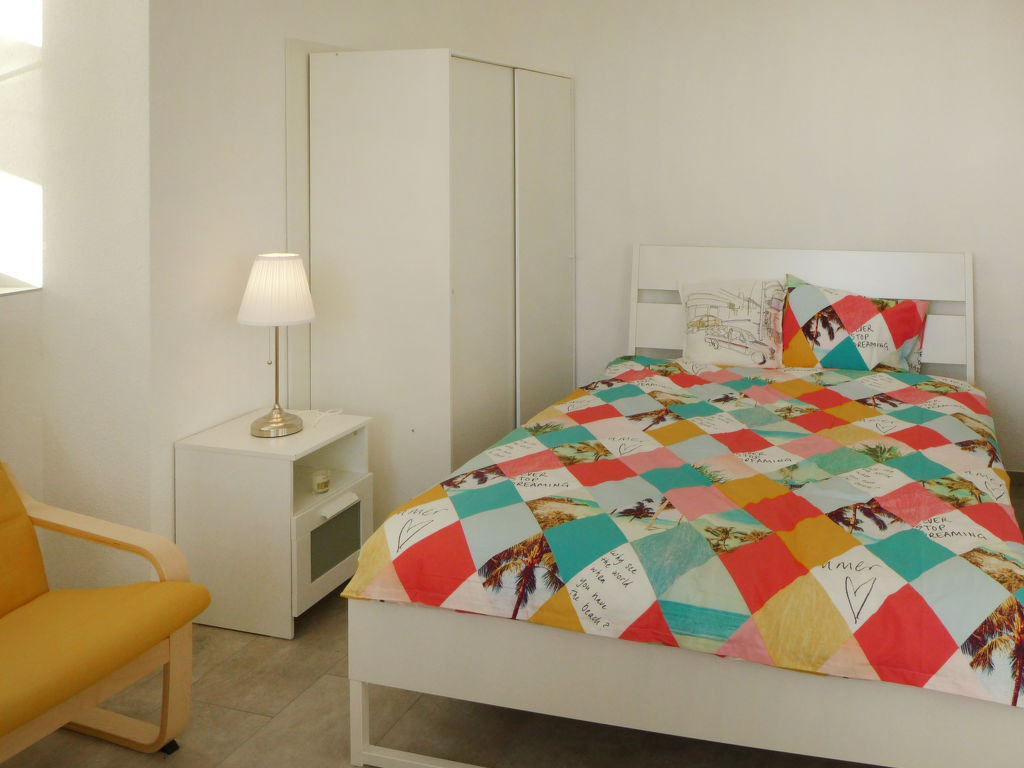 "Résidence les Alpes", 1-Zimmer-Studio im 1. Stock. Hell, vollständig renoviert im Jahre 2021, komfortabel und geschmackvoll eingerichtet: Wohn-/Schlafzimmer mit 1 Doppelbett und TV. Ausgang zum Balkon. Offene Küche (Geschirrspüler, 4 Glaskeramikherd Platten, elektrische Kaffeemaschine, Kapseln für die Kaffeemaschine (Nespresso)). Dusche/WC. Balkon. Balkonmöbel. Zur Verfügung: Internet (Wireless LAN, gratis). Bitte beachten: Nichtraucher-Unterkunft.