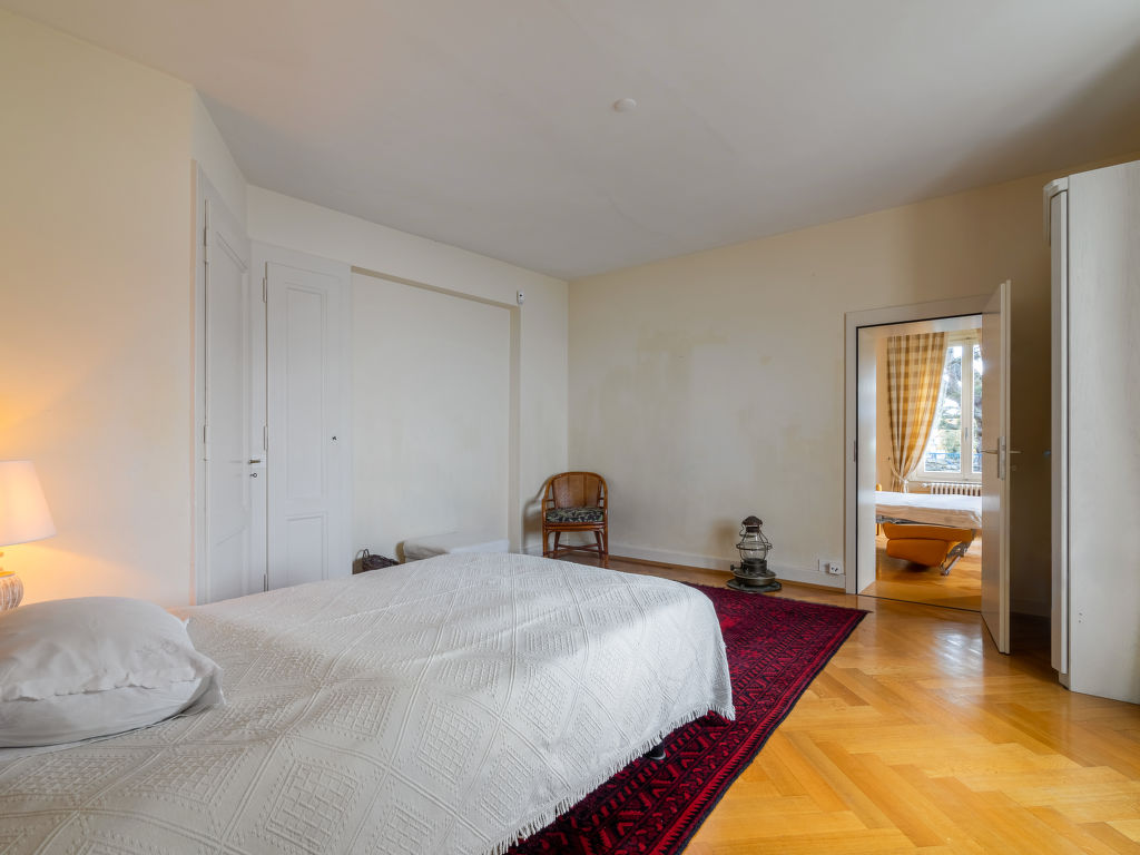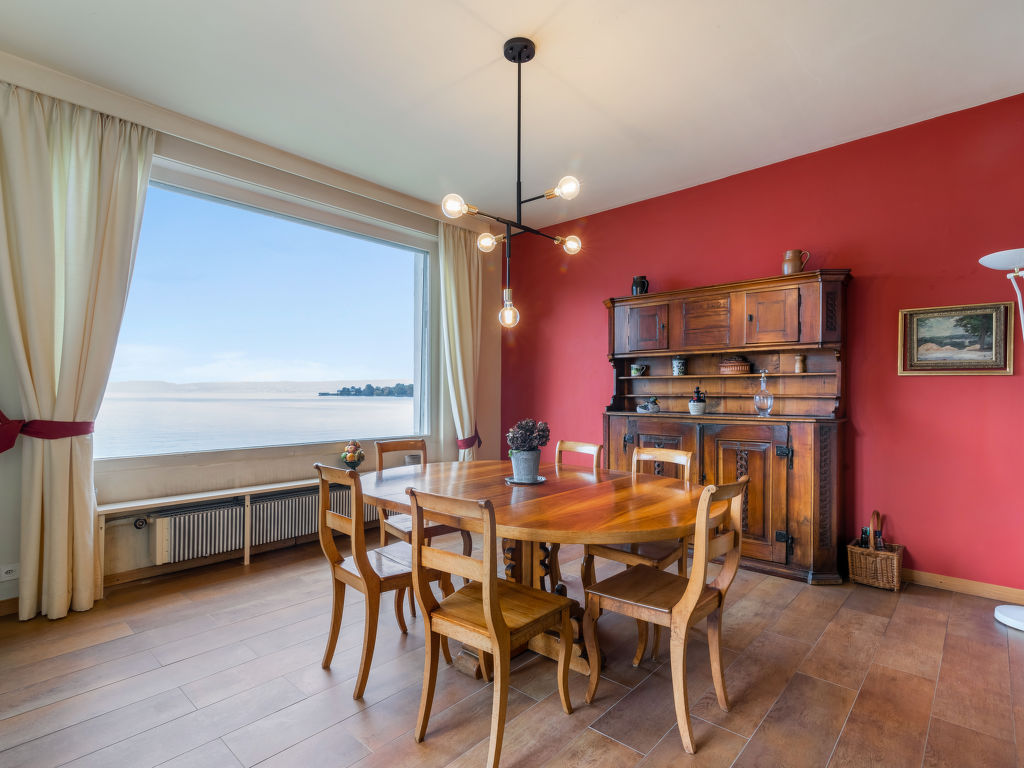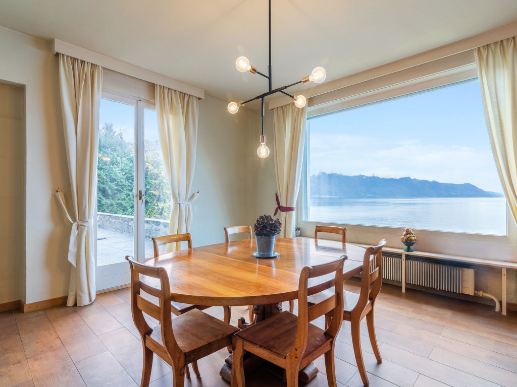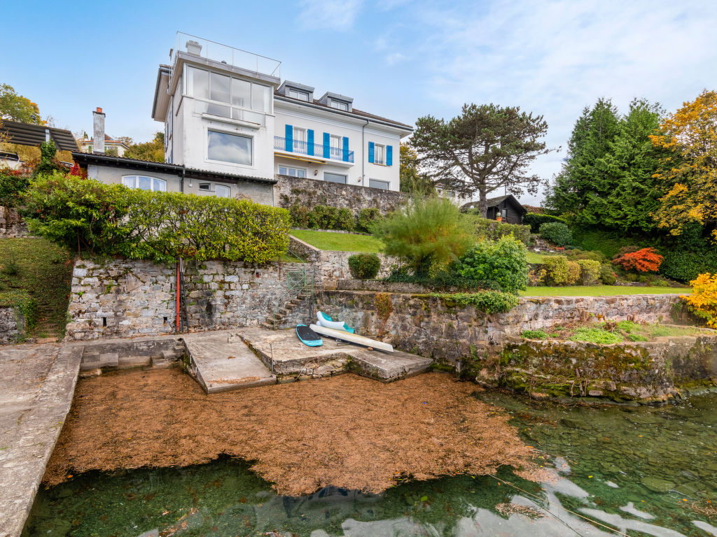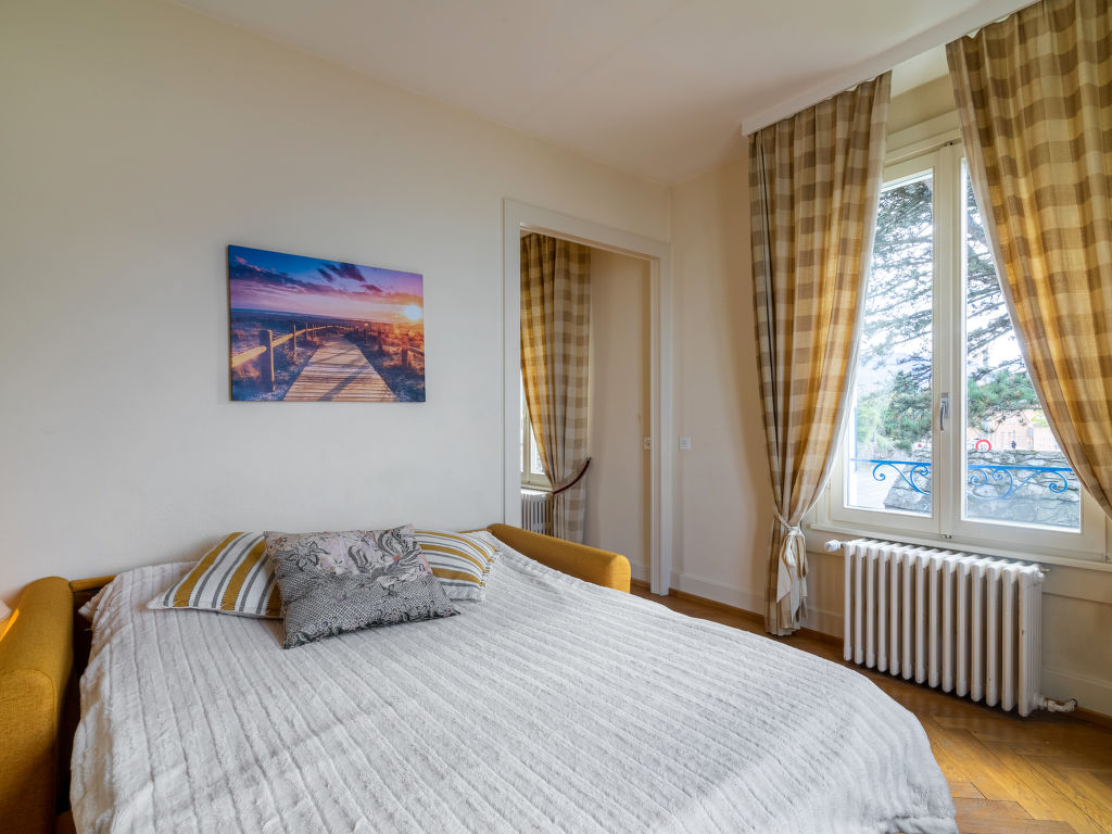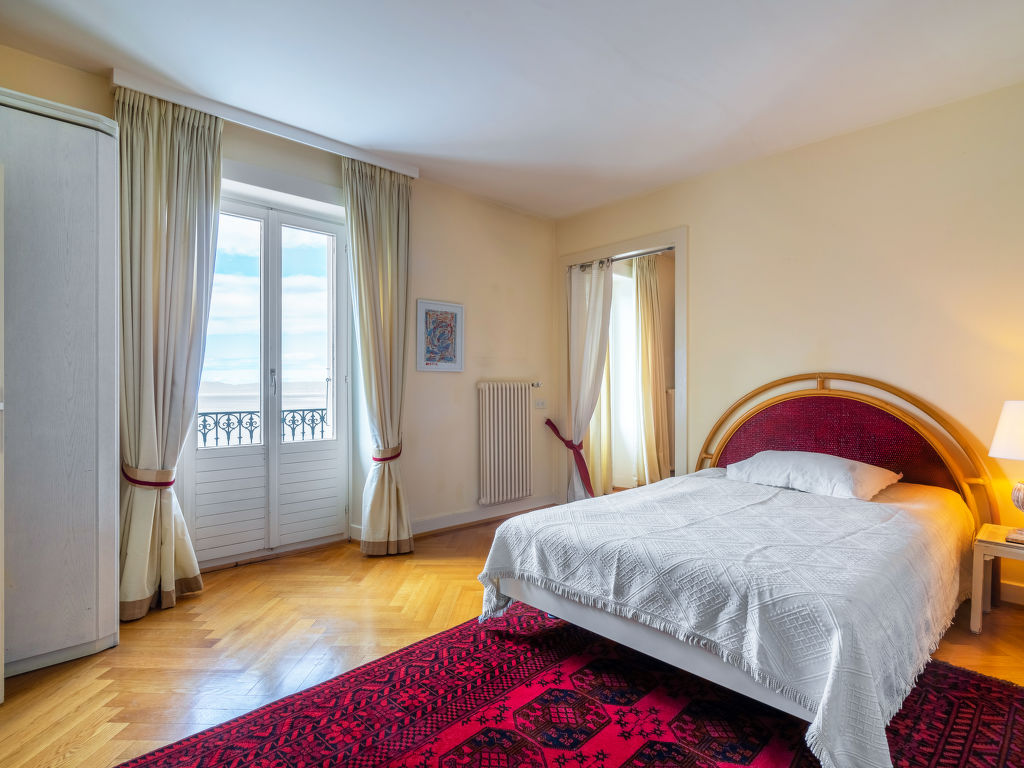 "Le Môle", 8-Zimmer-Villa 360 m2 auf 3 Stockwerken. Antik und geschmackvoll eingerichtet: Wohnzimmer mit offenem Kamin und TV. Ausgang zur Terrasse. Offene Küche (Backofen, Geschirrspüler, 4 Glaskeramikherd Platten, elektrische Kaffeemaschine, Fondue Set (Chinoise, Käse)). Sep. WC. Obergeschoss: 1 Zimmer mit Veranda, Panoramafenster mit 1 Doppelbett (160 cm, Länge 200 cm), Dusche/Bidet/WC und Doppelwaschbecken. 1 Zimmer mit 1 Doppelbett (140 cm, Länge 200 cm). Verbundenes Zimmer mit 1 Doppeldiwanbett (140 cm, Länge 200 cm). Durchgangszimmer. Bad/WC, Doppelwaschbecken. 2. Obergeschoss: Wohn-/Esszimmer. Ausgang zur Terrasse. 1 Zimmer mit 1 Doppeldiwanbett (140 cm, Länge 200 cm). 1 Zimmer mit 1 Doppelbett (180 cm, Länge 200 cm), TV. 1 Zimmer mit 2 Betten (90 cm, Länge 200 cm). Kleine, offene Küche (Geschirrspüler, 2 Glaskeramikherd Platten, elektrische Kaffeemaschine, Kapseln für die Kaffeemaschine (Nespresso) extra). Bad/WC. 2 grosse Terrassen, grosser Garten. Herrliche Panoramasicht auf den See, die Berge und die Landschaft. Zur Verfügung: Waschmaschine, Wäschetrockner. Internet (Wireless LAN, gratis). Parkplatz (4 Autos), Garage auf dem Grundstück (1 Auto). Bitte beachten: Wohnung auf Strassenseite. Nichtraucher-Haus. privater Zugang zum See.