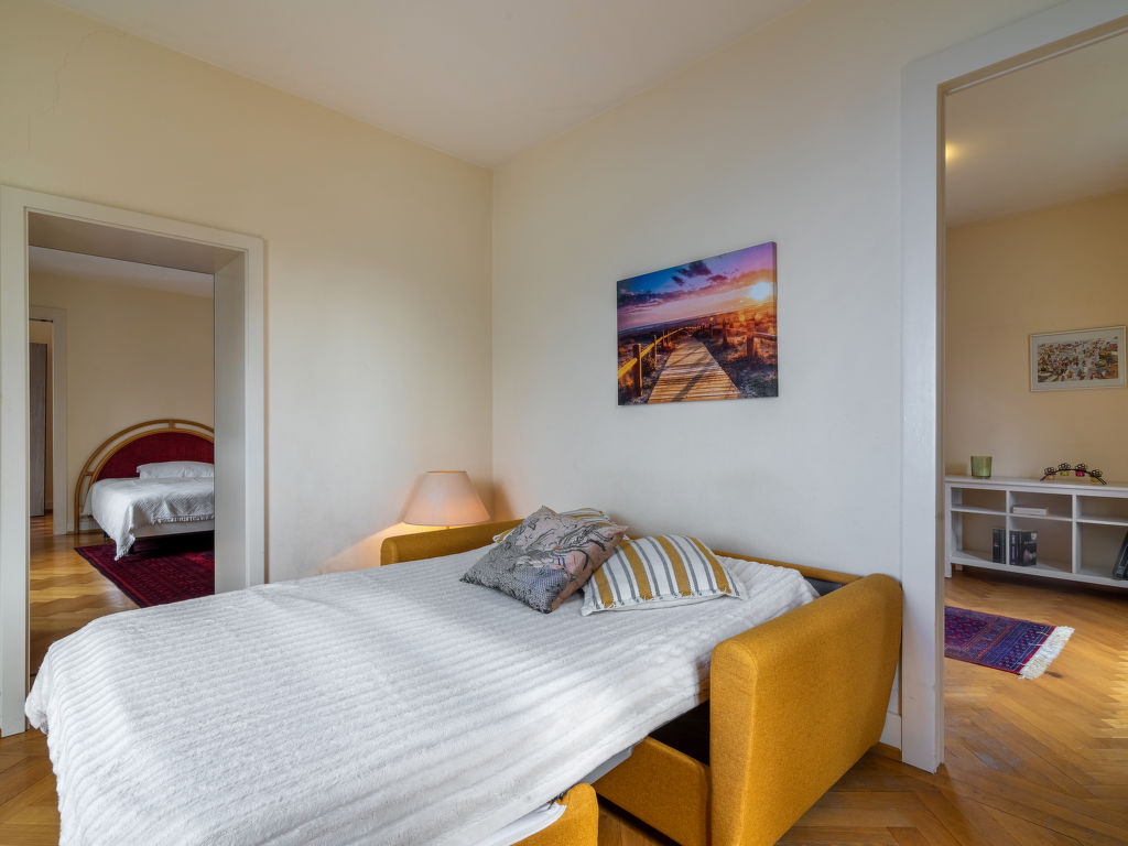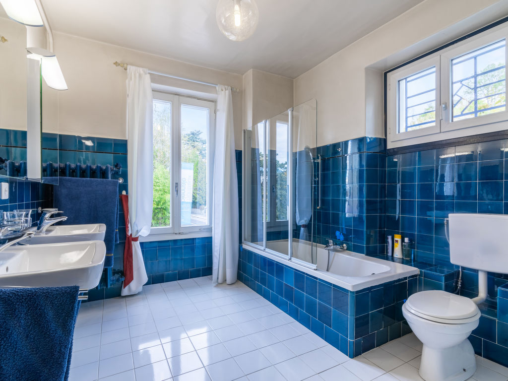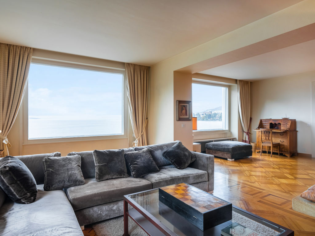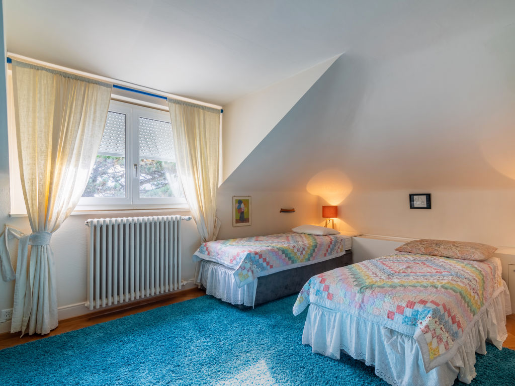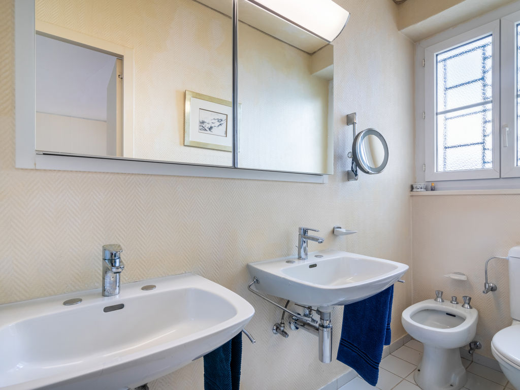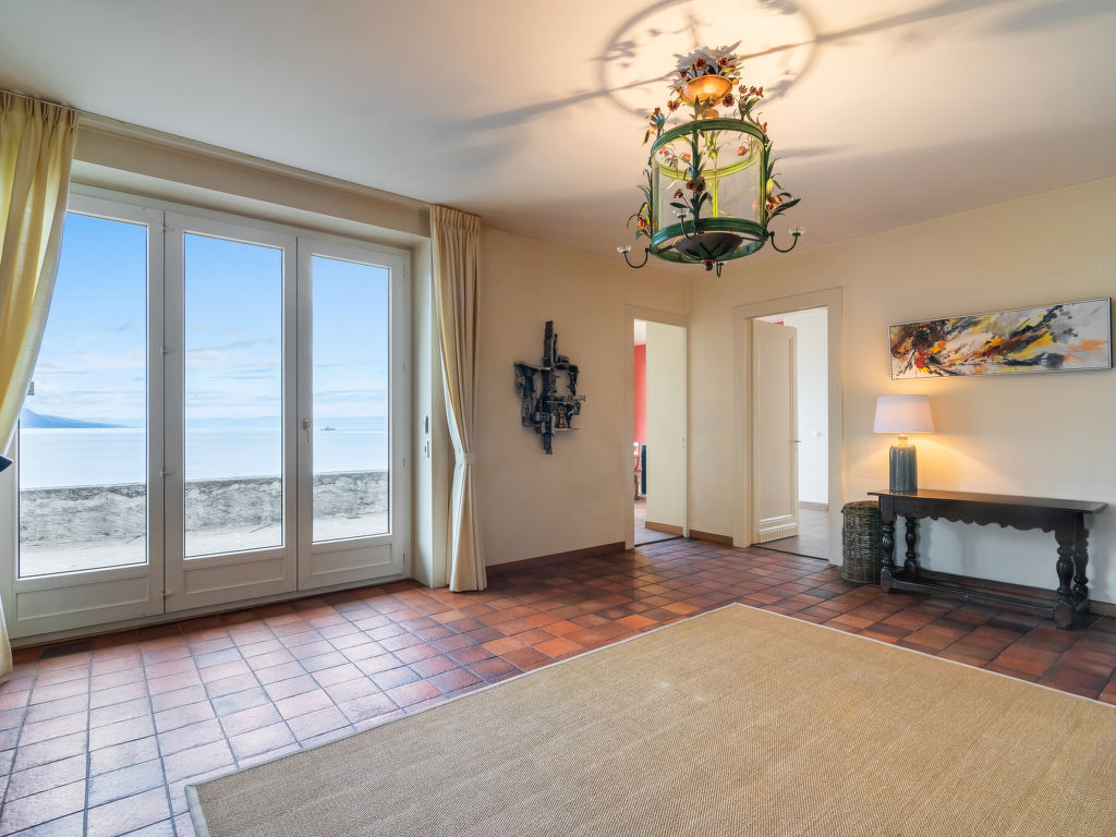 "Le Môle", 8-Zimmer-Villa 360 m2 auf 3 Stockwerken. Antik und geschmackvoll eingerichtet: Wohnzimmer mit offenem Kamin und TV. Ausgang zur Terrasse. Offene Küche (Backofen, Geschirrspüler, 4 Glaskeramikherd Platten, elektrische Kaffeemaschine, Fondue Set (Chinoise, Käse)). Sep. WC. Obergeschoss: 1 Zimmer mit Veranda, Panoramafenster mit 1 Doppelbett (160 cm, Länge 200 cm), Dusche/Bidet/WC und Doppelwaschbecken. 1 Zimmer mit 1 Doppelbett (140 cm, Länge 200 cm). Verbundenes Zimmer mit 1 Doppeldiwanbett (140 cm, Länge 200 cm). Durchgangszimmer. Bad/WC, Doppelwaschbecken. 2. Obergeschoss: Wohn-/Esszimmer. Ausgang zur Terrasse. 1 Zimmer mit 1 Doppeldiwanbett (140 cm, Länge 200 cm). 1 Zimmer mit 1 Doppelbett (180 cm, Länge 200 cm), TV. 1 Zimmer mit 2 Betten (90 cm, Länge 200 cm). Kleine, offene Küche (Geschirrspüler, 2 Glaskeramikherd Platten, elektrische Kaffeemaschine, Kapseln für die Kaffeemaschine (Nespresso) extra). Bad/WC. 2 grosse Terrassen, grosser Garten. Herrliche Panoramasicht auf den See, die Berge und die Landschaft. Zur Verfügung: Waschmaschine, Wäschetrockner. Internet (Wireless LAN, gratis). Parkplatz (4 Autos), Garage auf dem Grundstück (1 Auto). Bitte beachten: Wohnung auf Strassenseite. Nichtraucher-Haus. privater Zugang zum See.